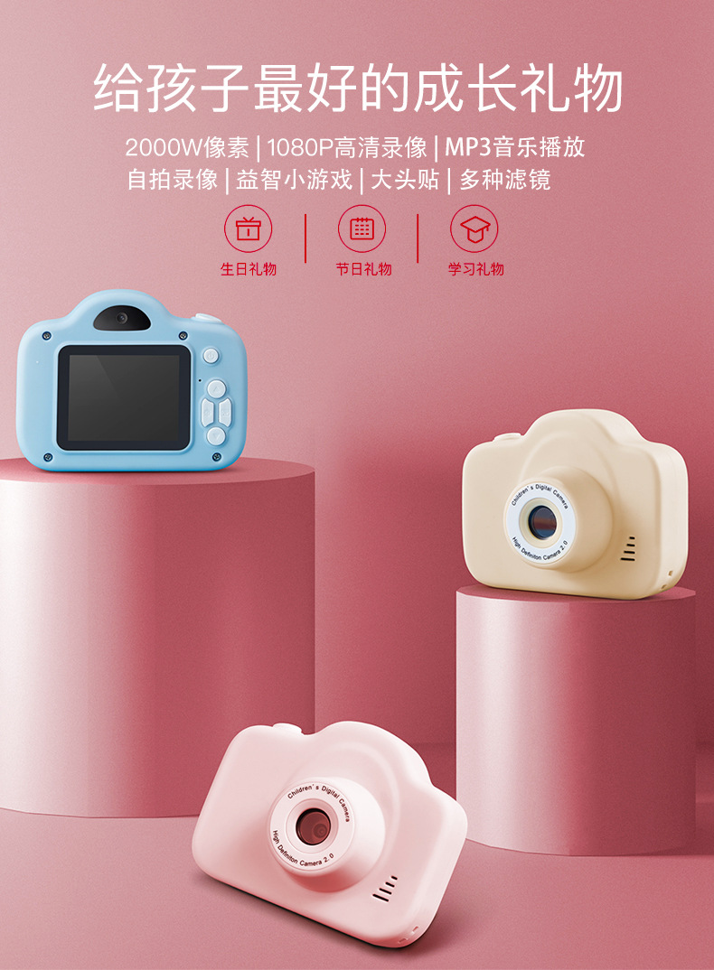 跨境A3儿童迷你数码相机2寸屏高清运动迷你可拍照录像 生日礼物