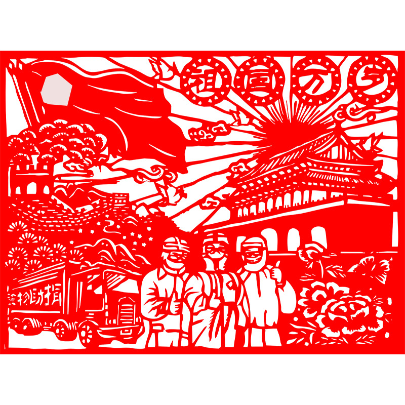 喜迎儿童爱国主题剪纸成品传统文化我爱祖国国庆手工窗花刻画底稿