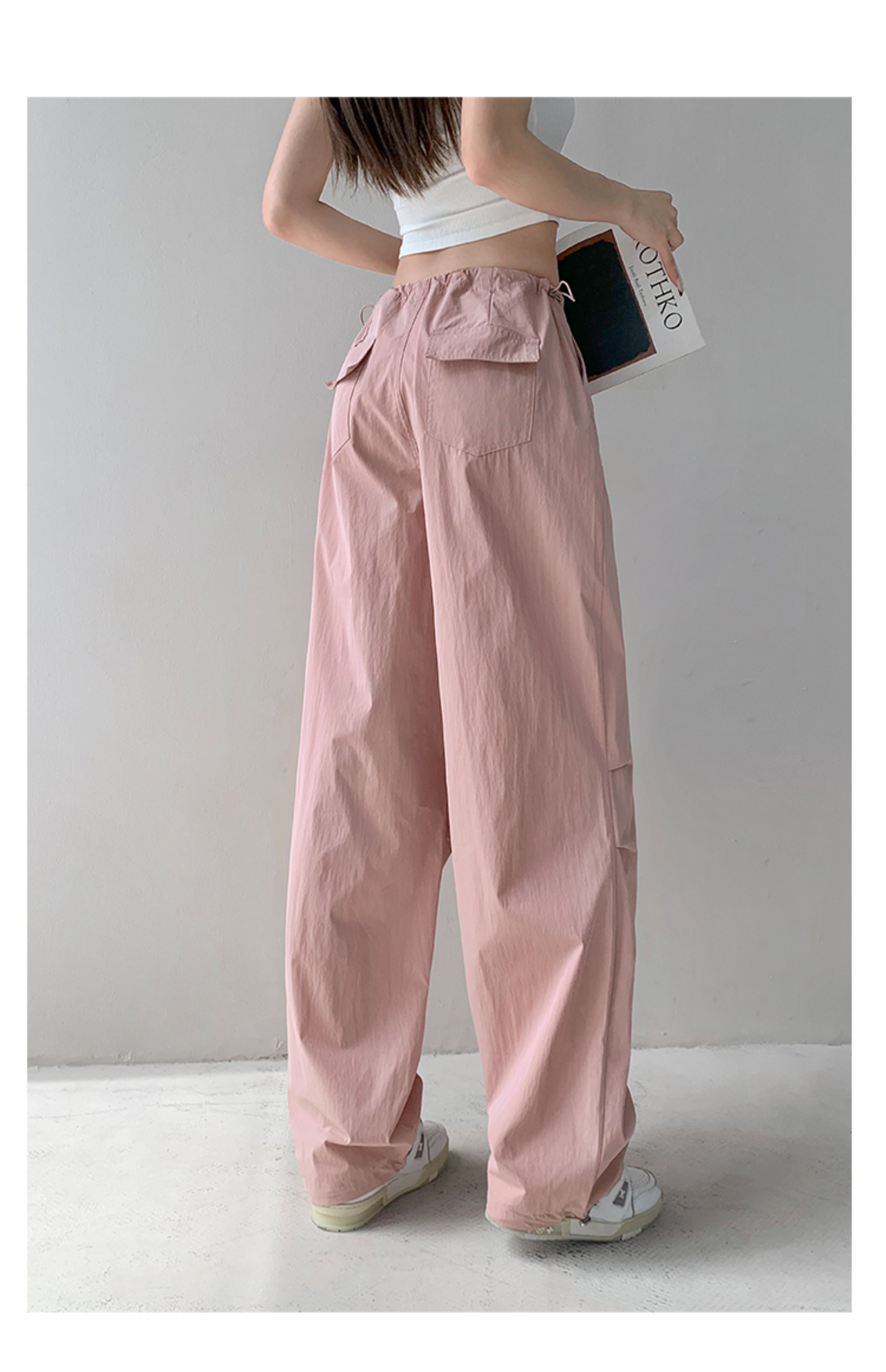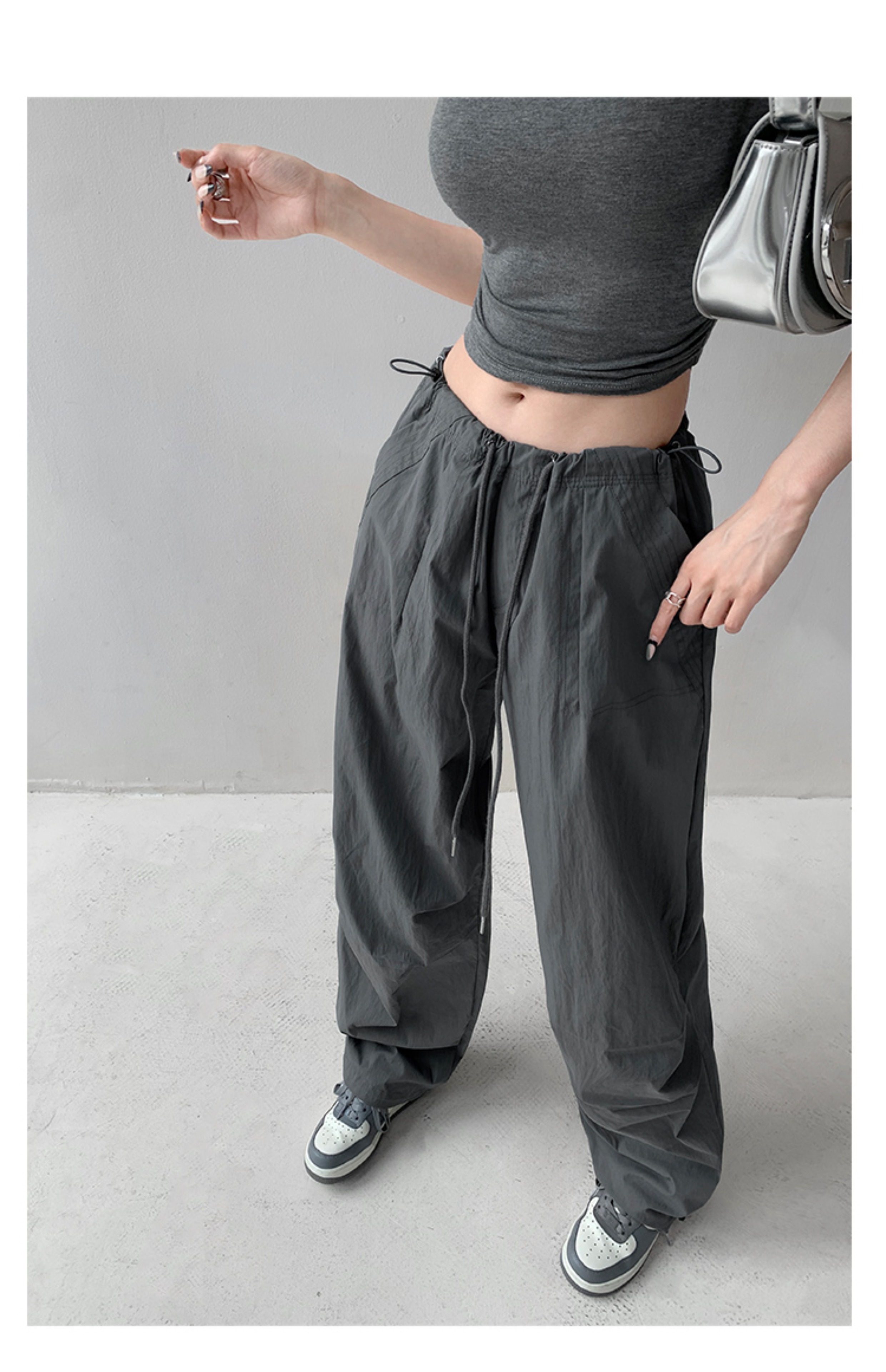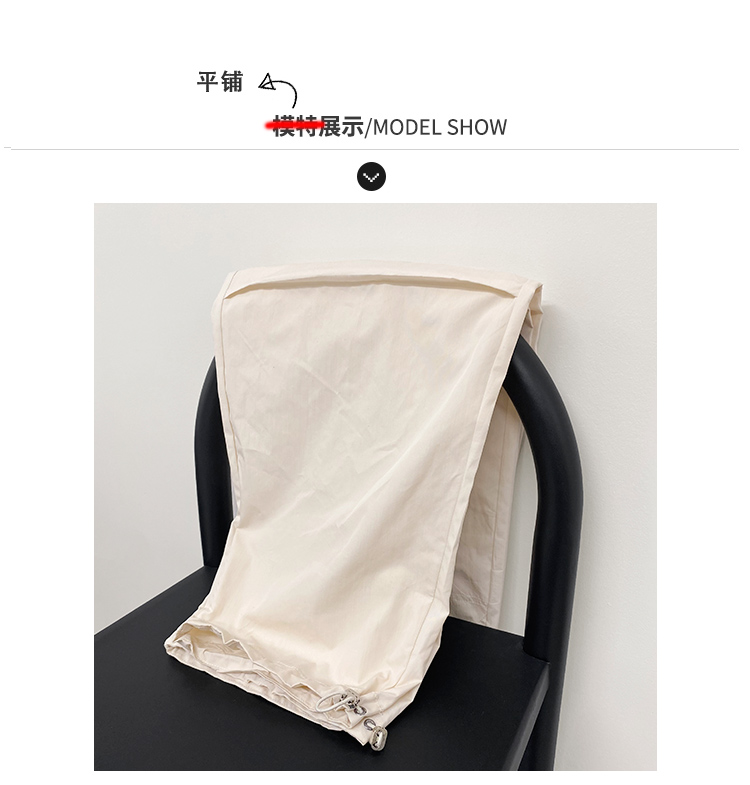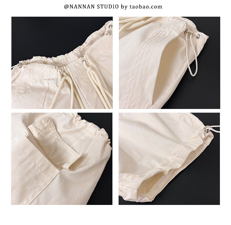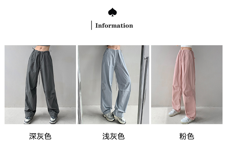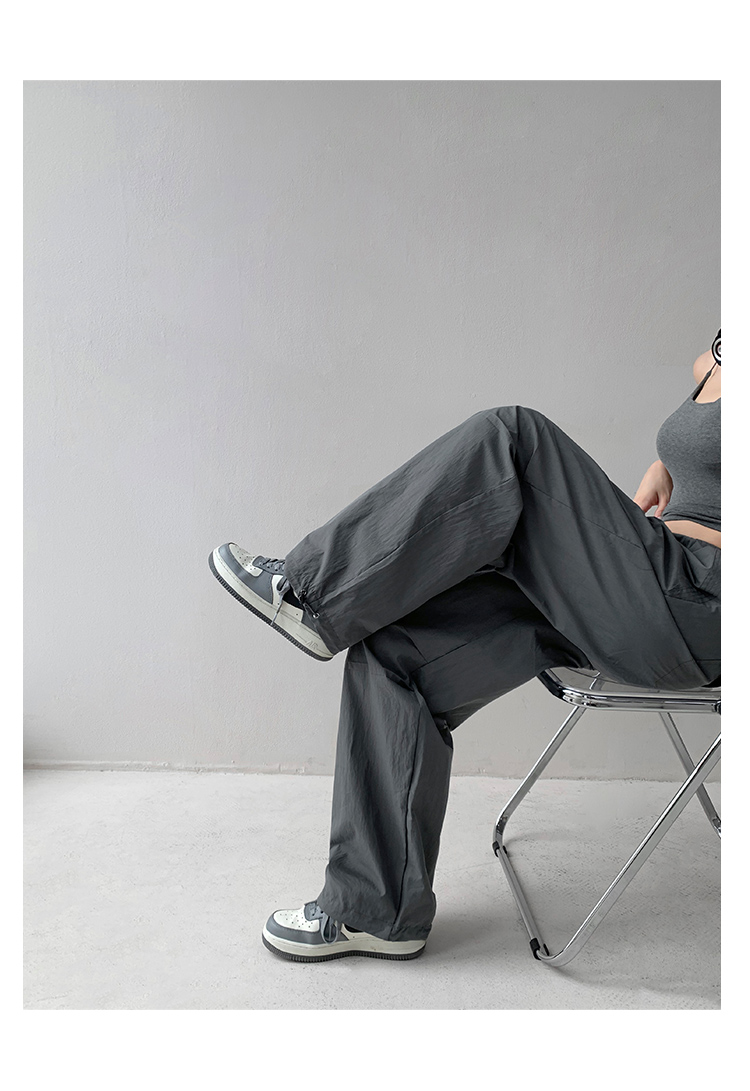 張小奈美式辣妹風寬鬆低腰抽繩工裝褲女春秋薄款褶皺闊腿降落傘褲