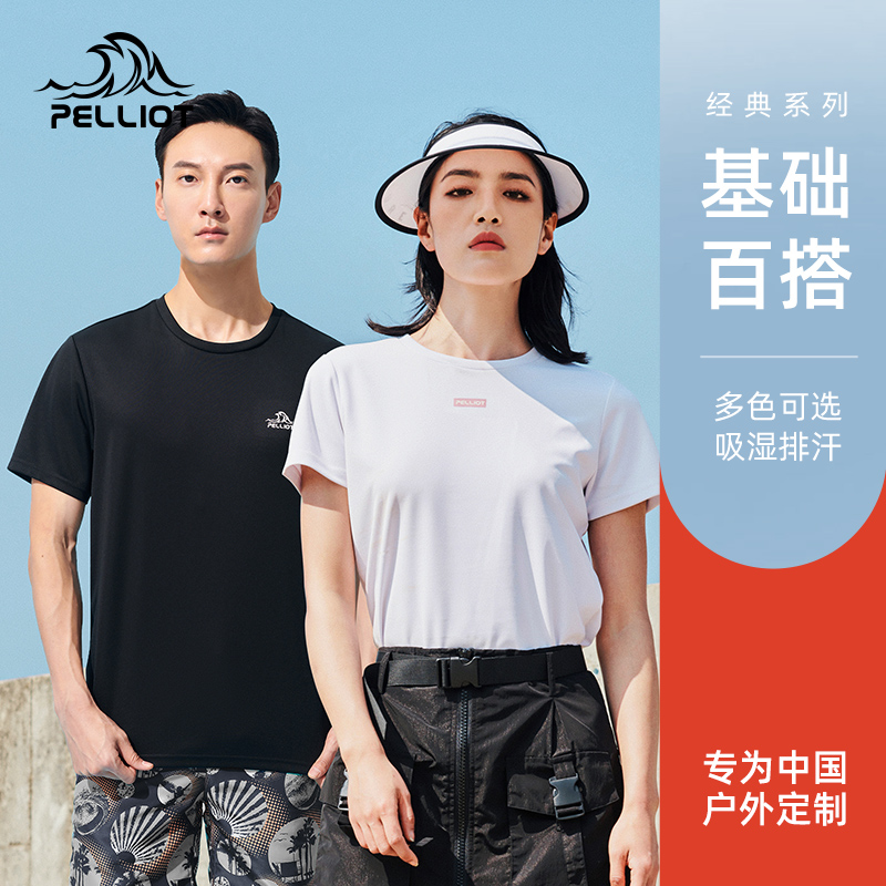 伯希和速乾T恤男女2023新款戶外薄款百搭速乾衣圓領跑步打底短袖
