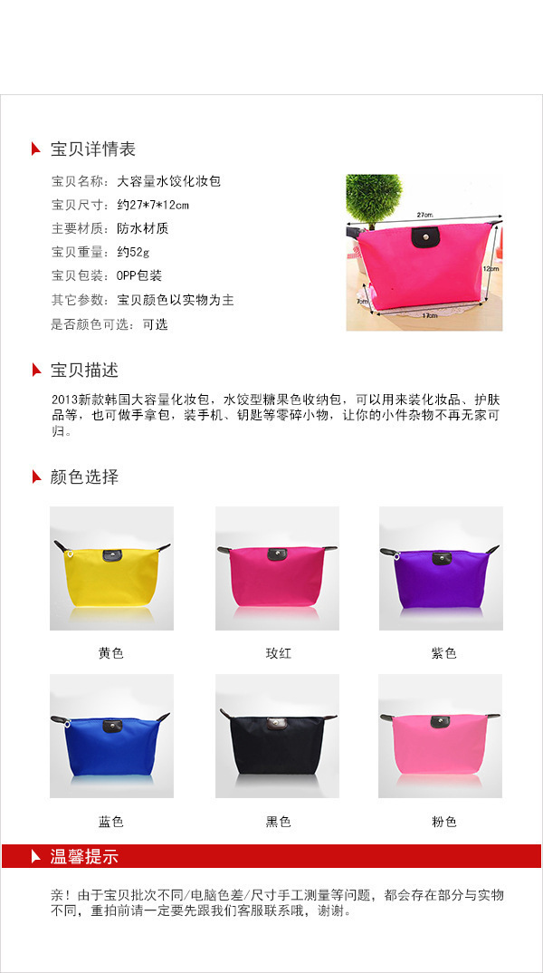 韩版可爱饺子化妆包 糖果色水饺包防水折叠洗漱包礼品包批发