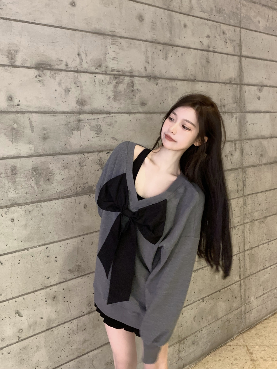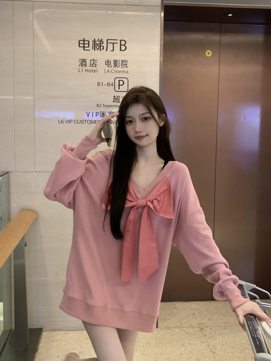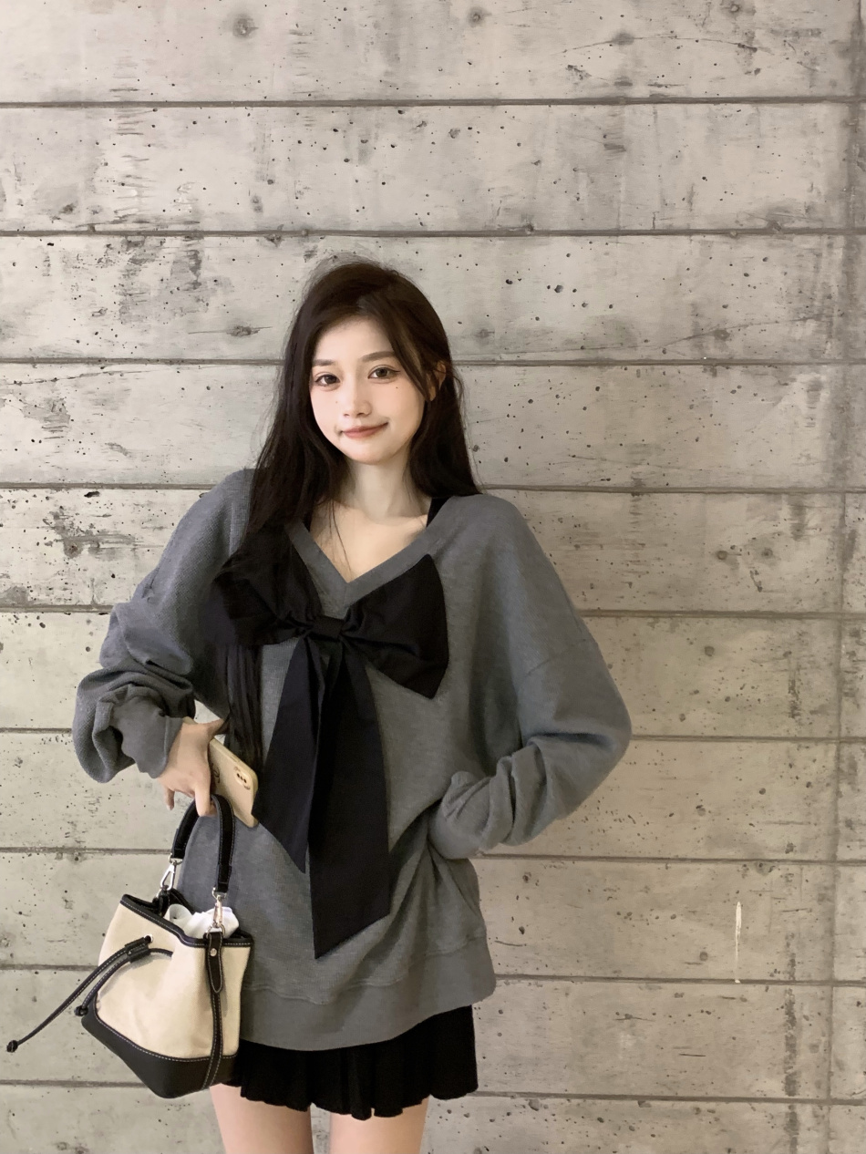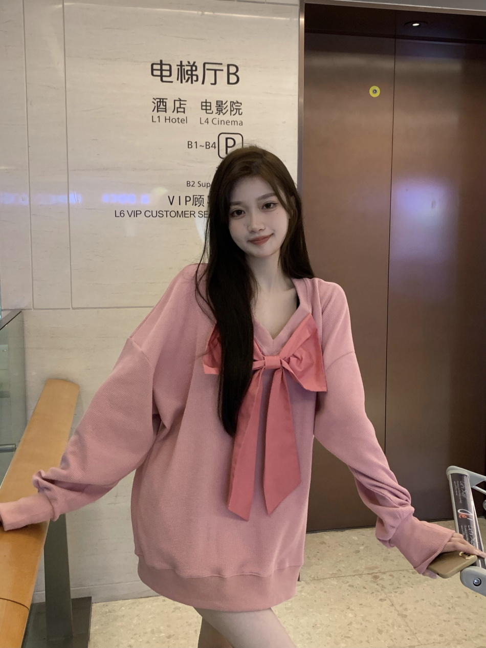 vintage高級感超好看蝴蝶結衛衣女春秋季慵懶風外套chic港風潮ins
