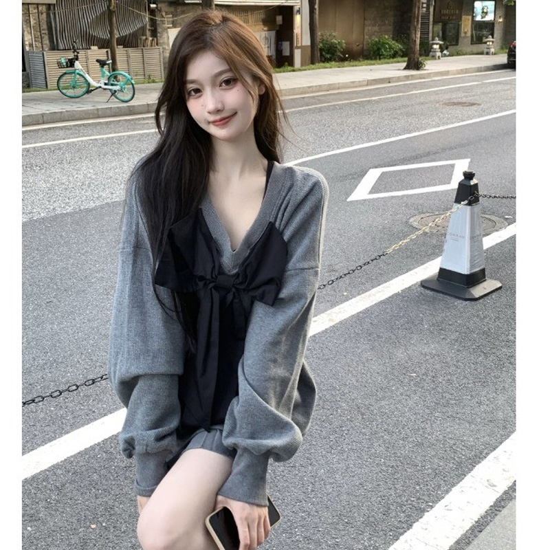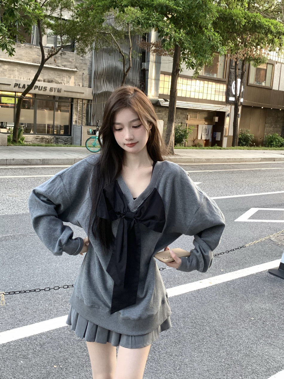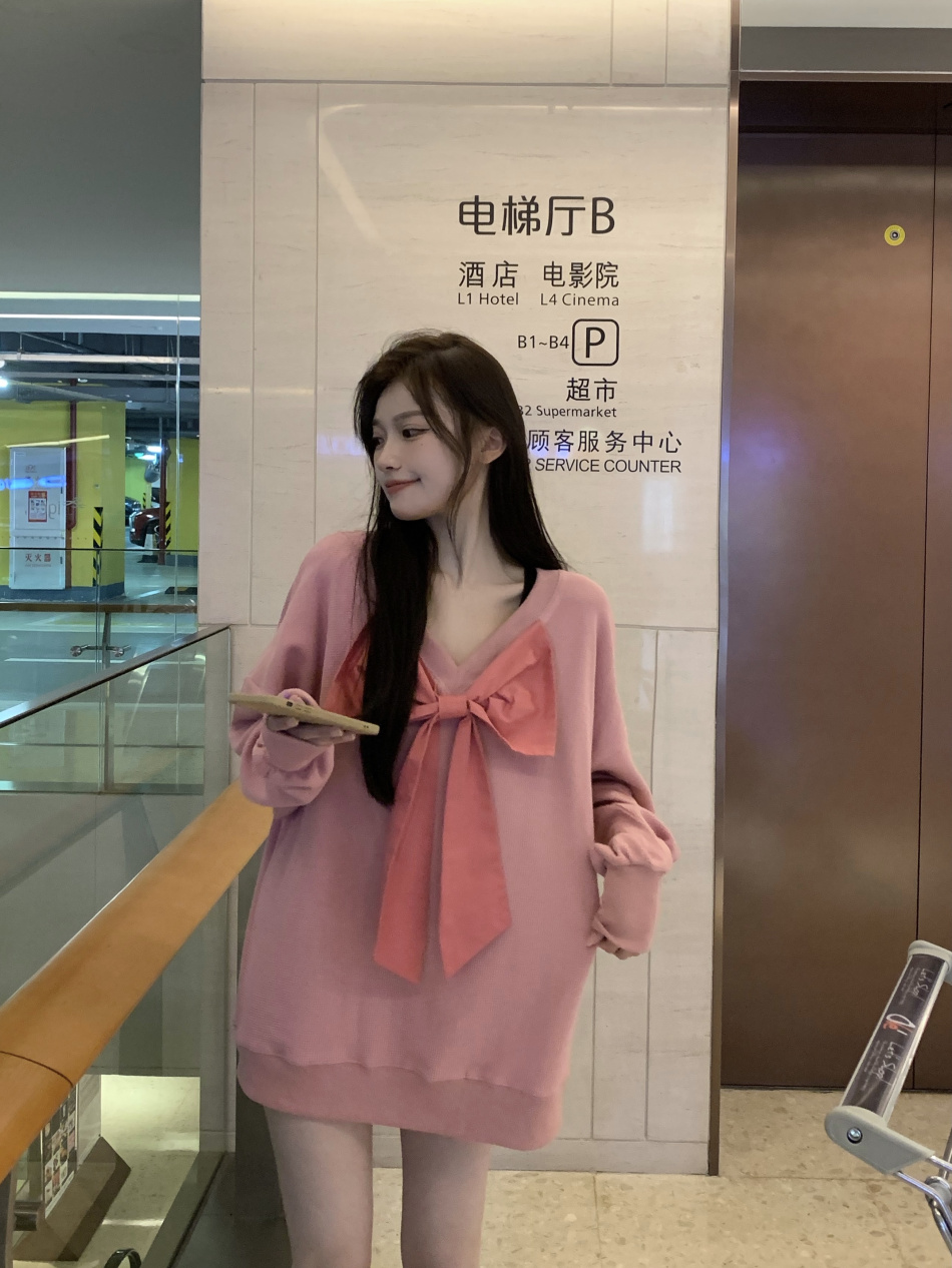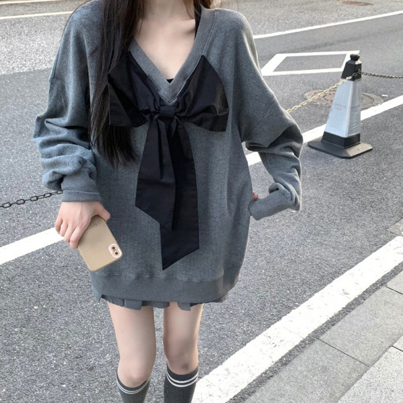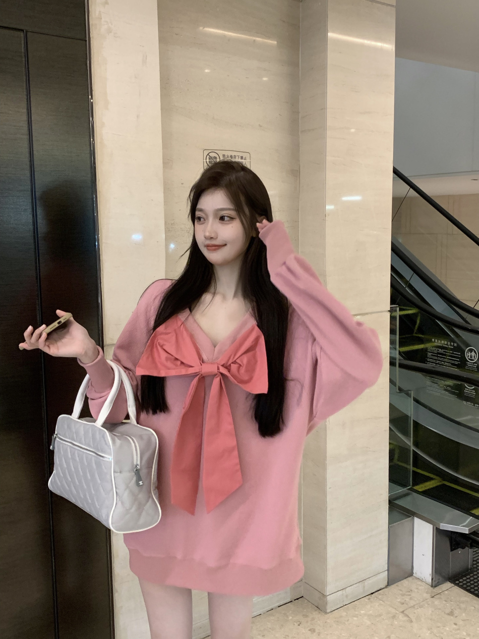 vintage高級感超好看蝴蝶結衛衣女春秋季慵懶風外套chic港風潮ins