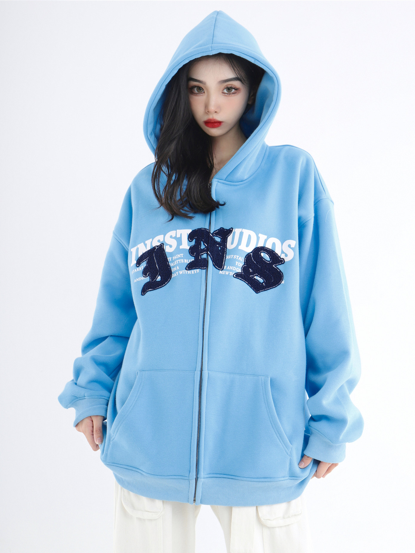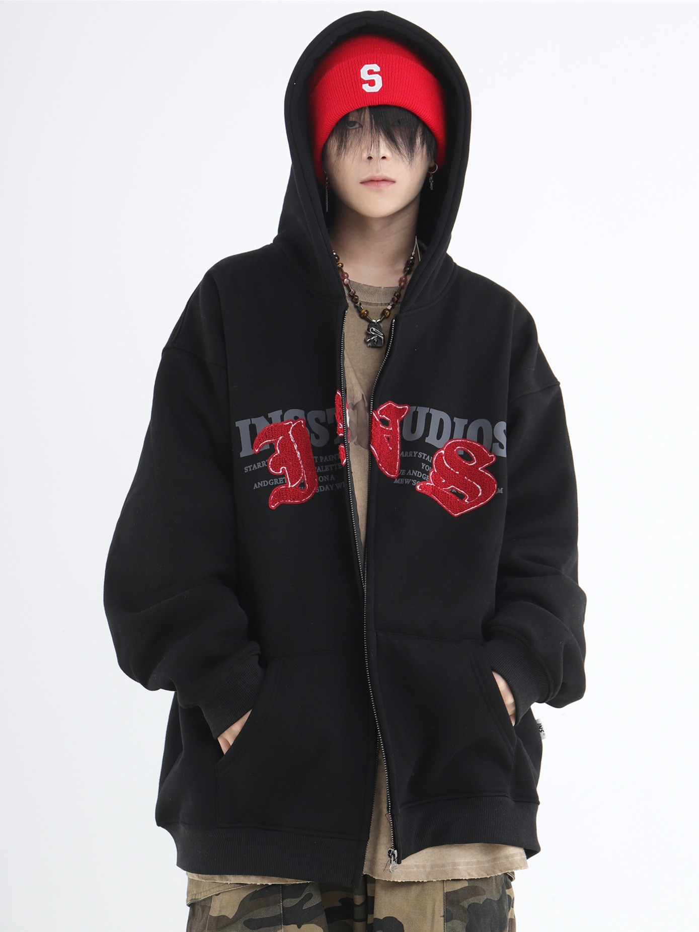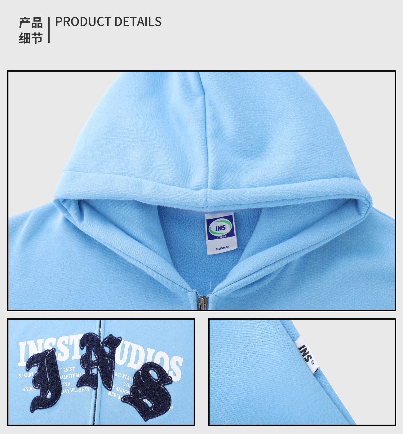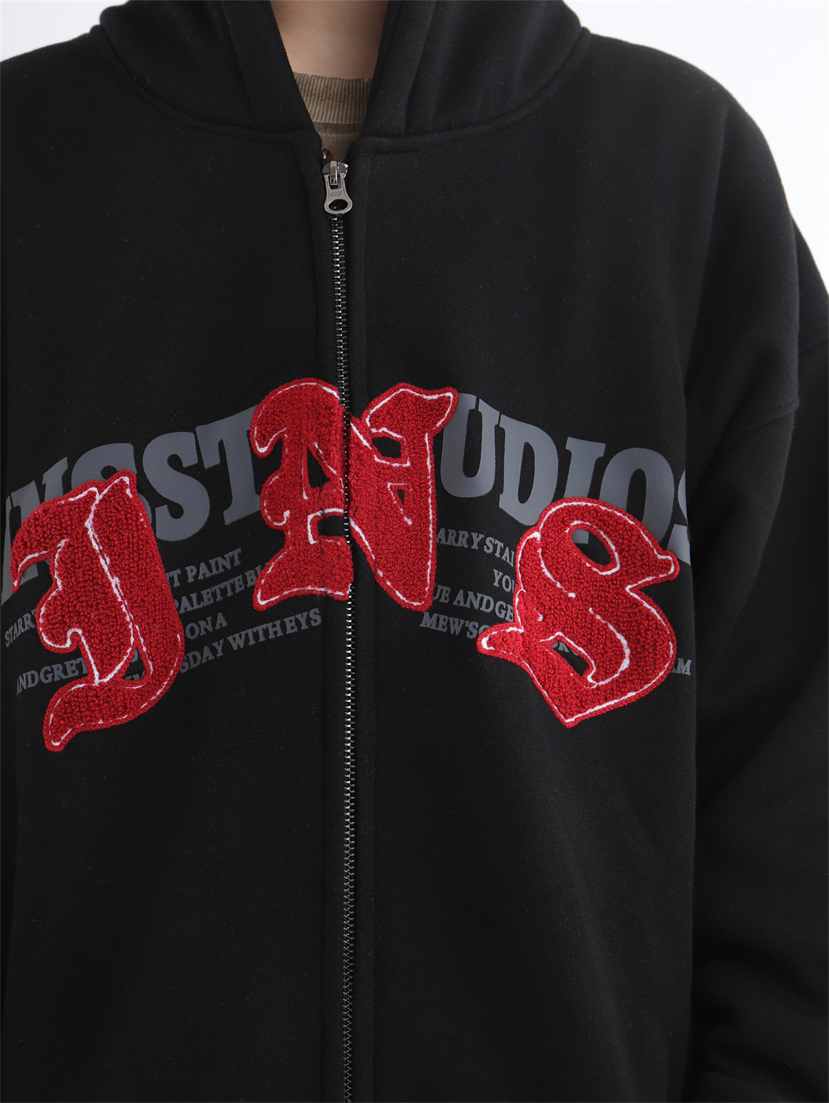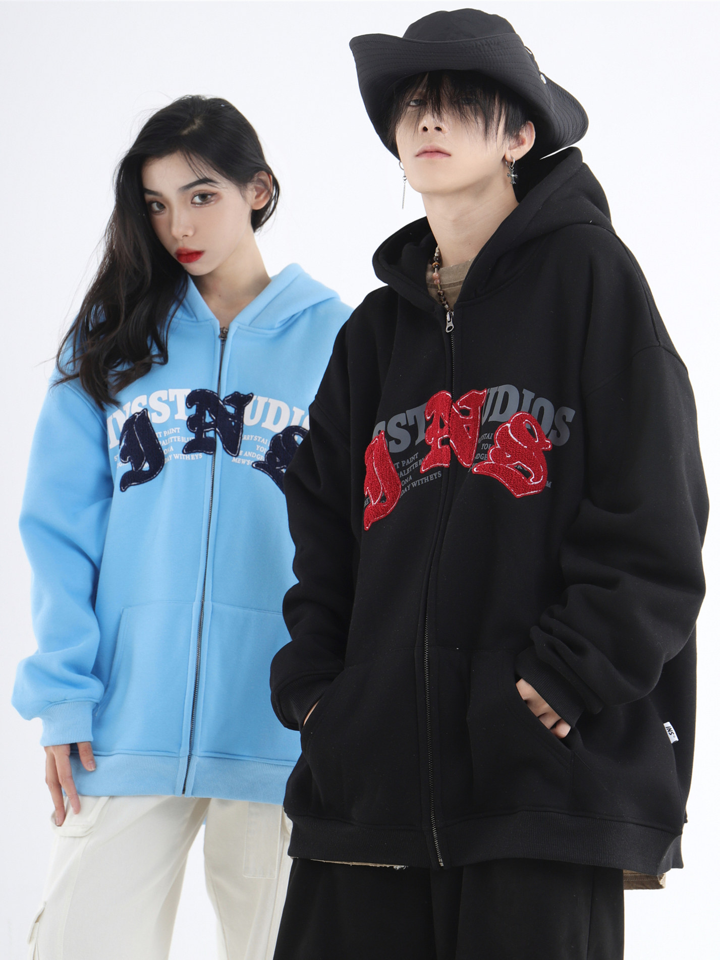 INSstudios 哥特LOGO重疊開衫厚棉T自制國潮美式復古加絨拉鍊外套