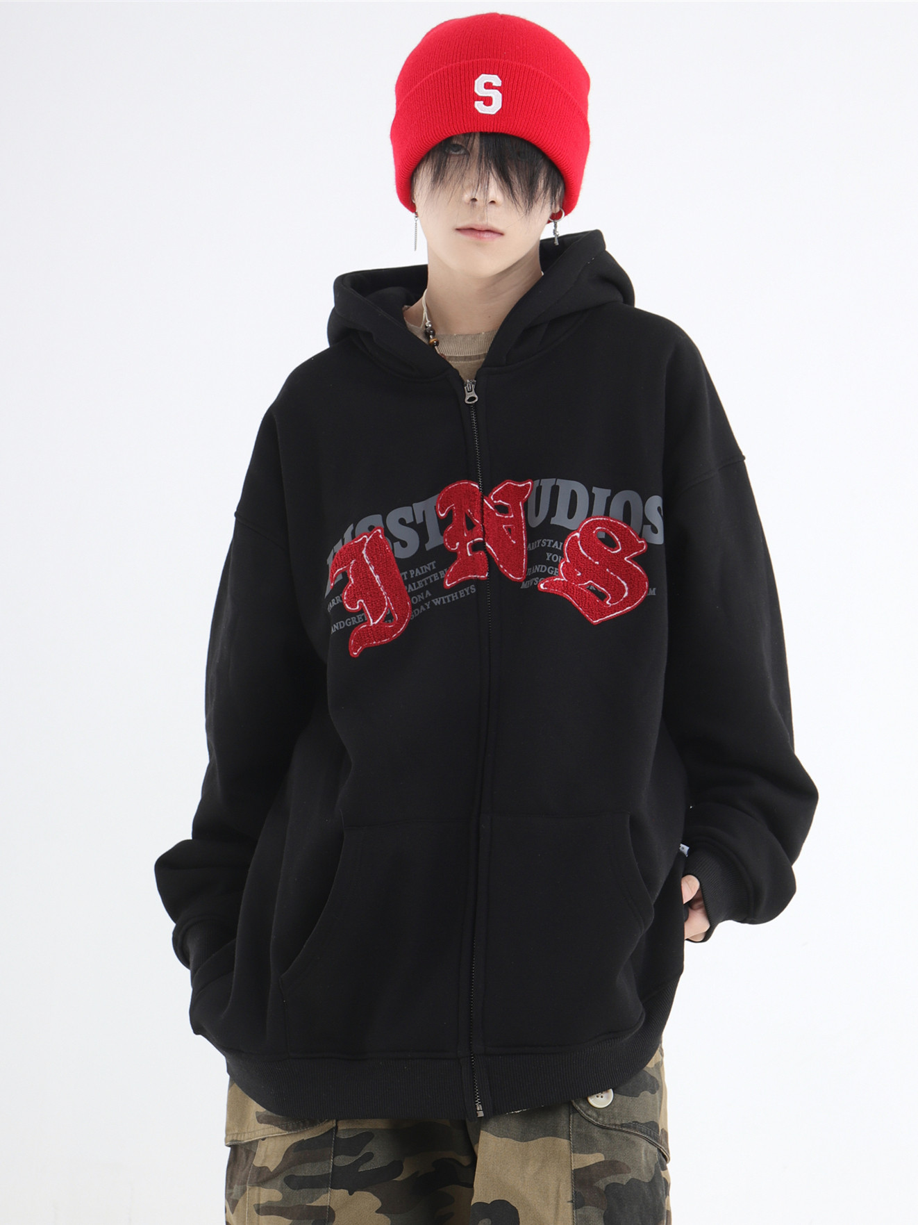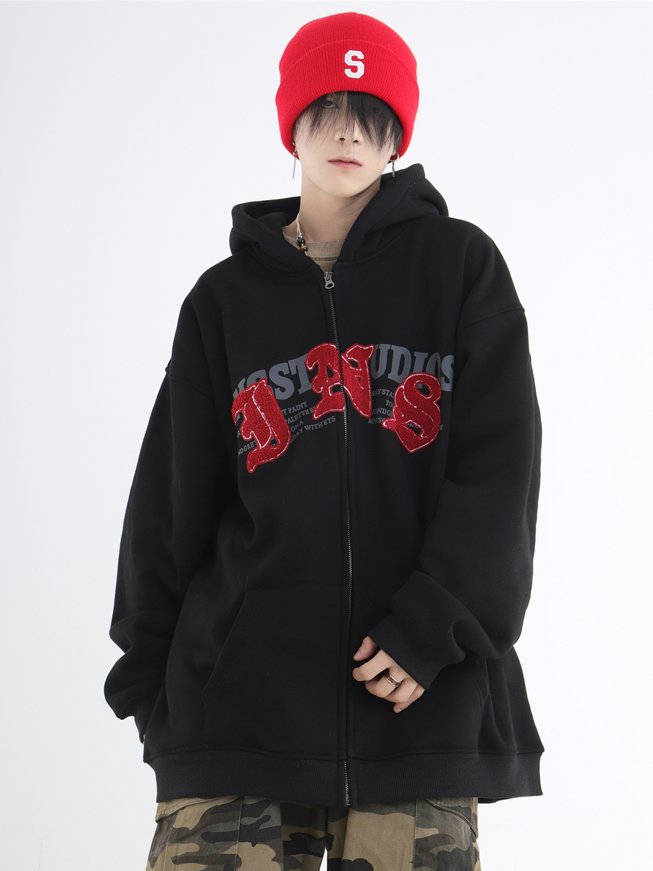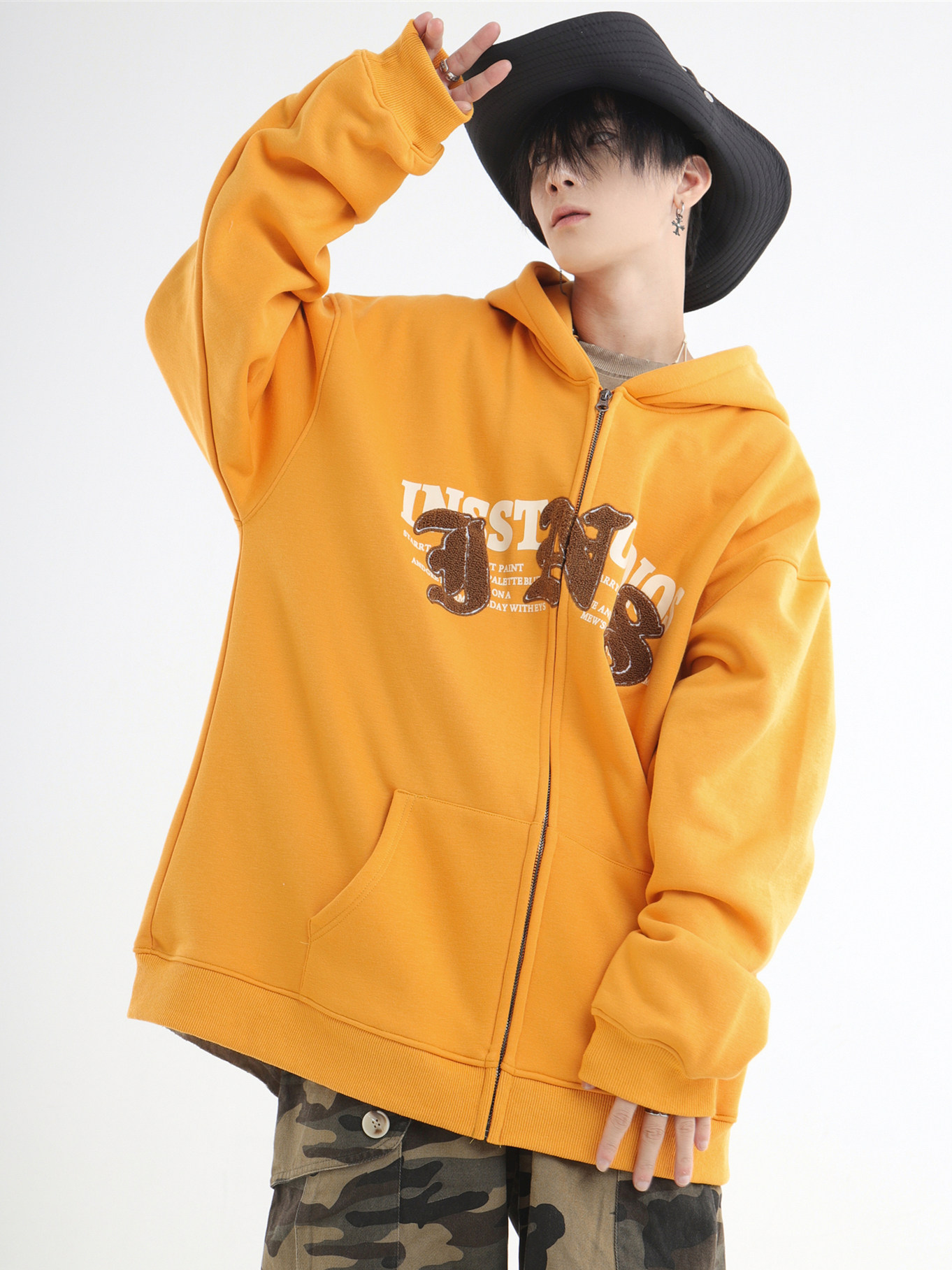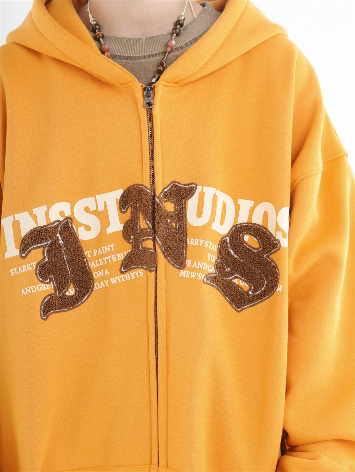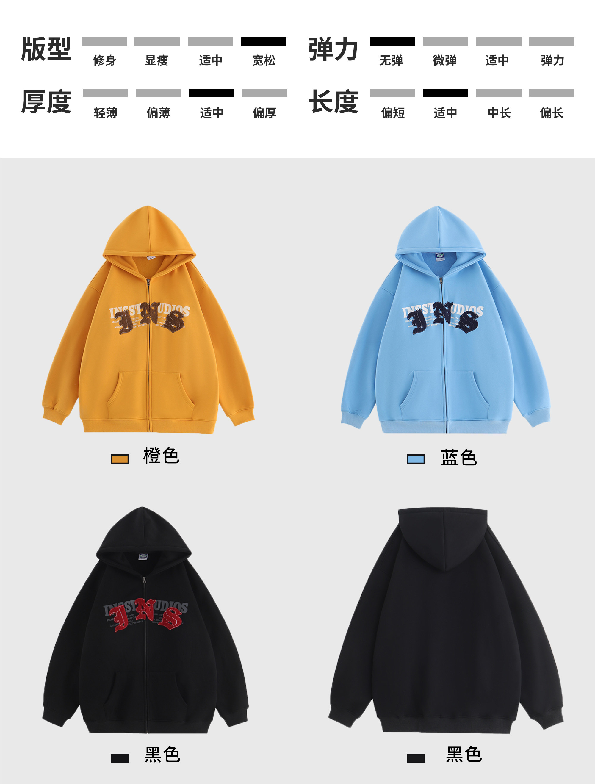 INSstudios 哥特LOGO重疊開衫厚棉T自制國潮美式復古加絨拉鍊外套