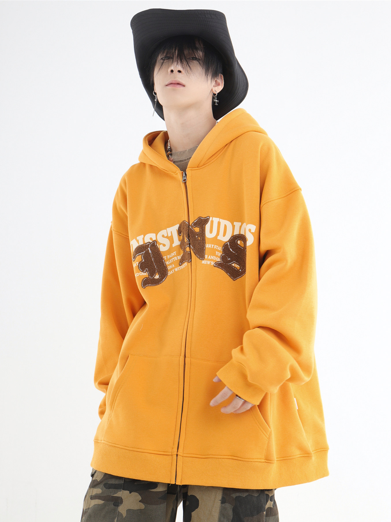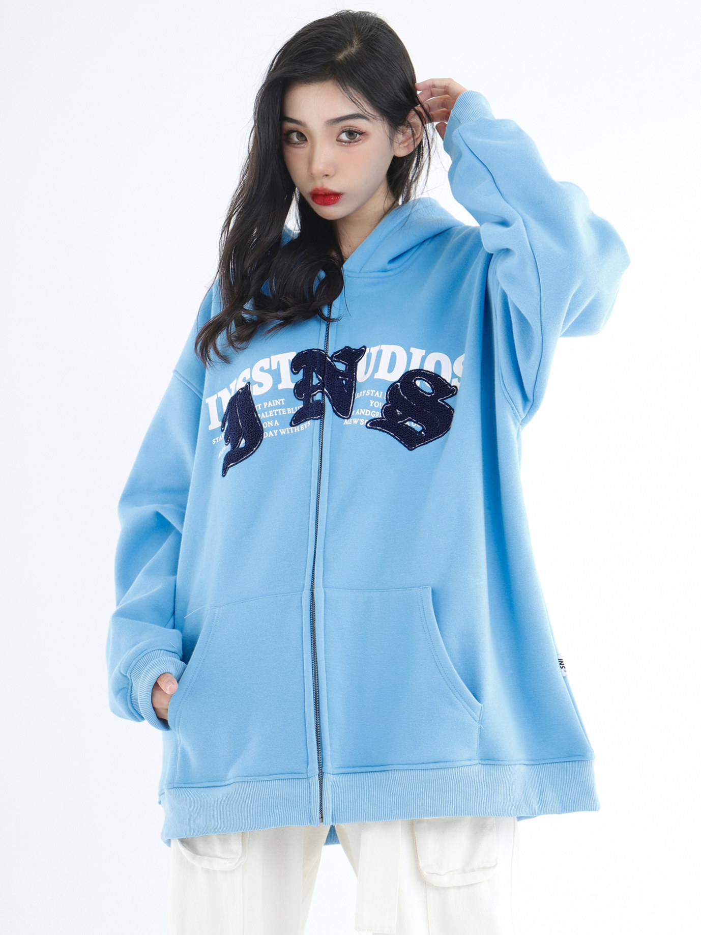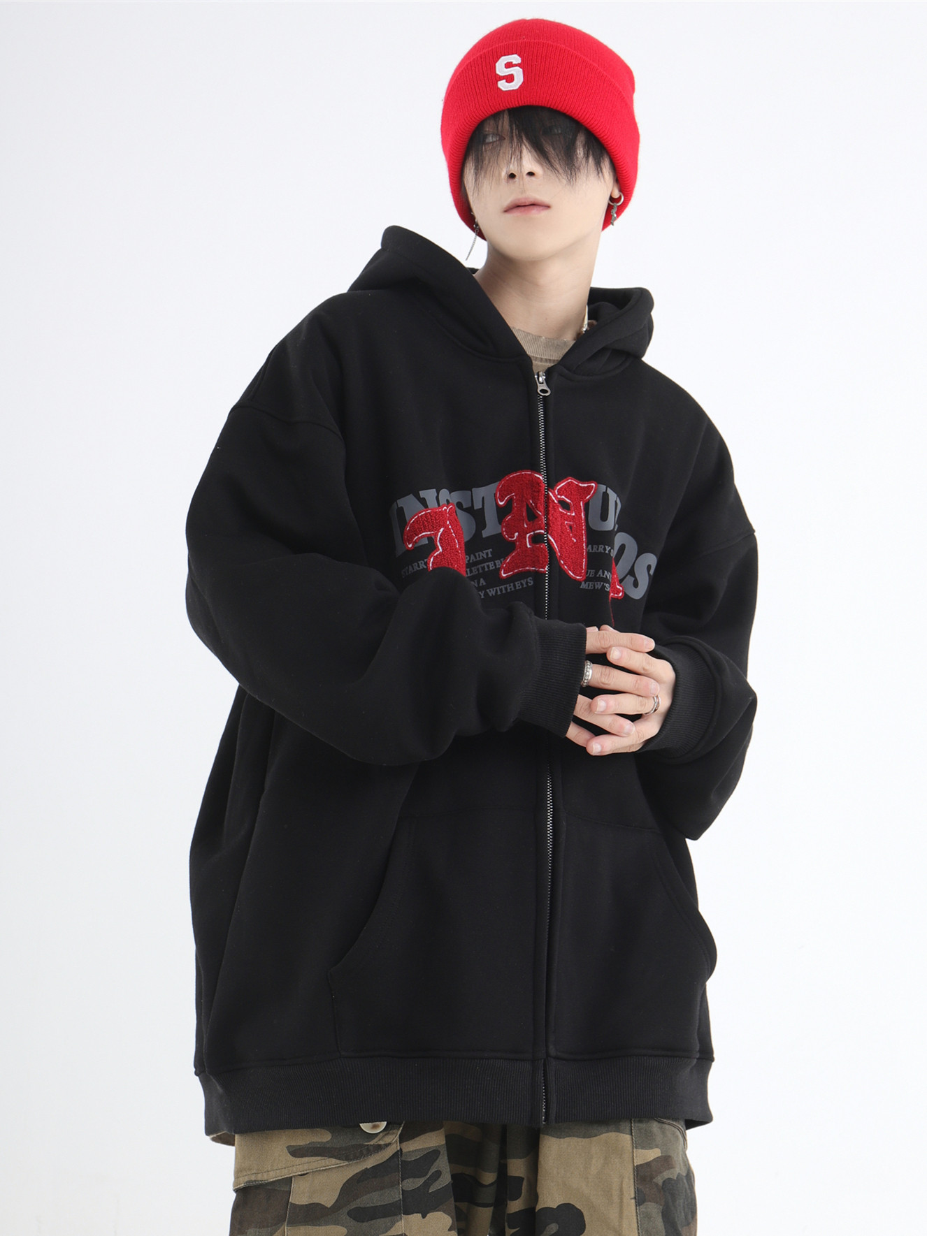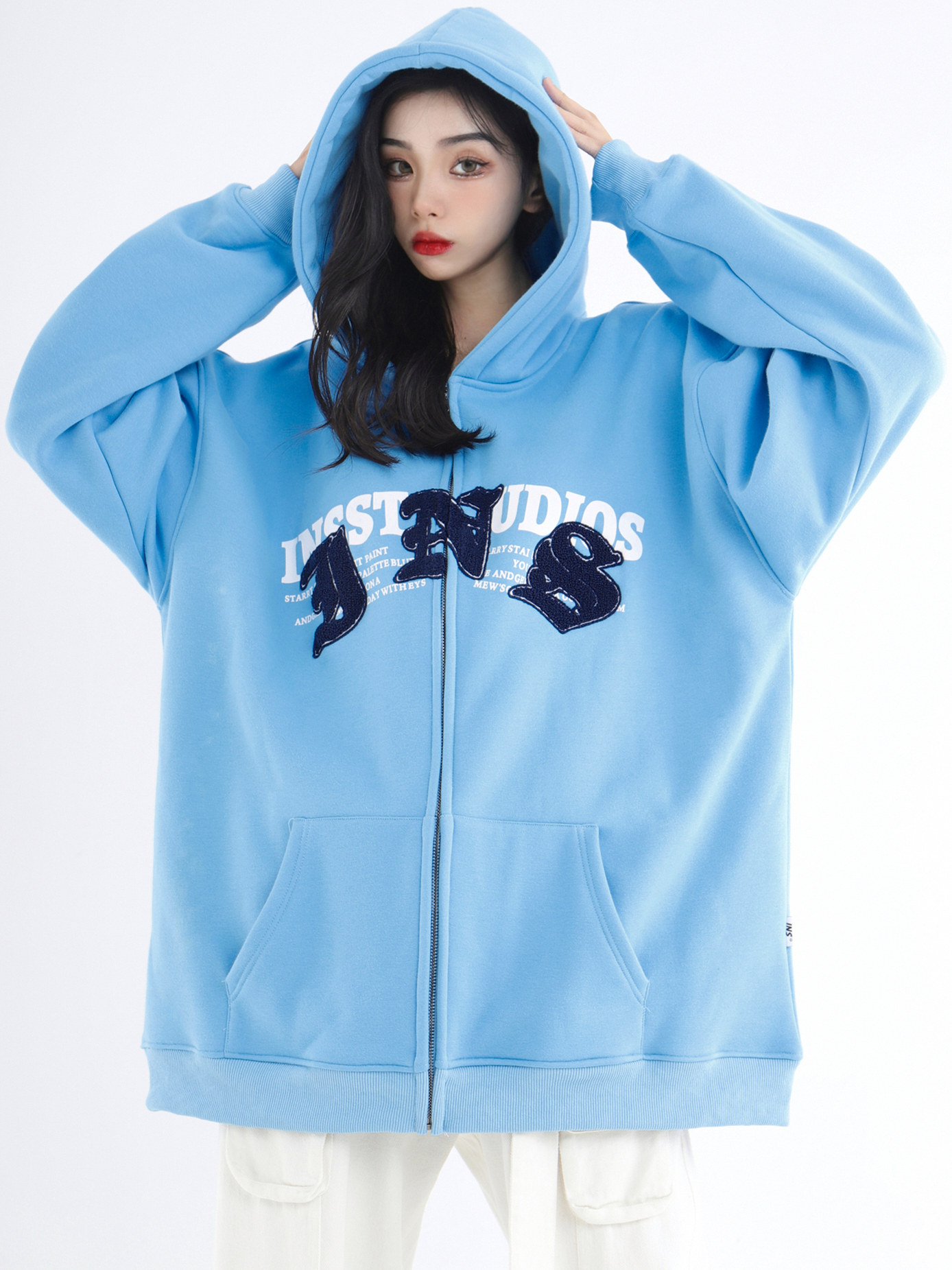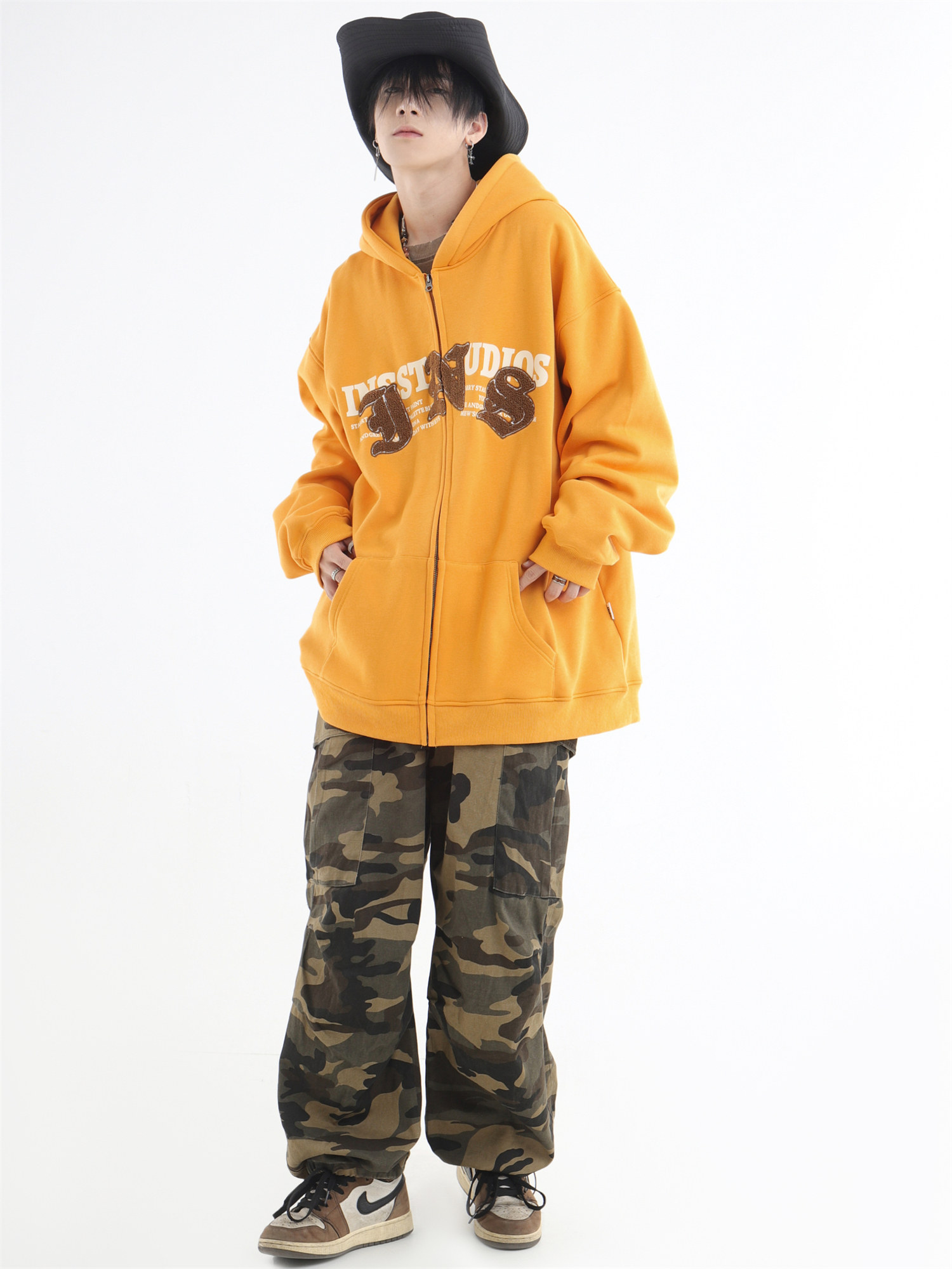 INSstudios 哥特LOGO重疊開衫厚棉T自制國潮美式復古加絨拉鍊外套