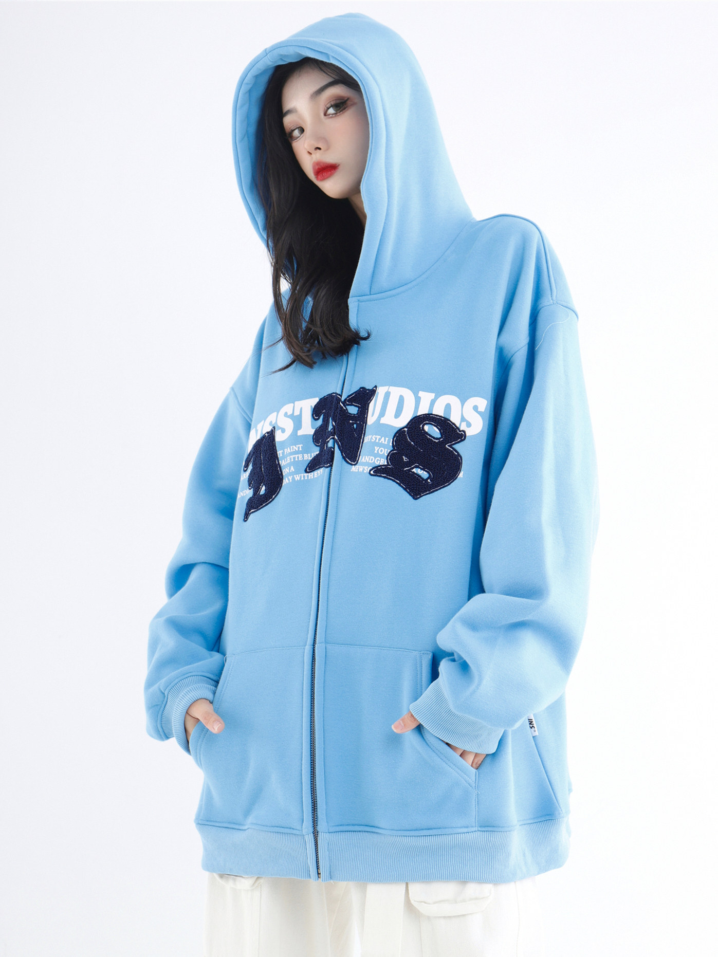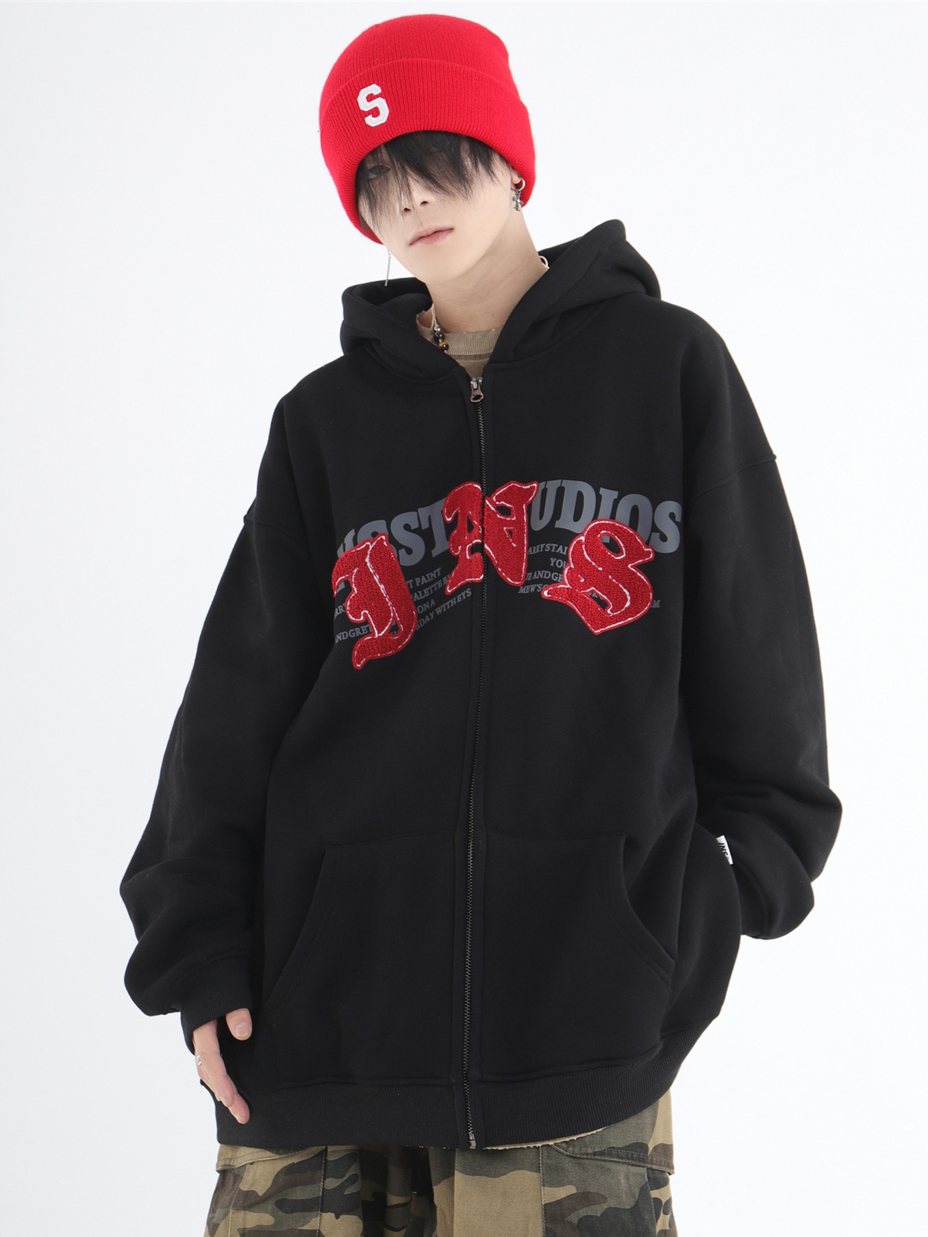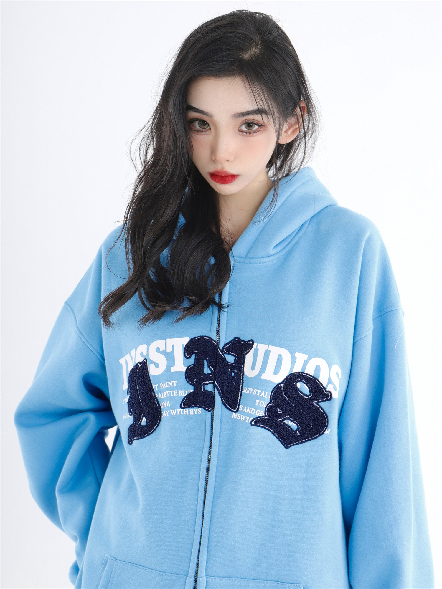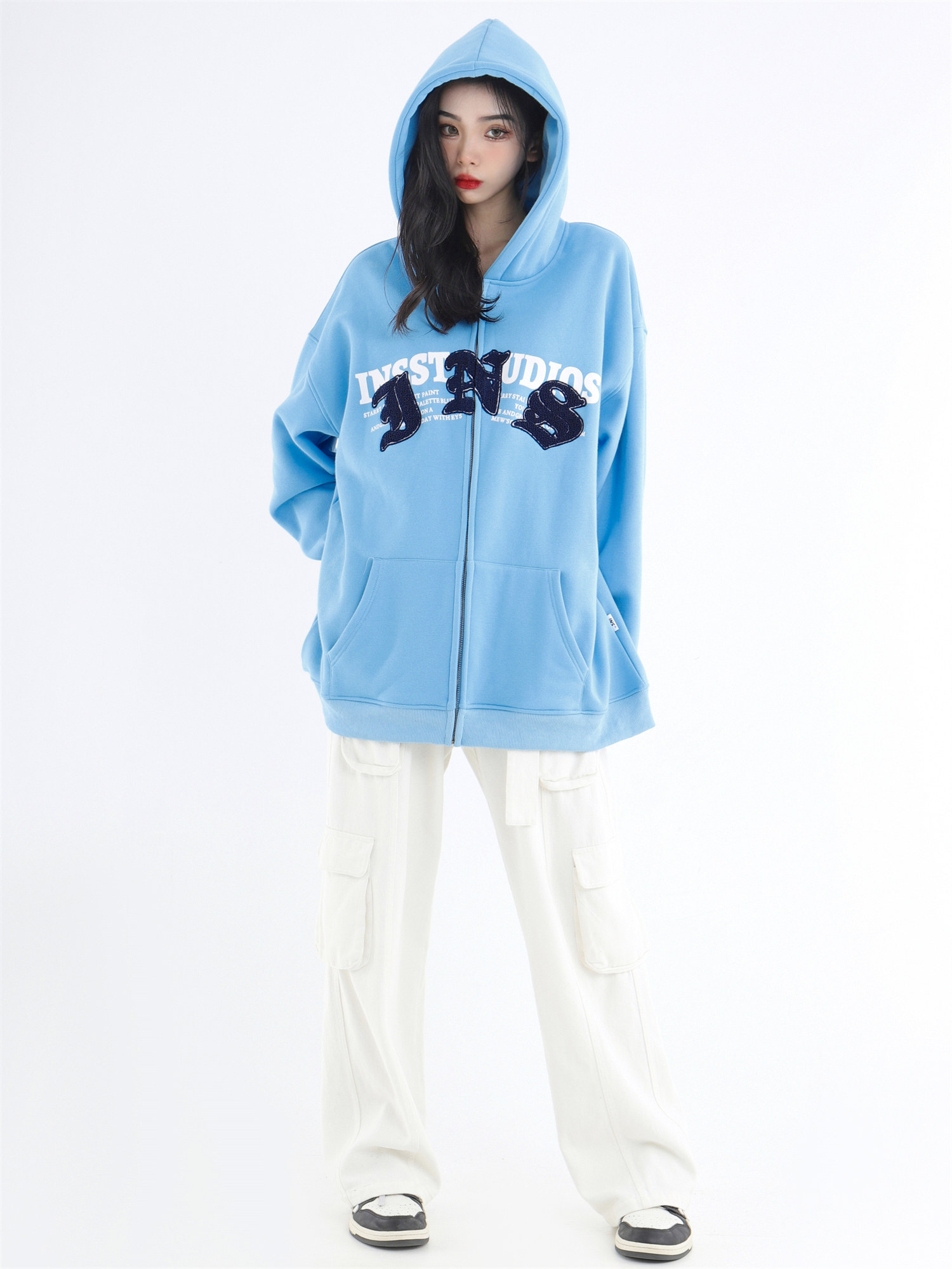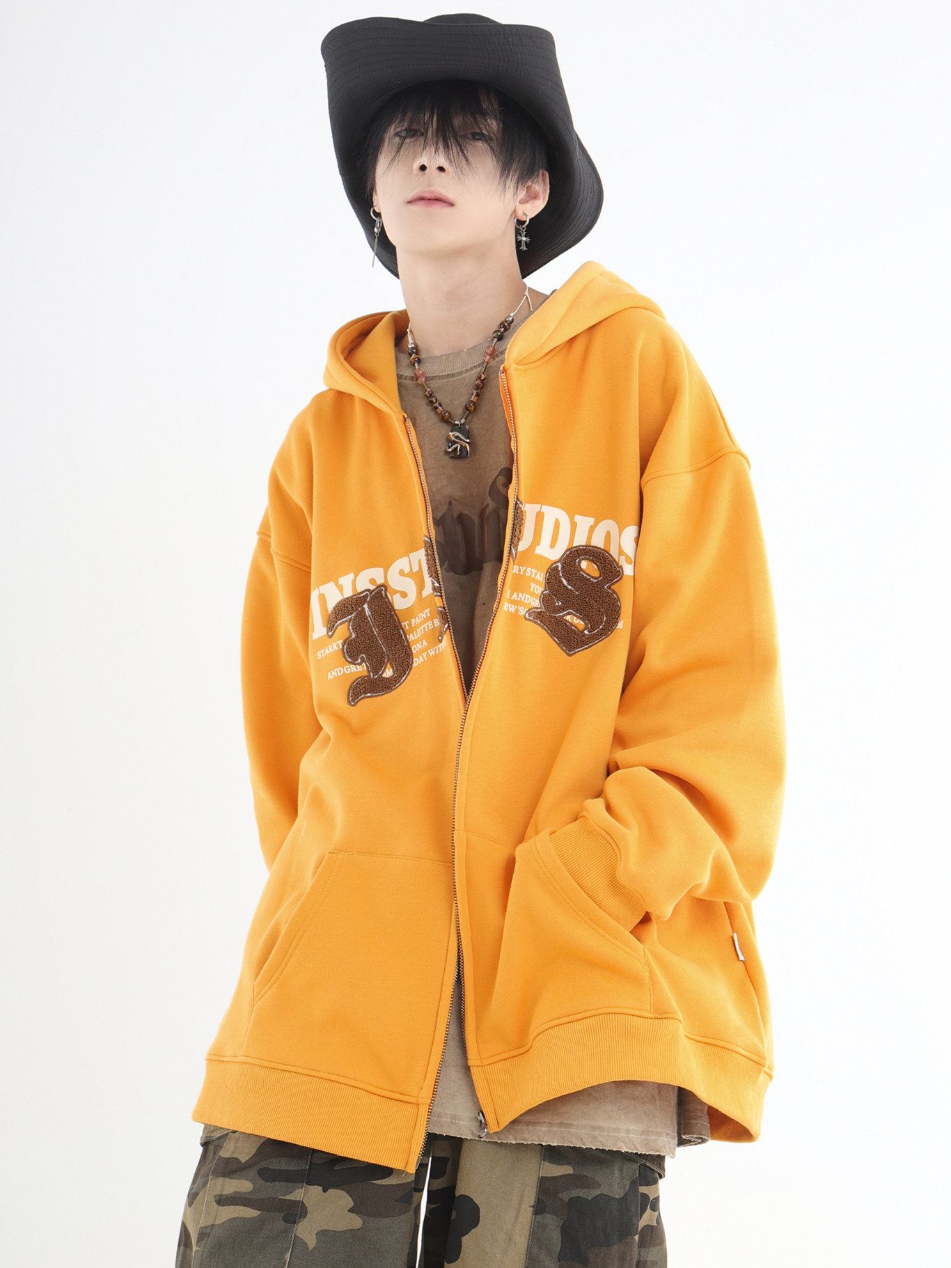 INSstudios 哥特LOGO重疊開衫厚棉T自制國潮美式復古加絨拉鍊外套