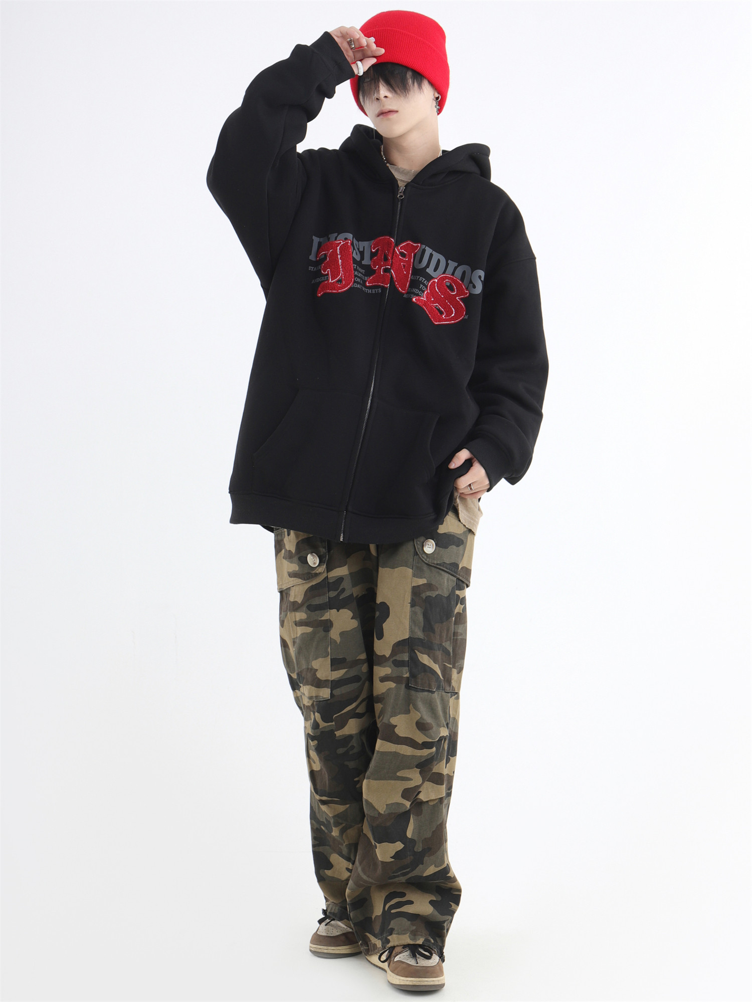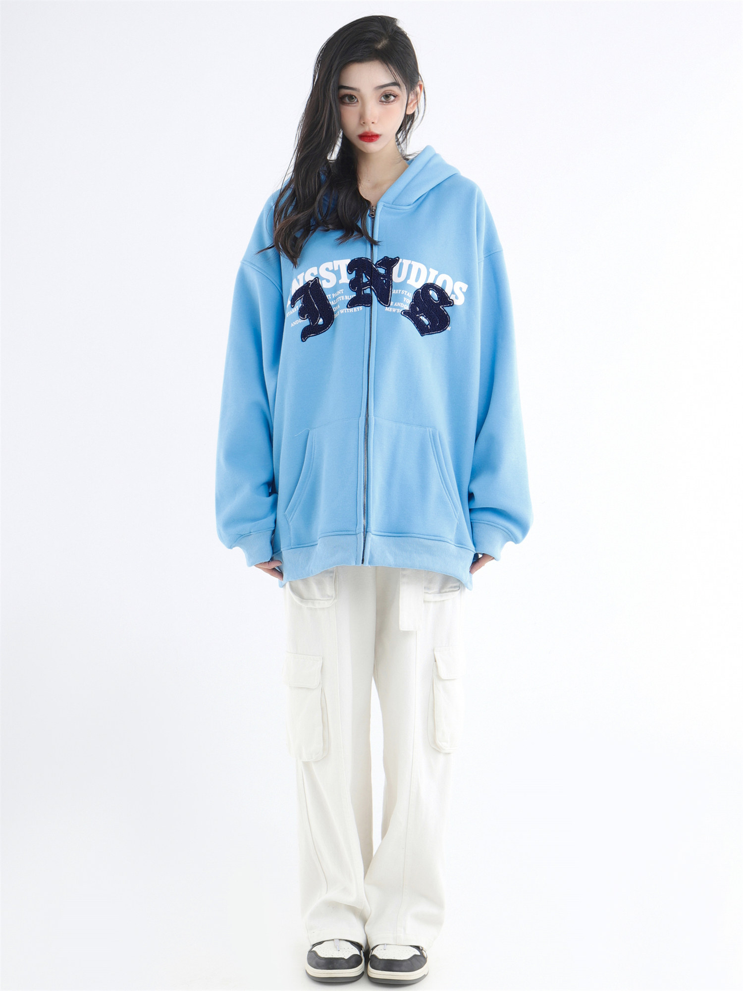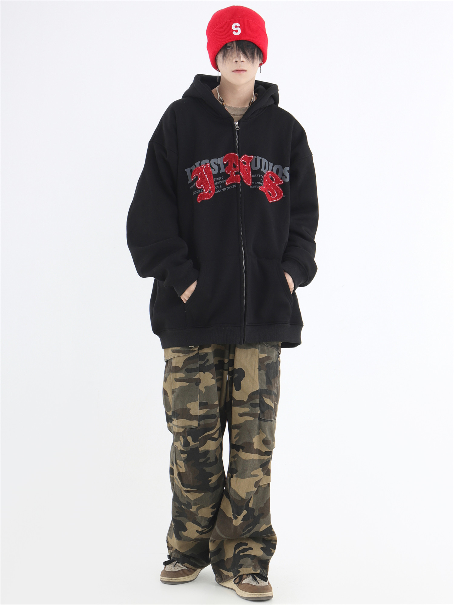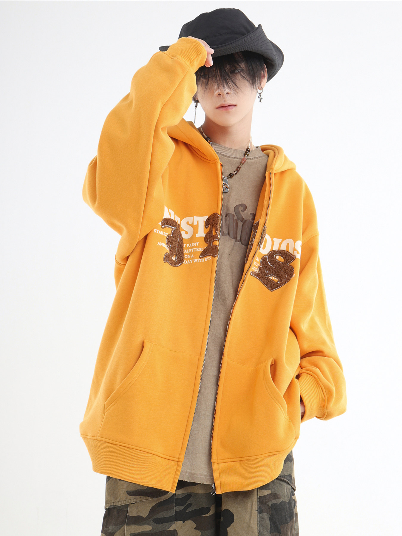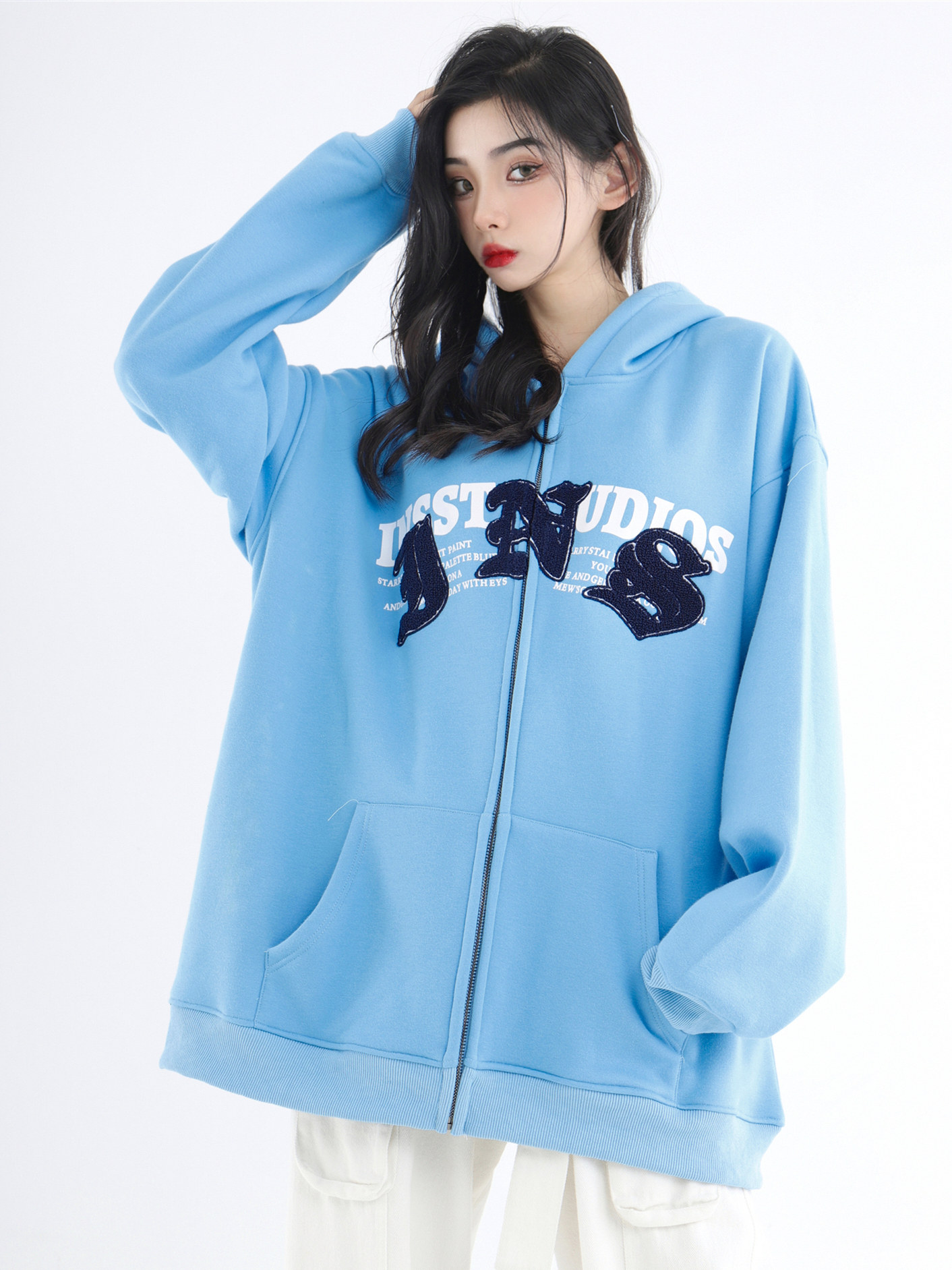 INSstudios 哥特LOGO重疊開衫厚棉T自制國潮美式復古加絨拉鍊外套
