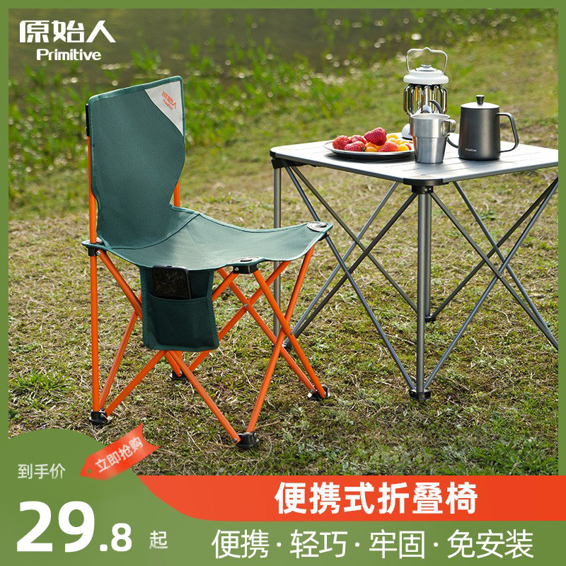原始人戶外摺疊椅子釣魚凳野餐露營野營可攜式超輕小馬扎美術寫生