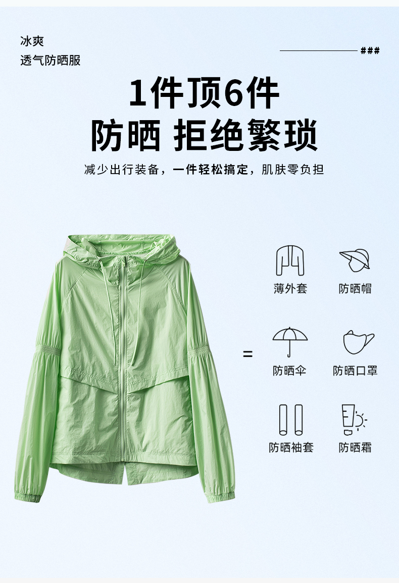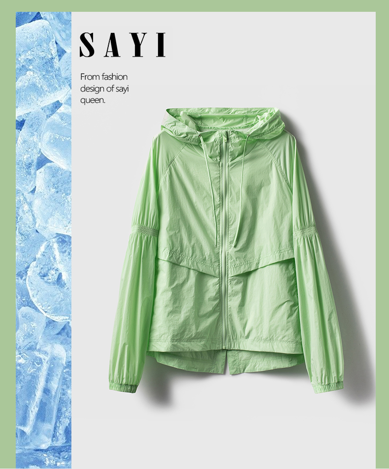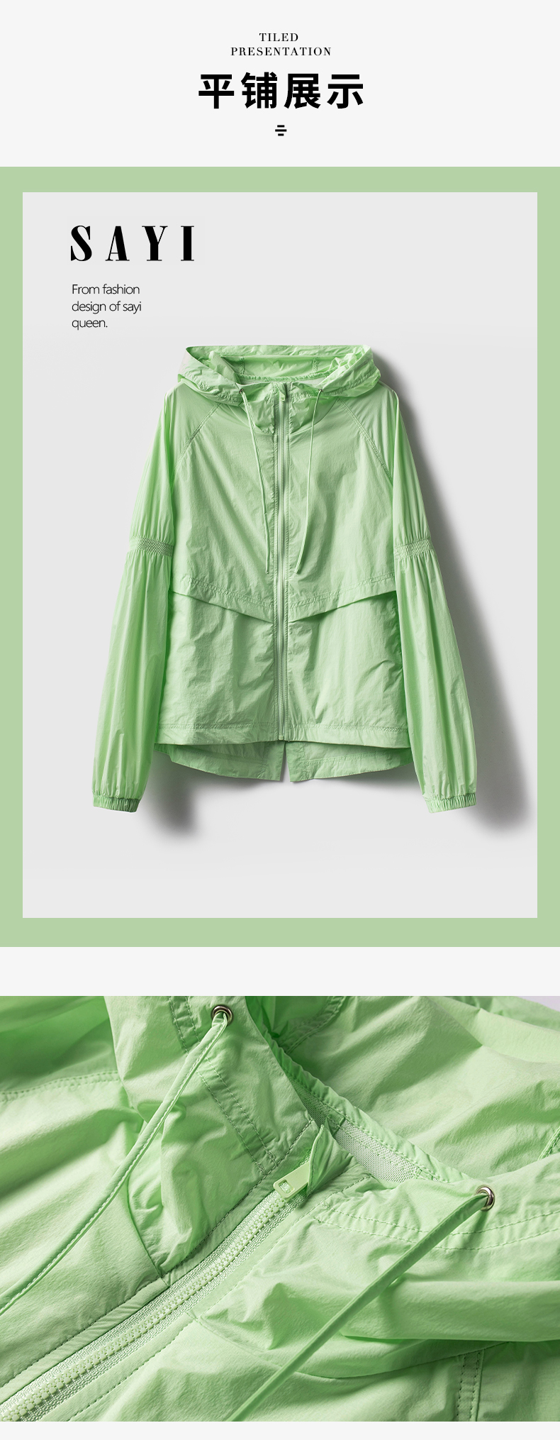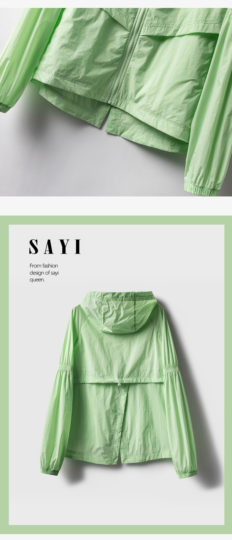 SAYI輕薄款防曬衣女款2023夏季新款冰絲皮膚衣抗UV綠色防曬服