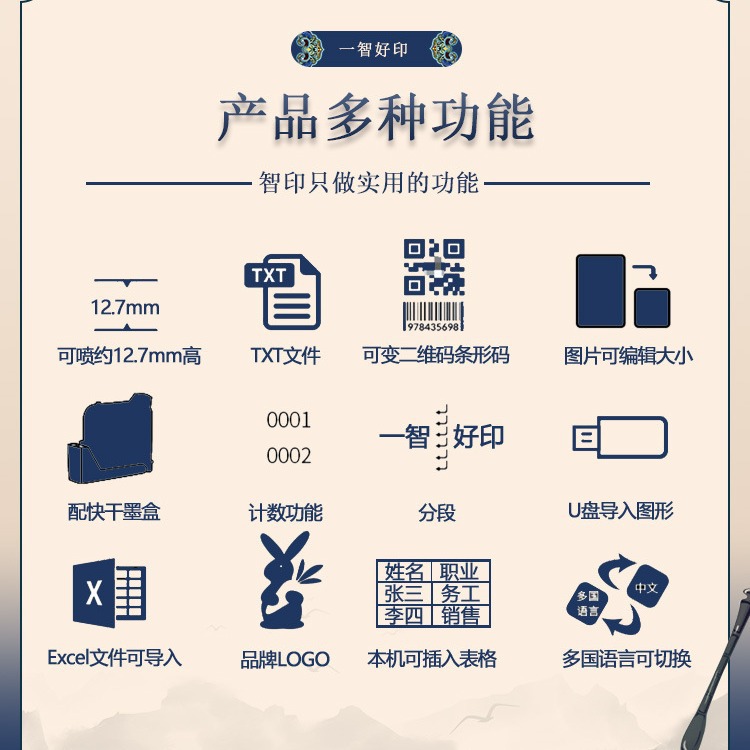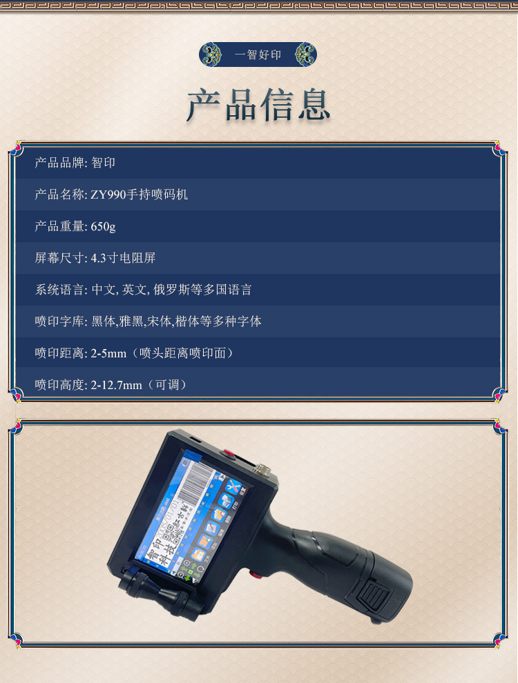 智印ZY990 手持喷码机小型自动打码机生产日期二维码快干可加墨盒
