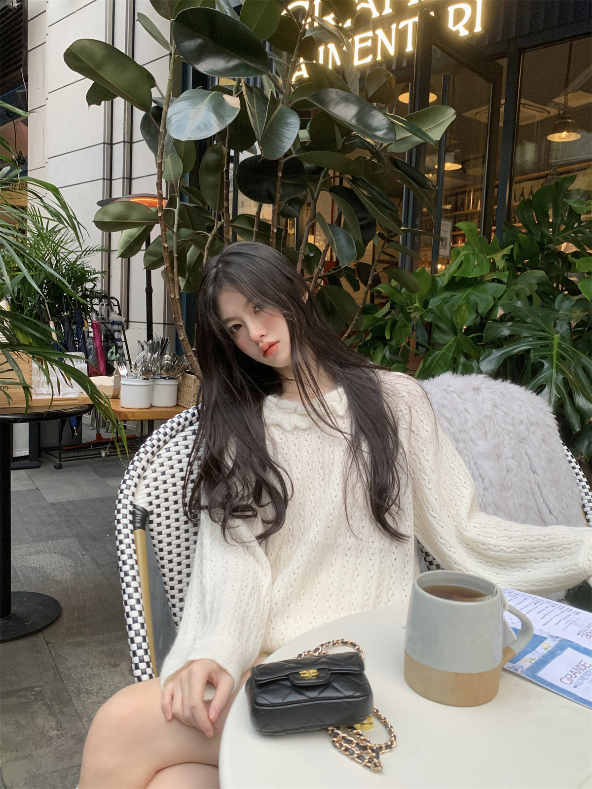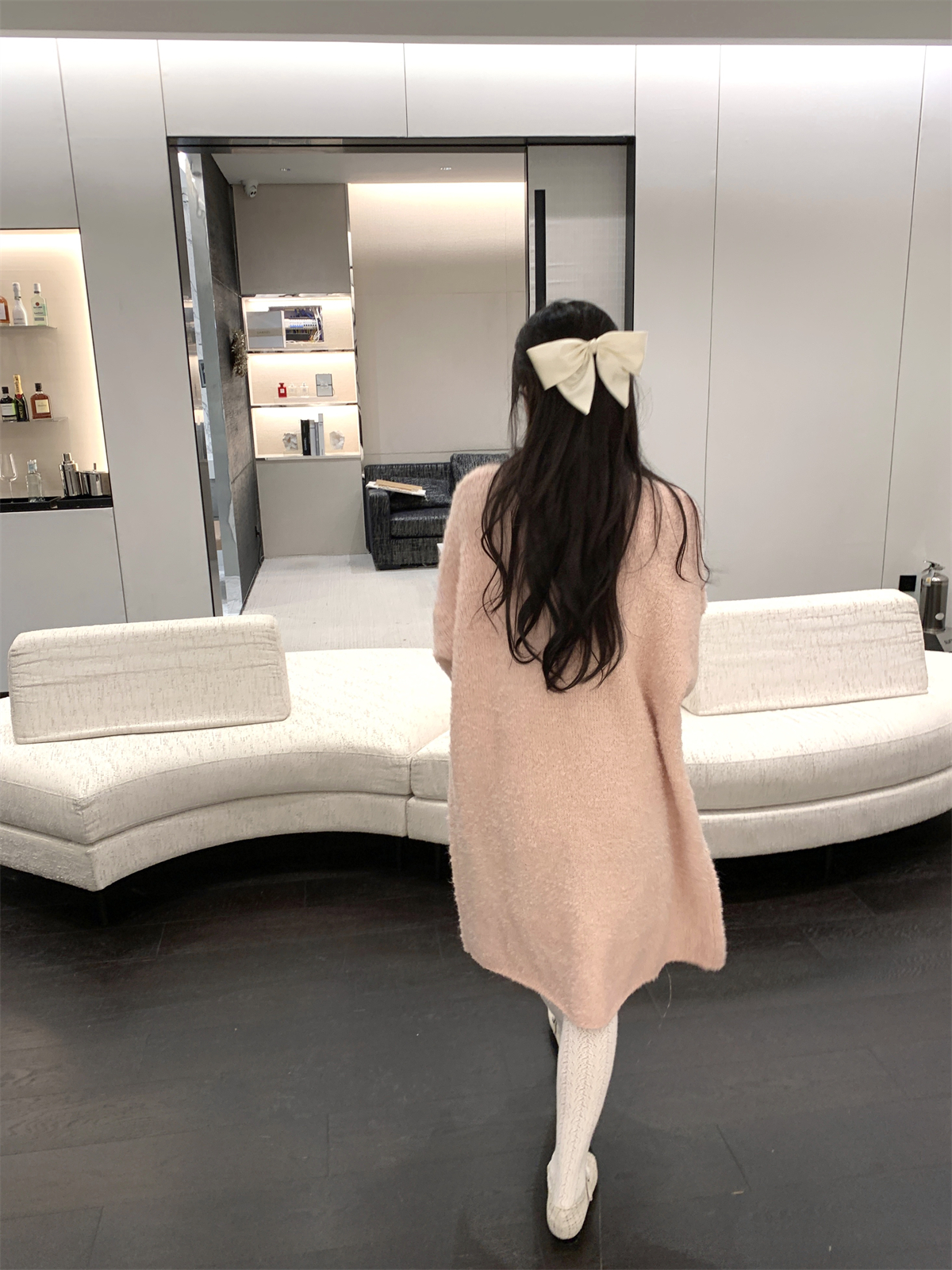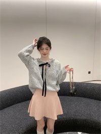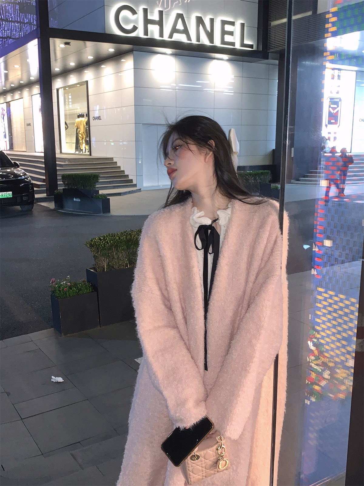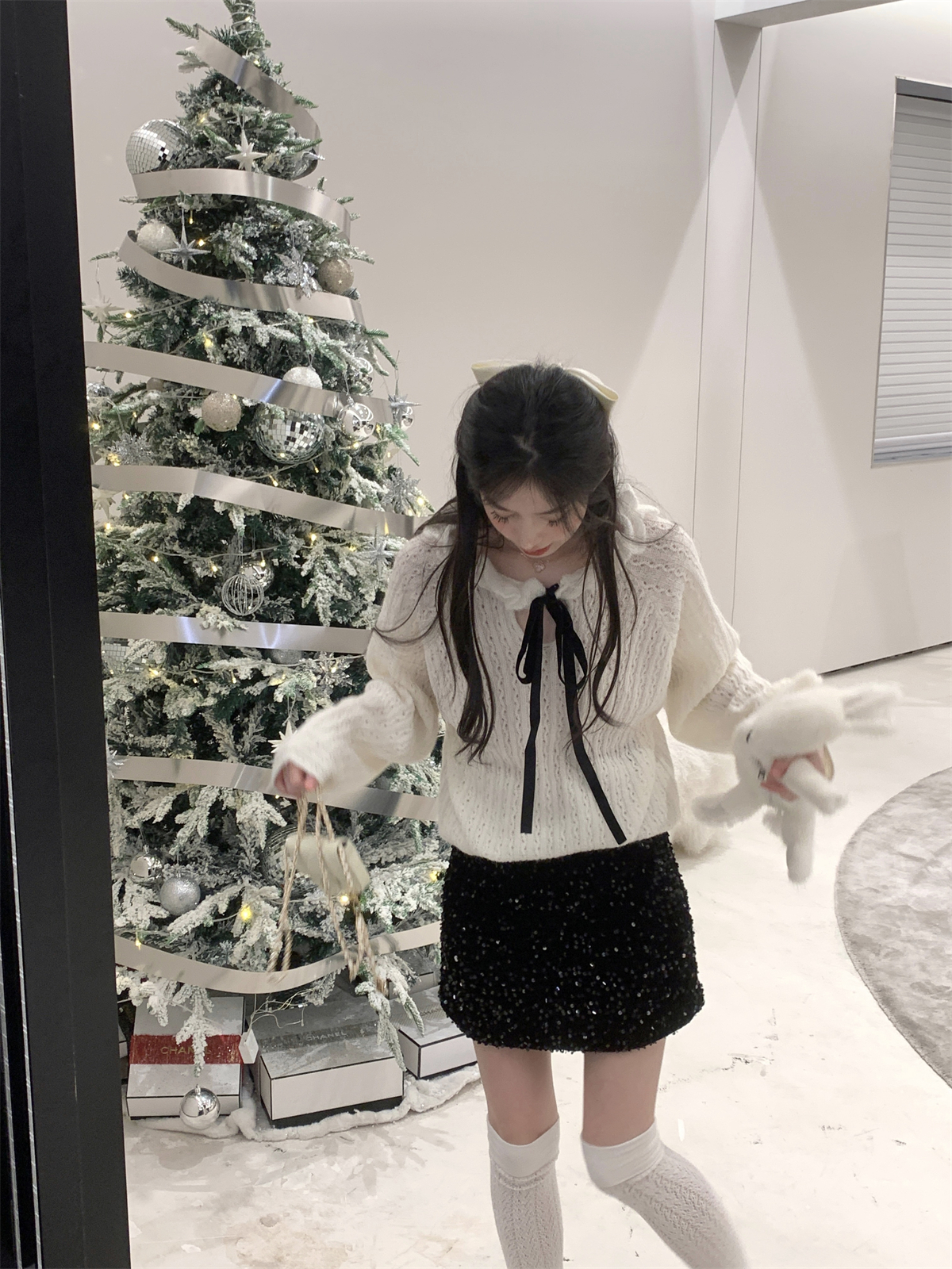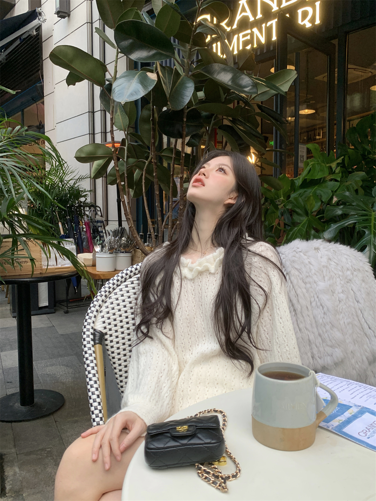 LXLILIUM【西露紗語】兩色花邊馬海毛毛衣女秋冬季繫帶鏤空針織衫