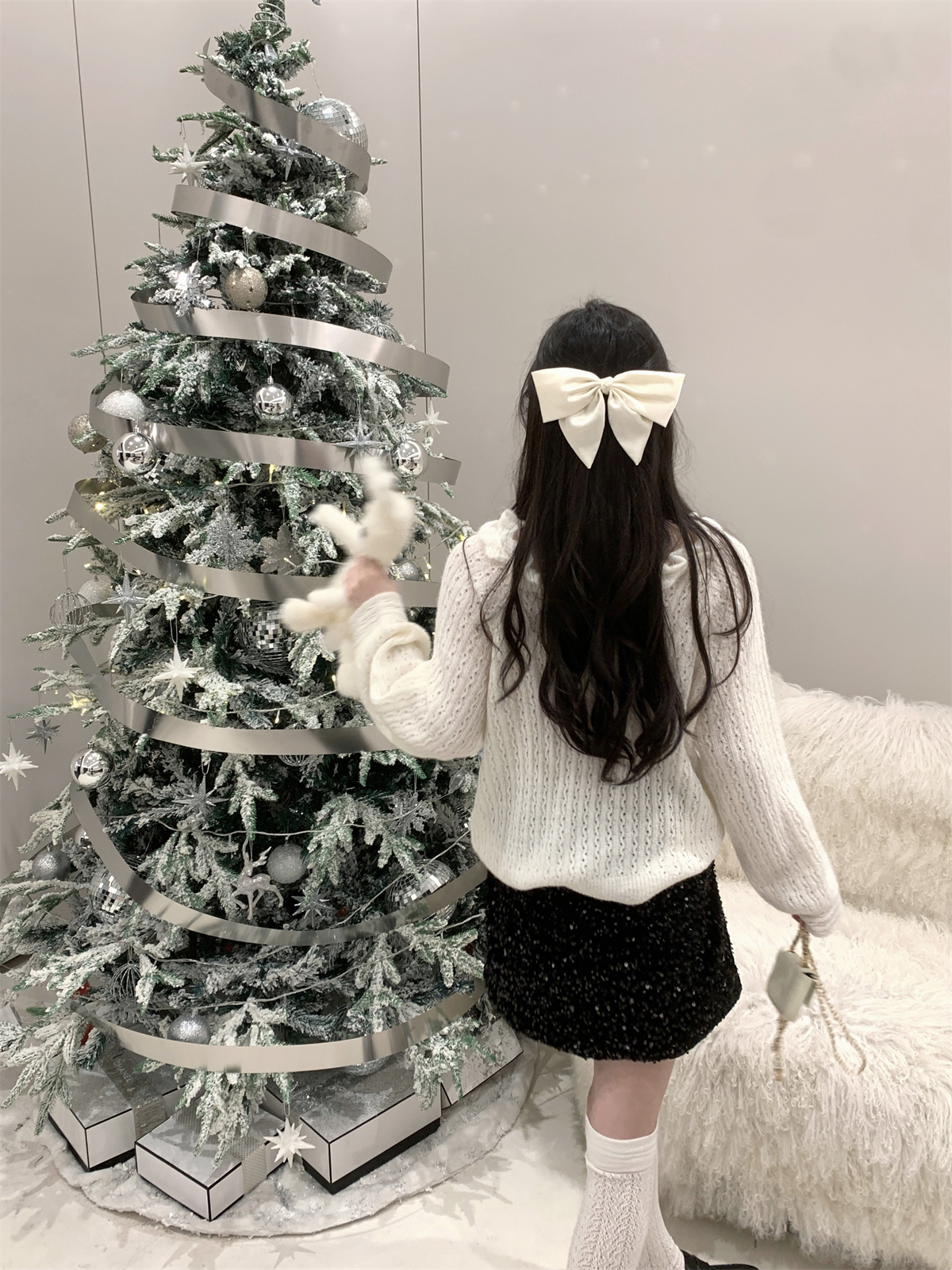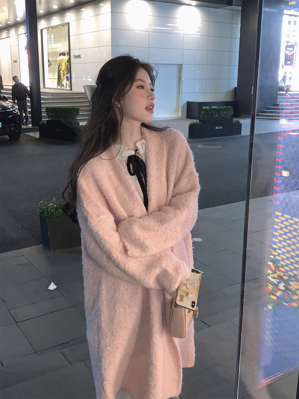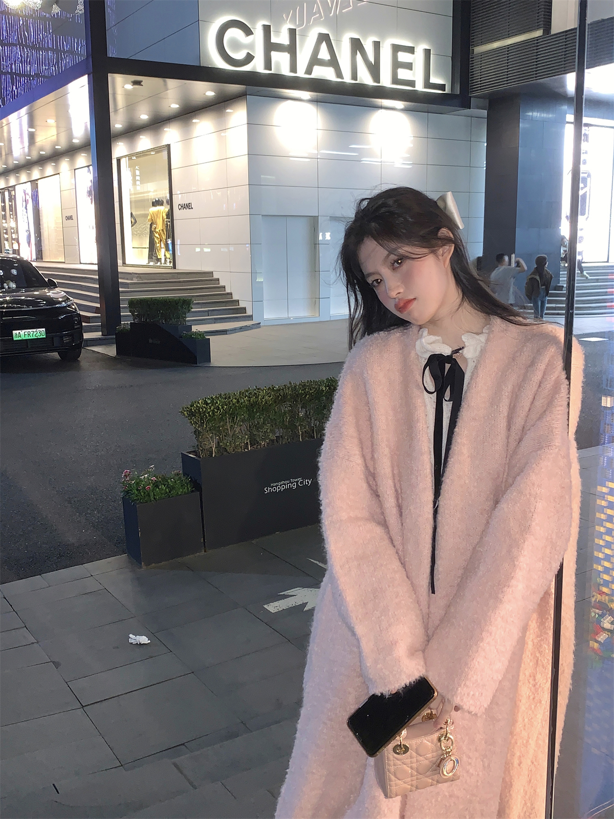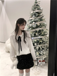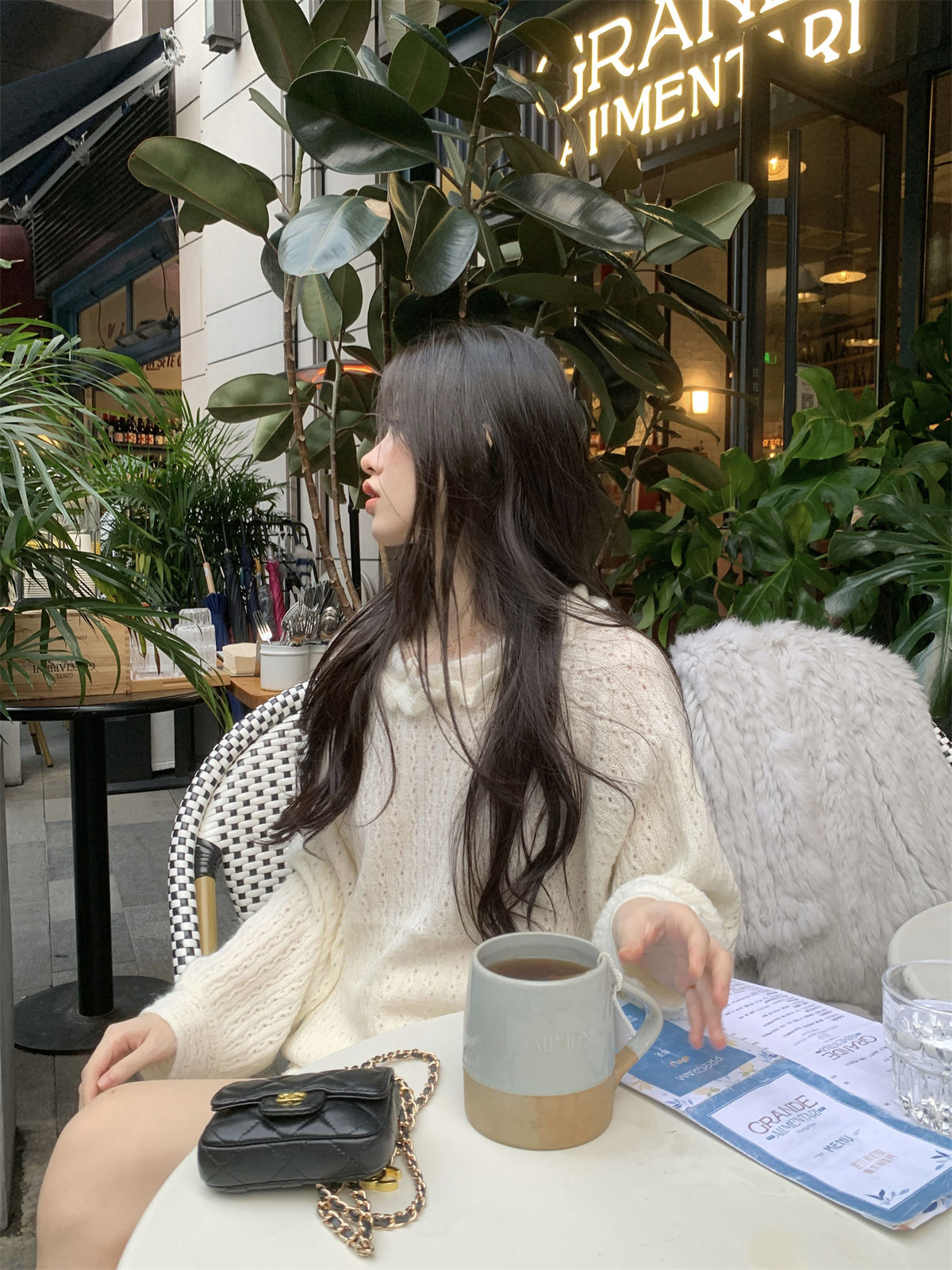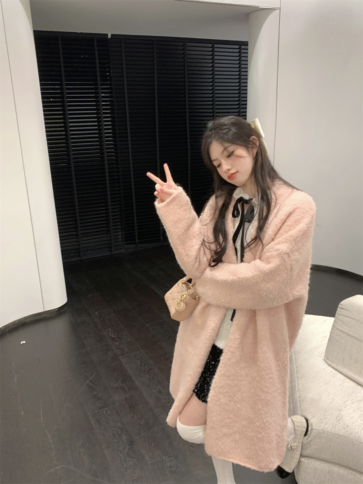 LXLILIUM【西露紗語】兩色花邊馬海毛毛衣女秋冬季繫帶鏤空針織衫