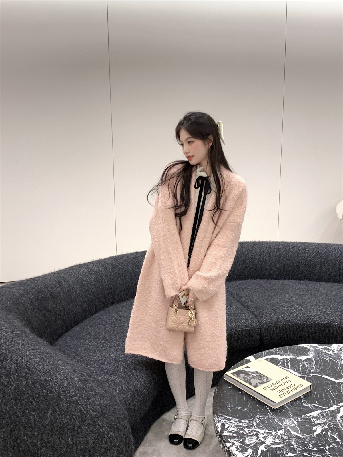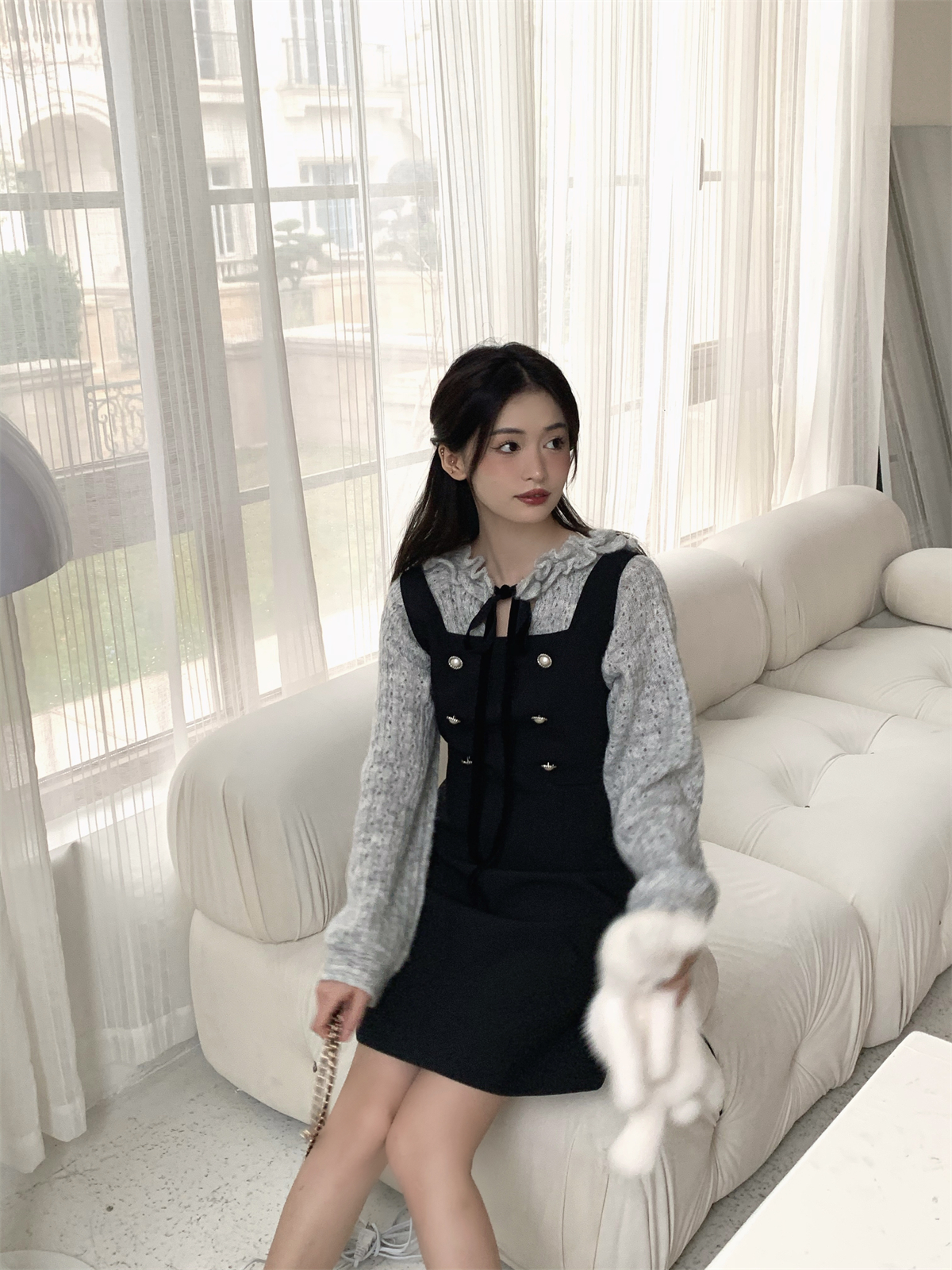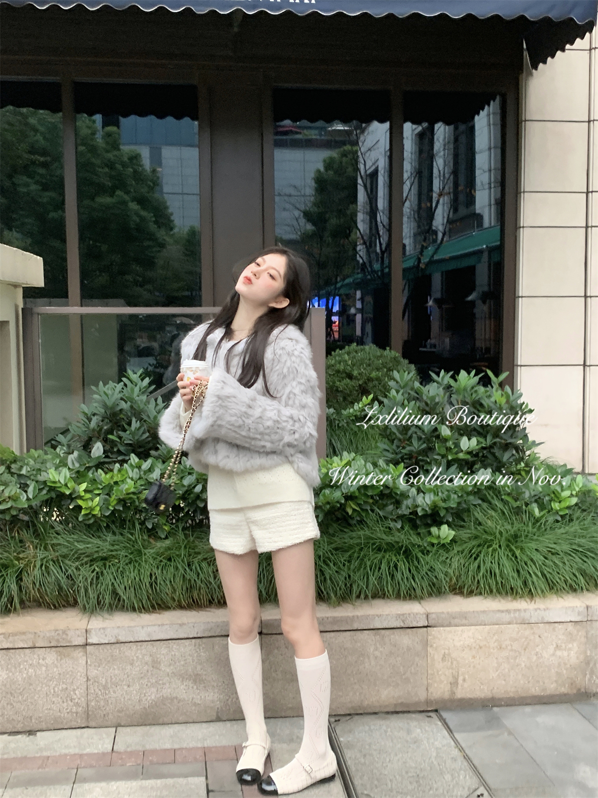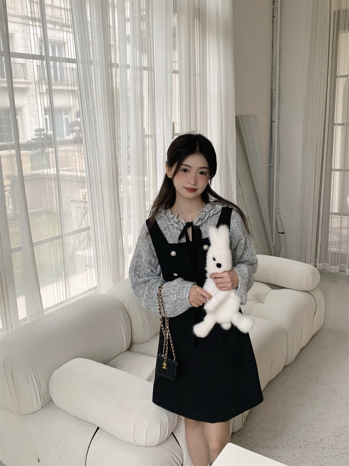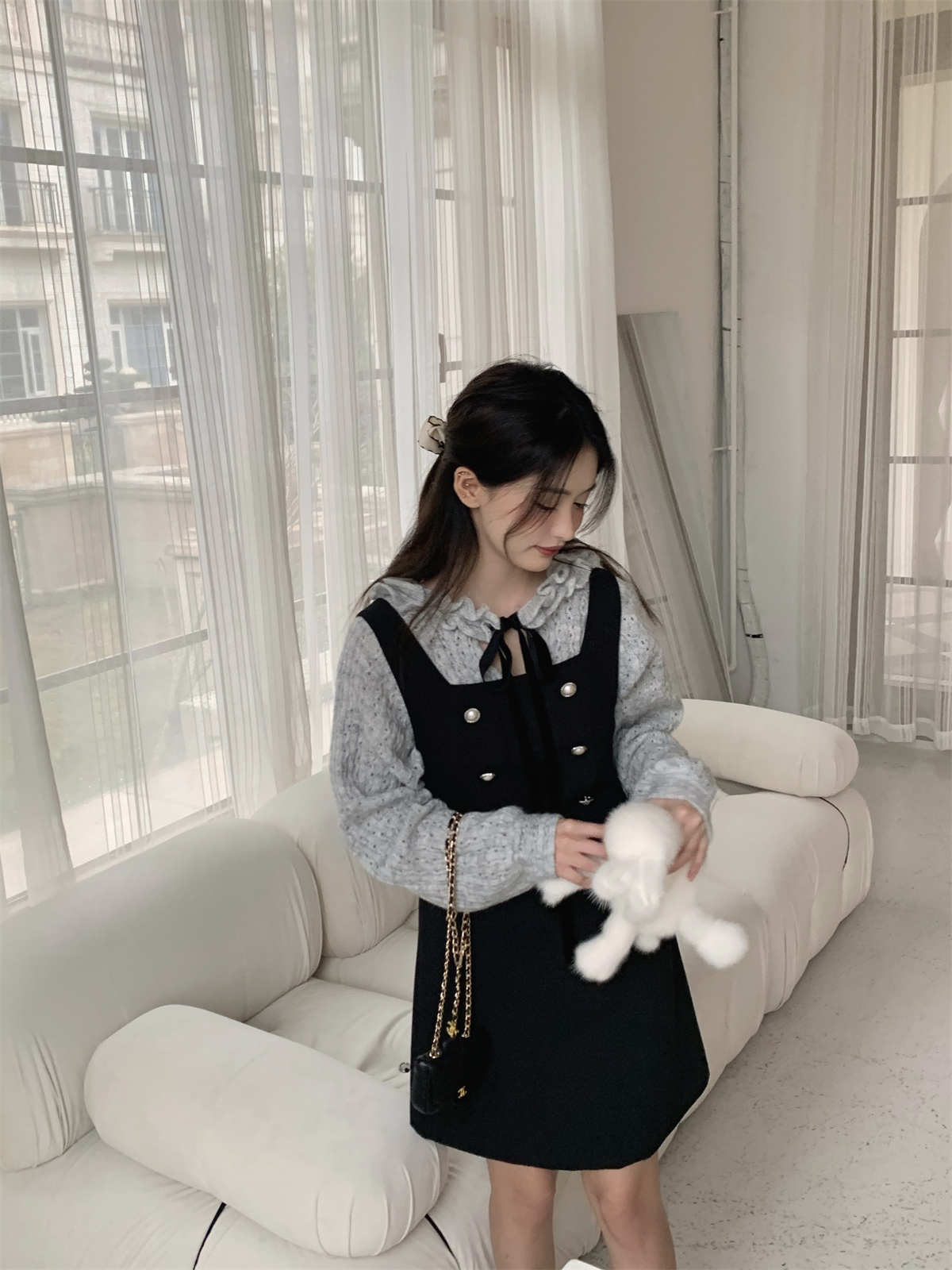 LXLILIUM【西露紗語】兩色花邊馬海毛毛衣女秋冬季繫帶鏤空針織衫