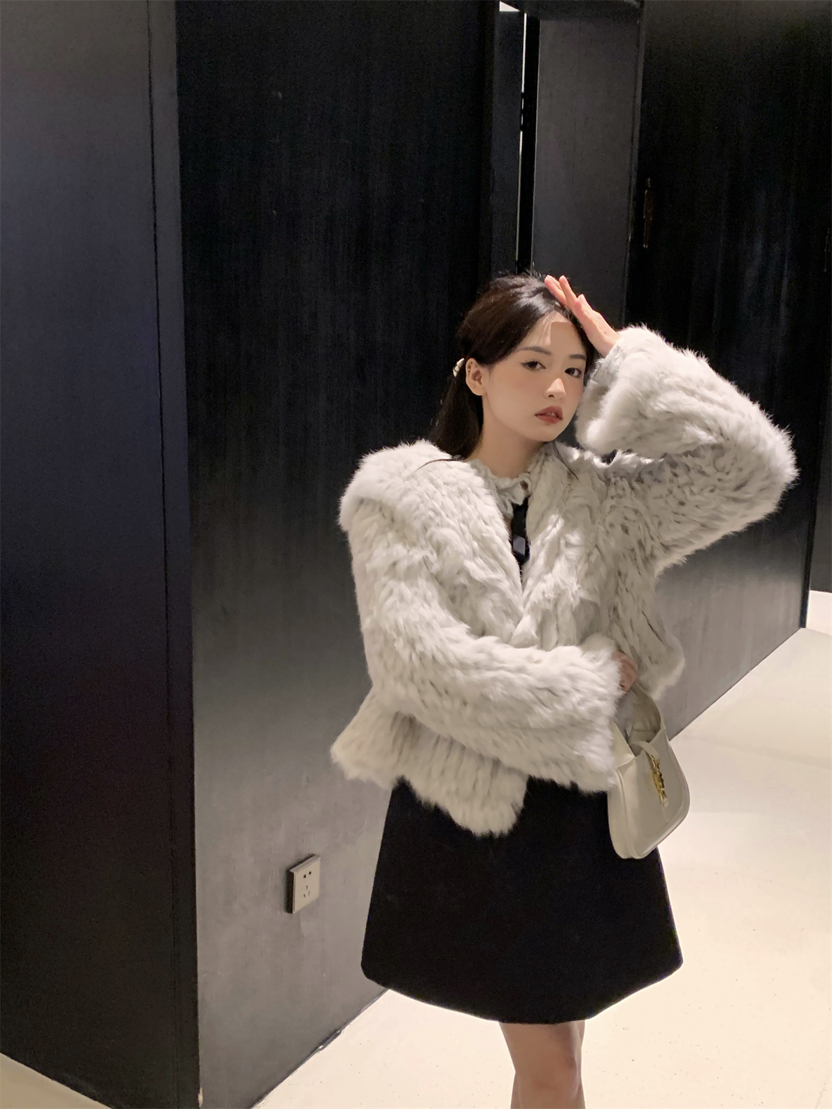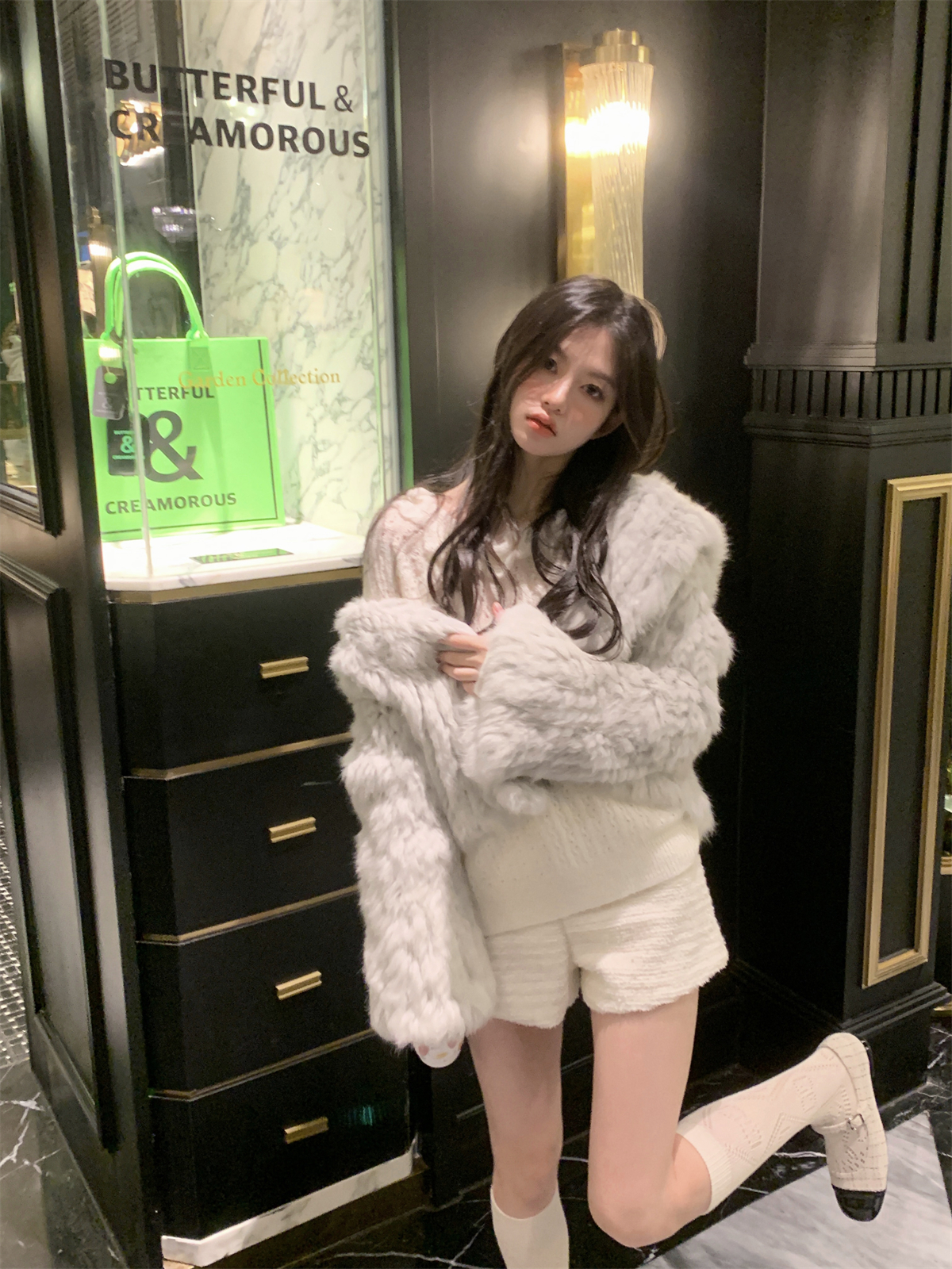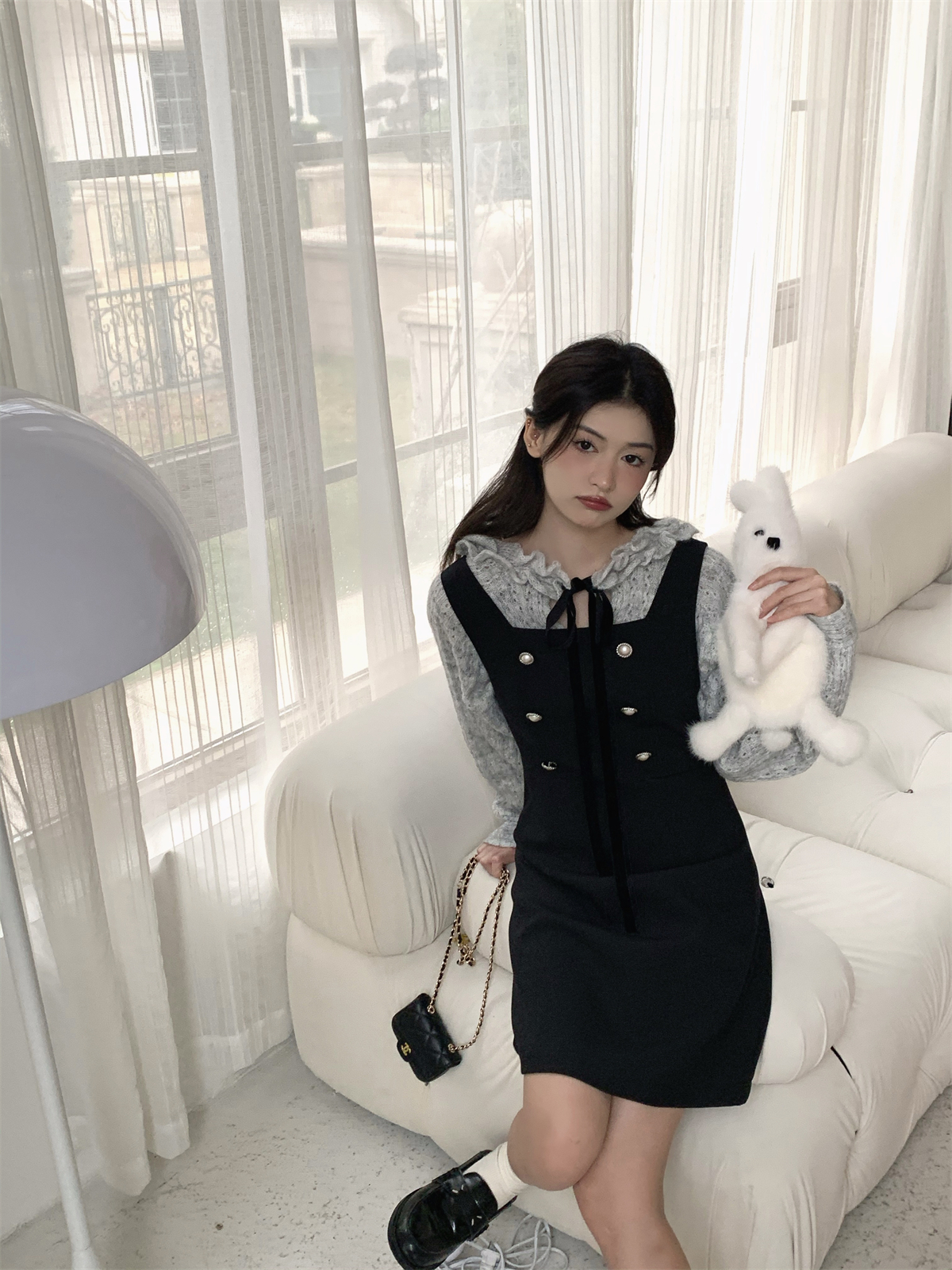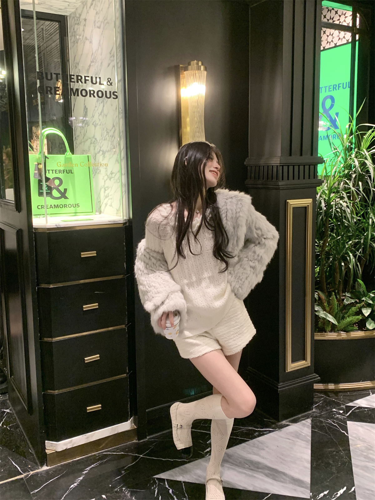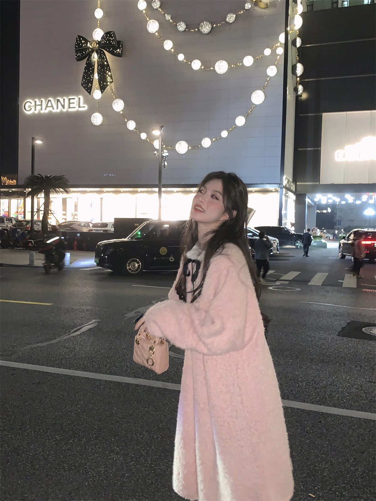 LXLILIUM【西露紗語】兩色花邊馬海毛毛衣女秋冬季繫帶鏤空針織衫