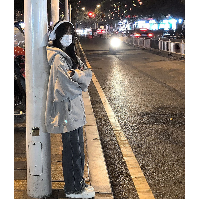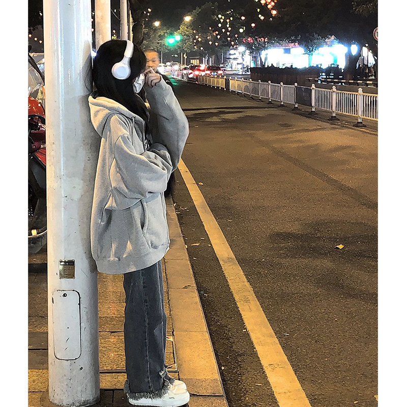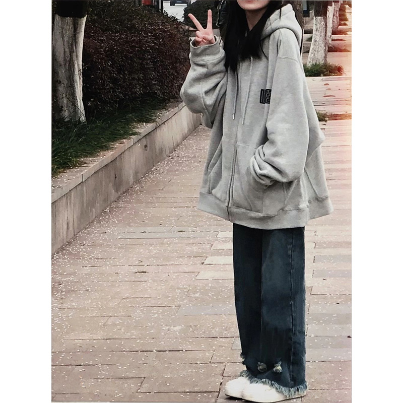 美式潮牌灰色加絨加厚厚棉T女冬季寬鬆休閒情侶裝復古開衫拉鍊外套
