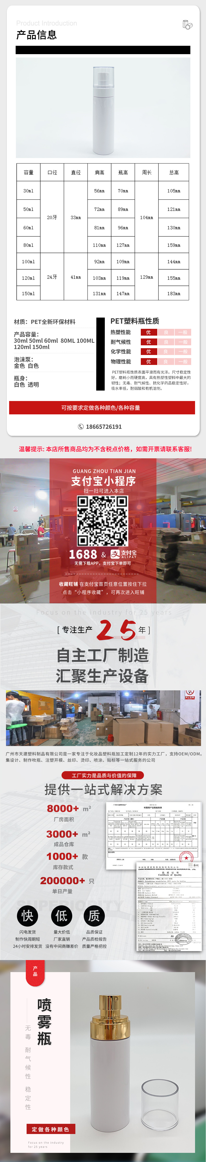 规格 白色瓶+金色喷雾,白色瓶+白色喷雾,透明瓶+金色喷雾,透明瓶+白色喷雾