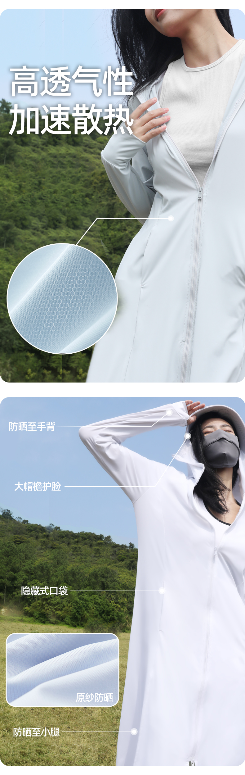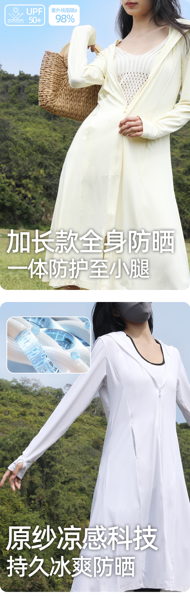 冰絲薄款防曬衣中長版開衫全身防曬服抗UV2023夏季防曬衣女款