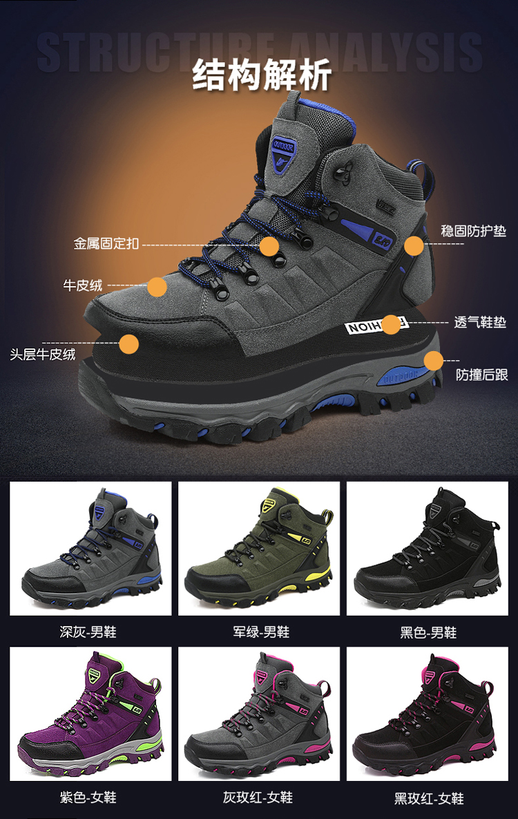 夏季美國外貿鞋高筒戶外鞋男靴登山鞋女防水防滑徒步鞋旅遊爬山鞋