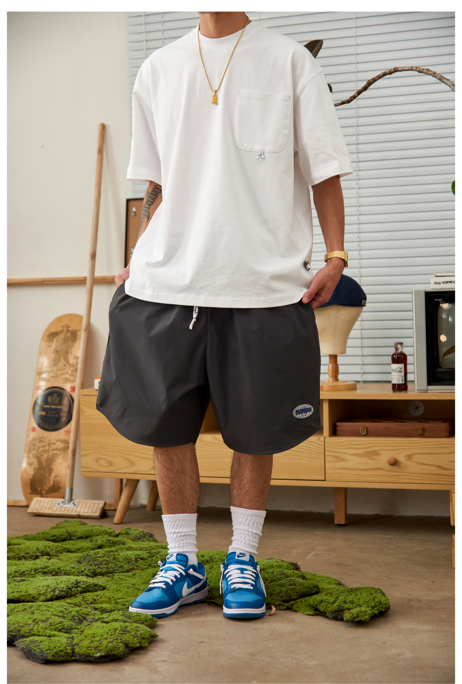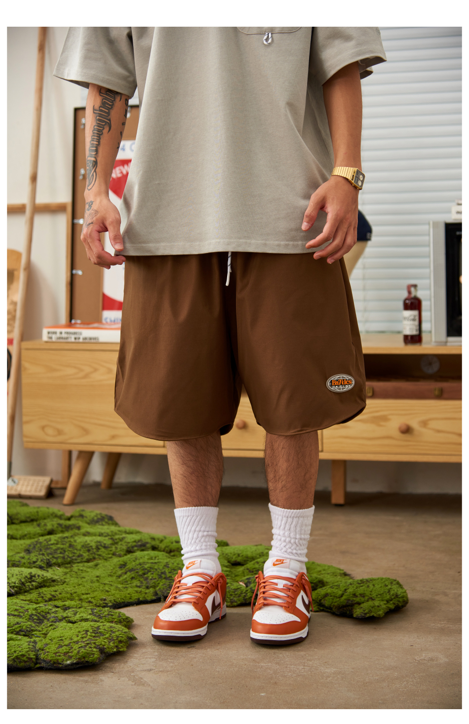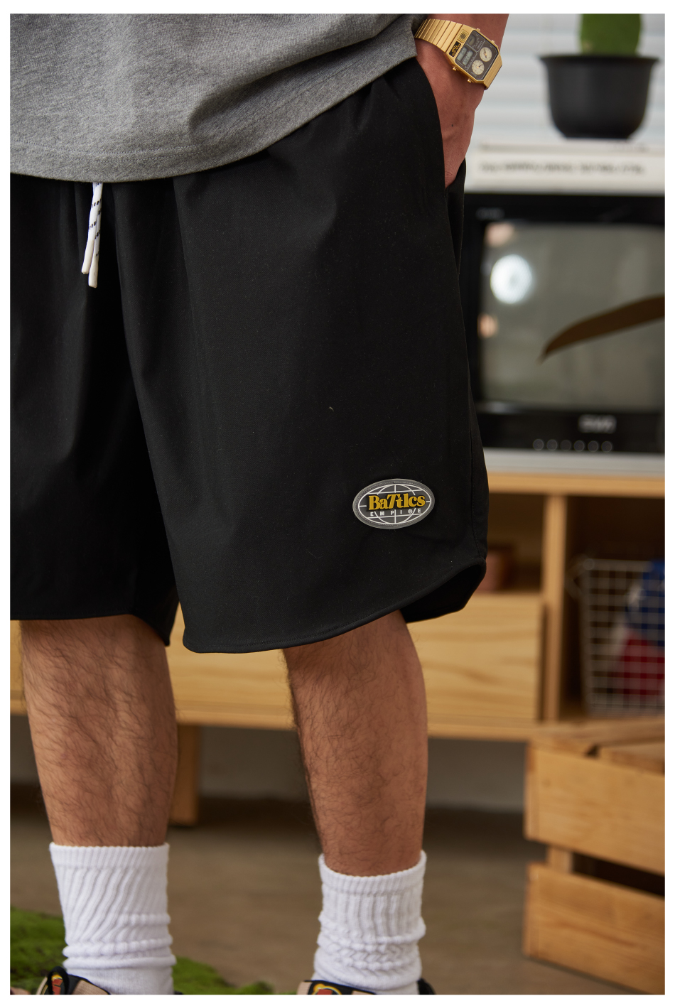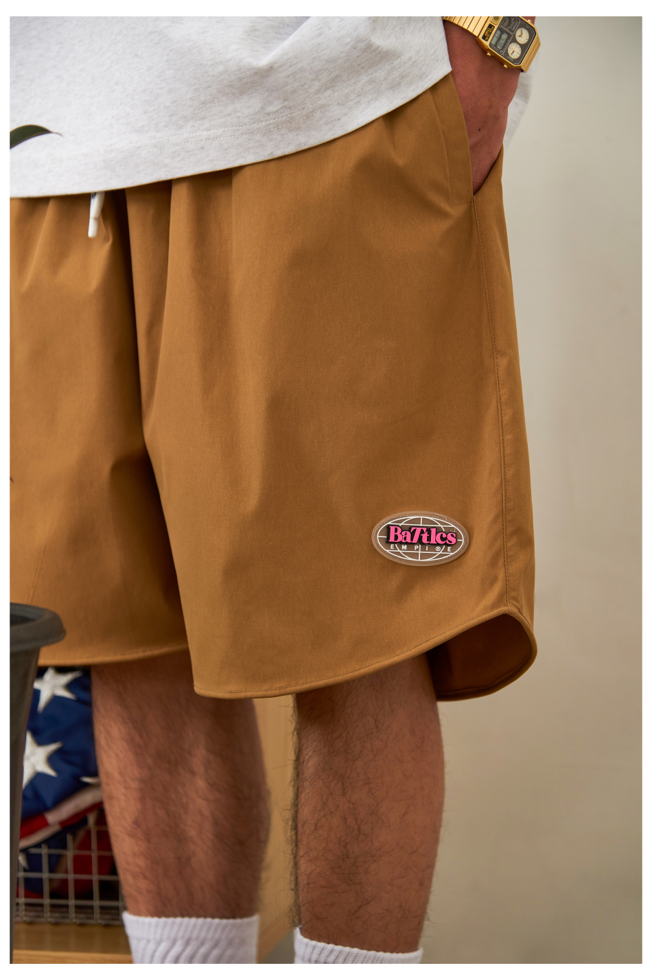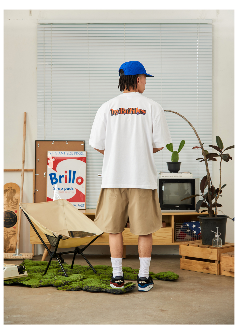Battles2022夏季新品滴膠Logo輕薄速幹休閒運動短褲男五分褲寬鬆