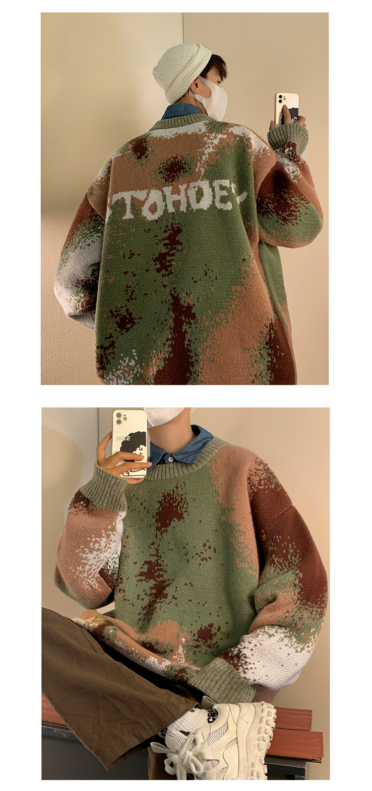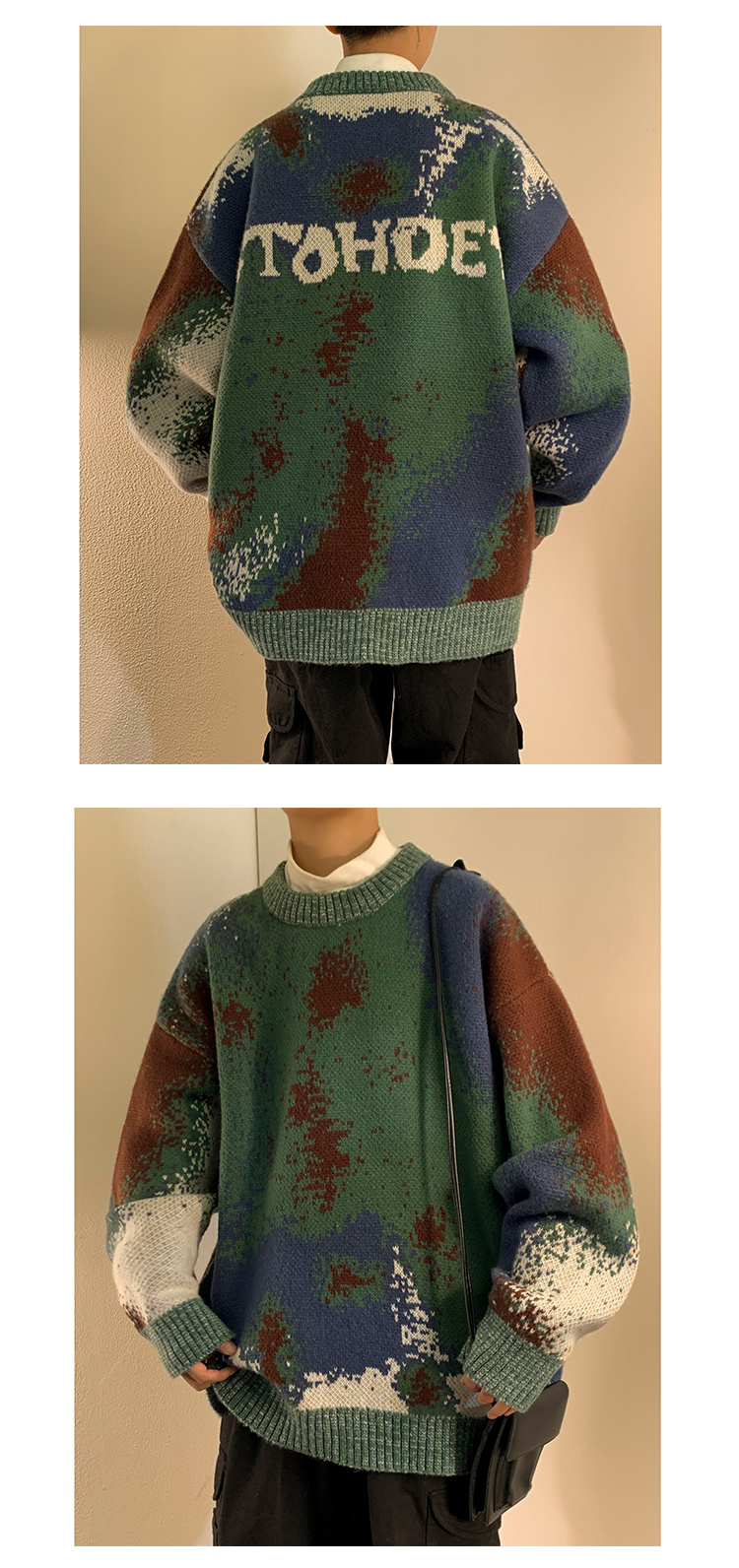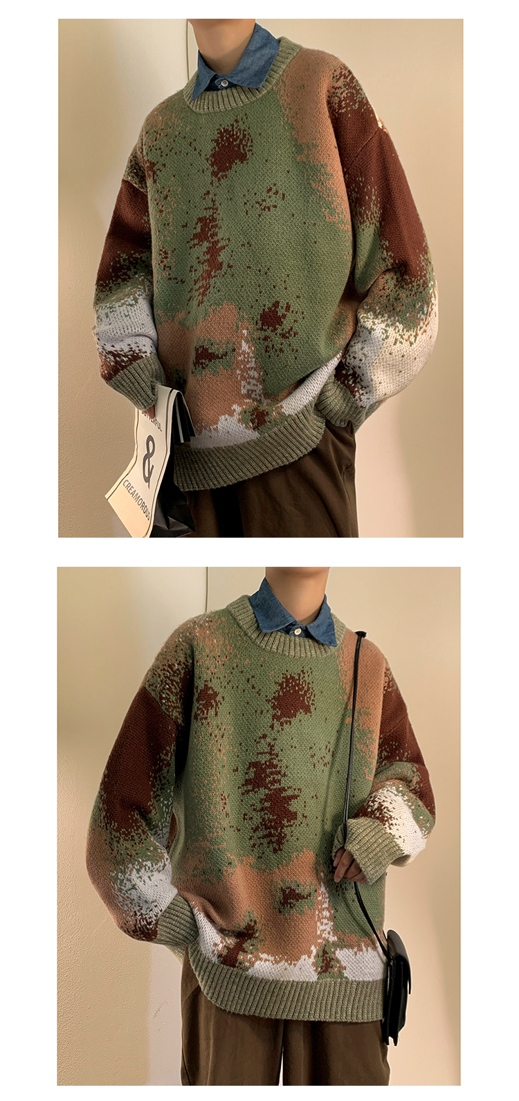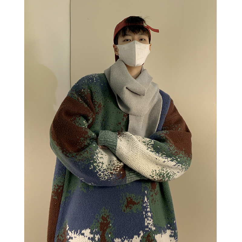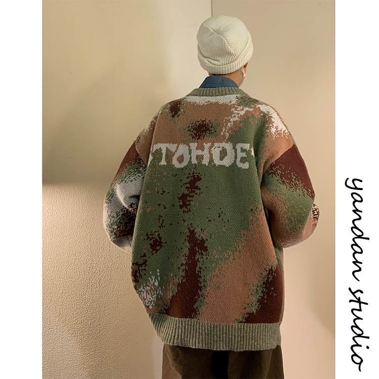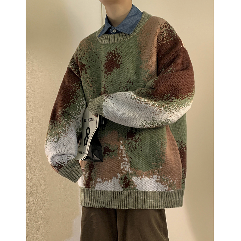 美式復古着迷彩色紮染毛衣外套男vintage針織衫歐美風高級感穿搭