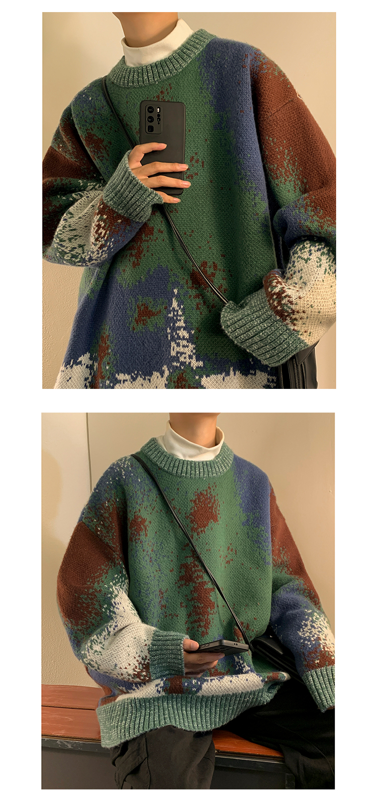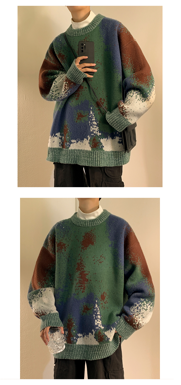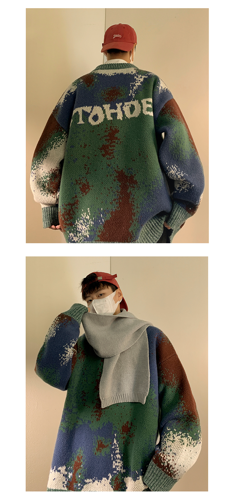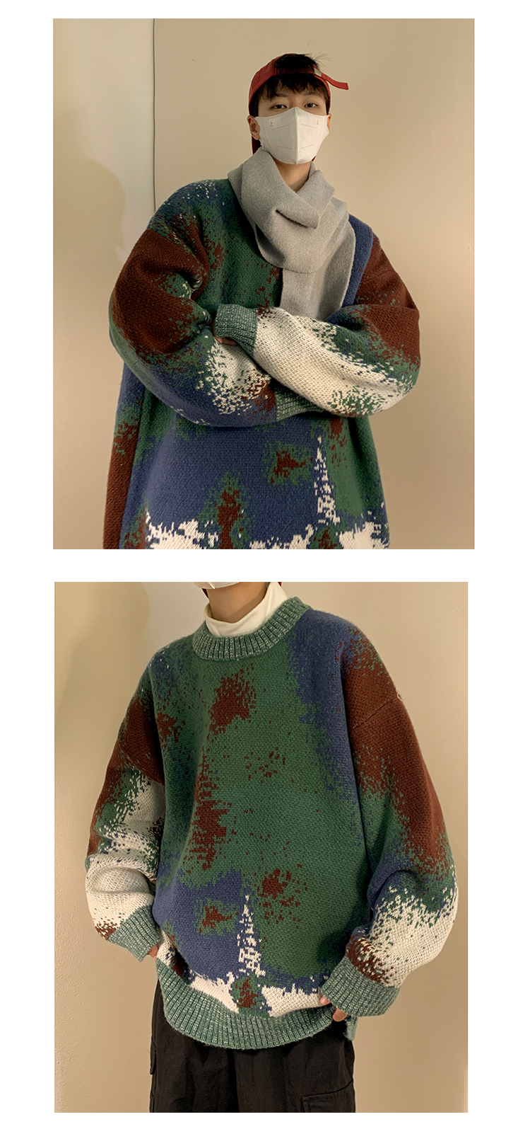美式復古着迷彩色紮染毛衣外套男vintage針織衫歐美風高級感穿搭