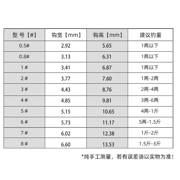 鱼钩号码 8号
