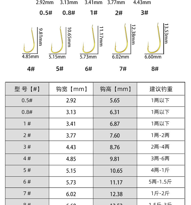 规格 【散】金袖有刺0.5#,【散】金袖有刺0.8#,【散】金袖有刺1#,【散】金袖有刺2#,【散】金袖有刺3#,【散】金袖有刺4#,【散】金袖有刺5#,【散】金袖有刺6#,【散】金袖有刺7#,【散】金袖有刺8#,金袖无刺【散】0.5#,金袖无刺【散】0.8#,金袖无刺【散】1#,金袖无刺【散】2#,金袖无刺【散】3#,金袖无刺【散】4#,金袖无刺【散】5#,金袖无刺【散】6#,金袖无刺【散】7#,金袖无刺【散】8#