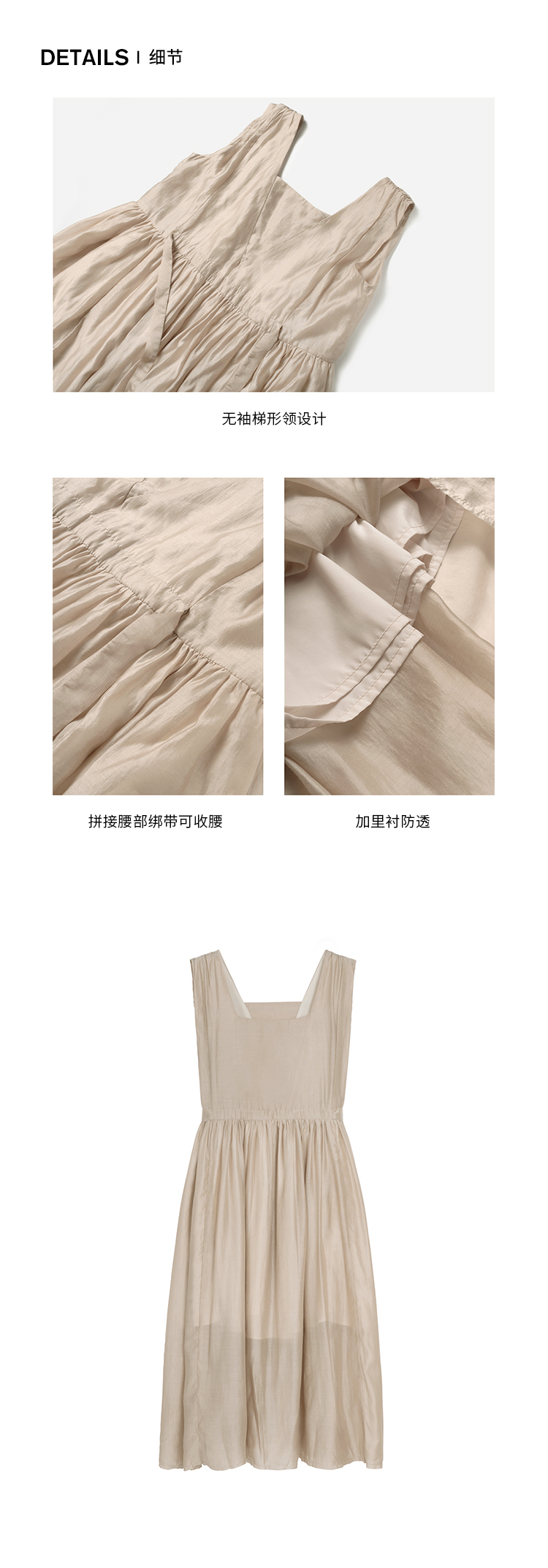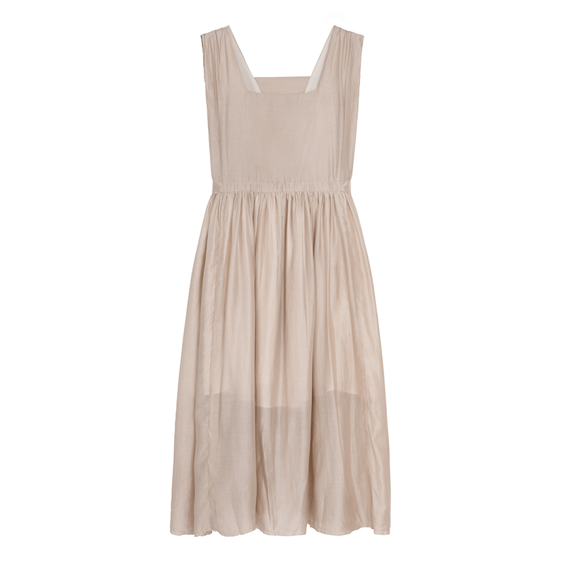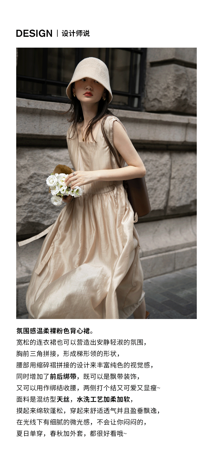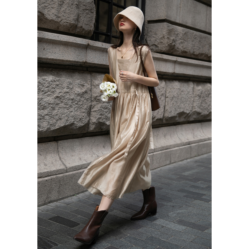 【止不住的溫柔】1313裸粉色可收腰背心裙女夏無袖84%天絲洋裝