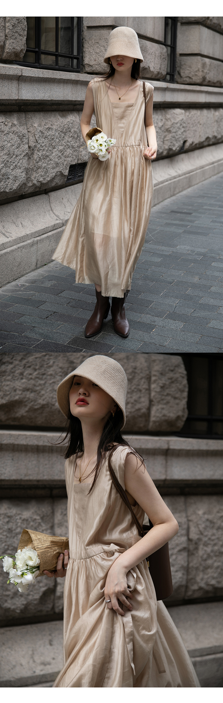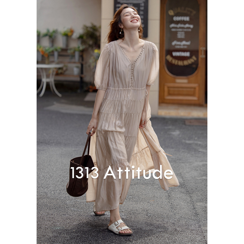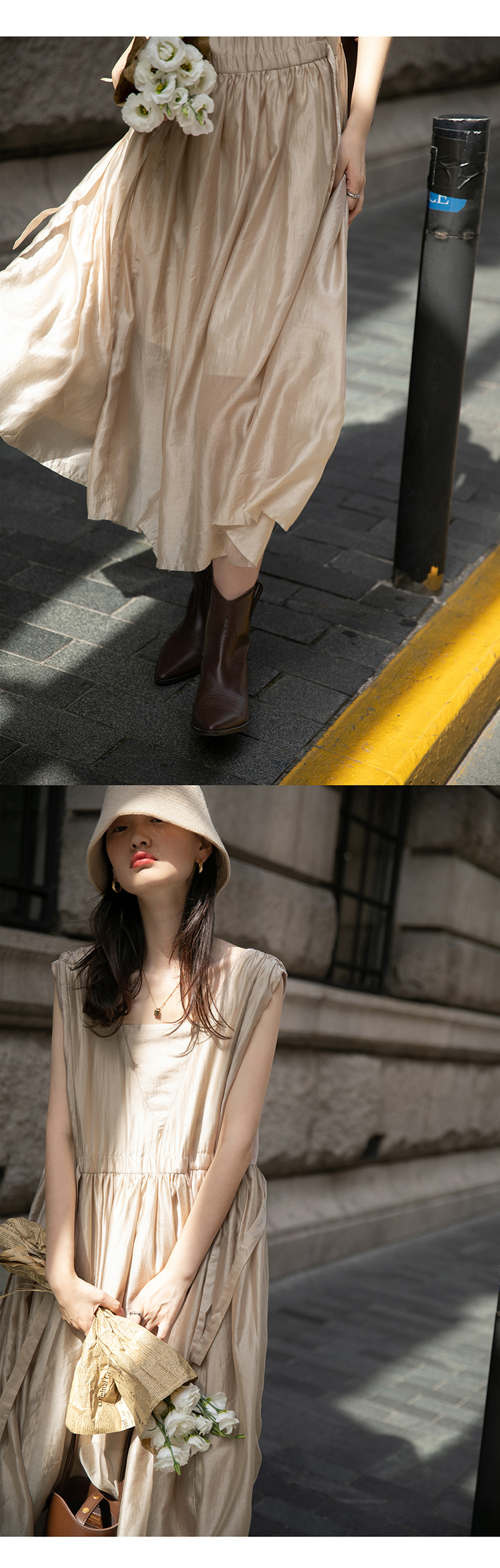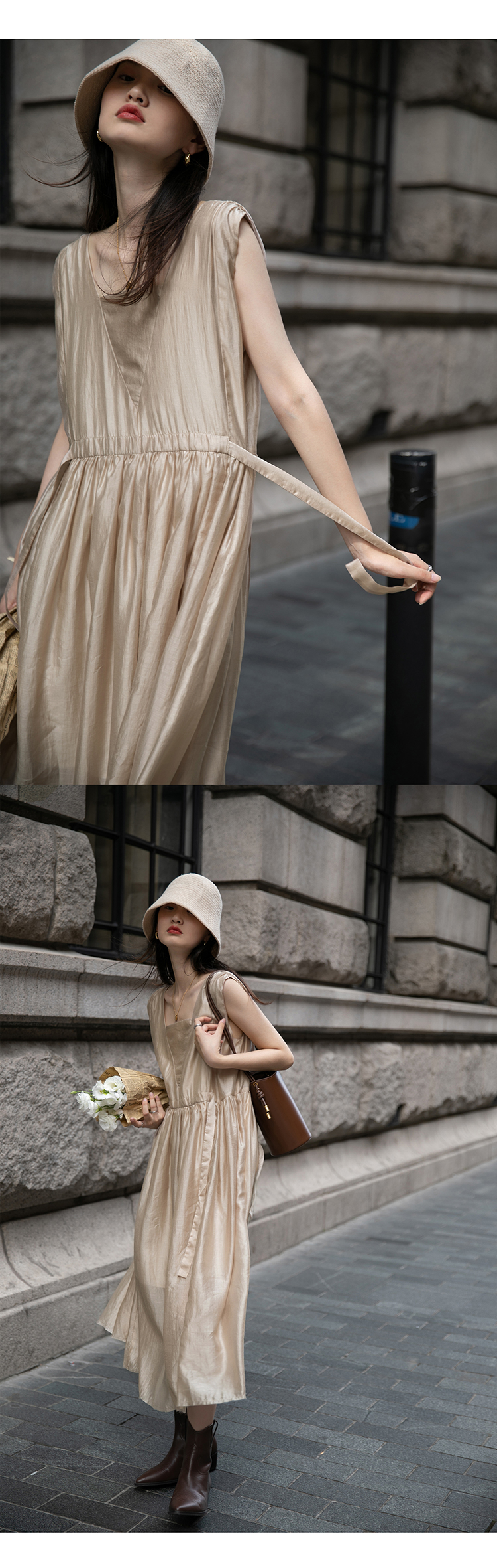 【止不住的溫柔】1313裸粉色可收腰背心裙女夏無袖84%天絲洋裝