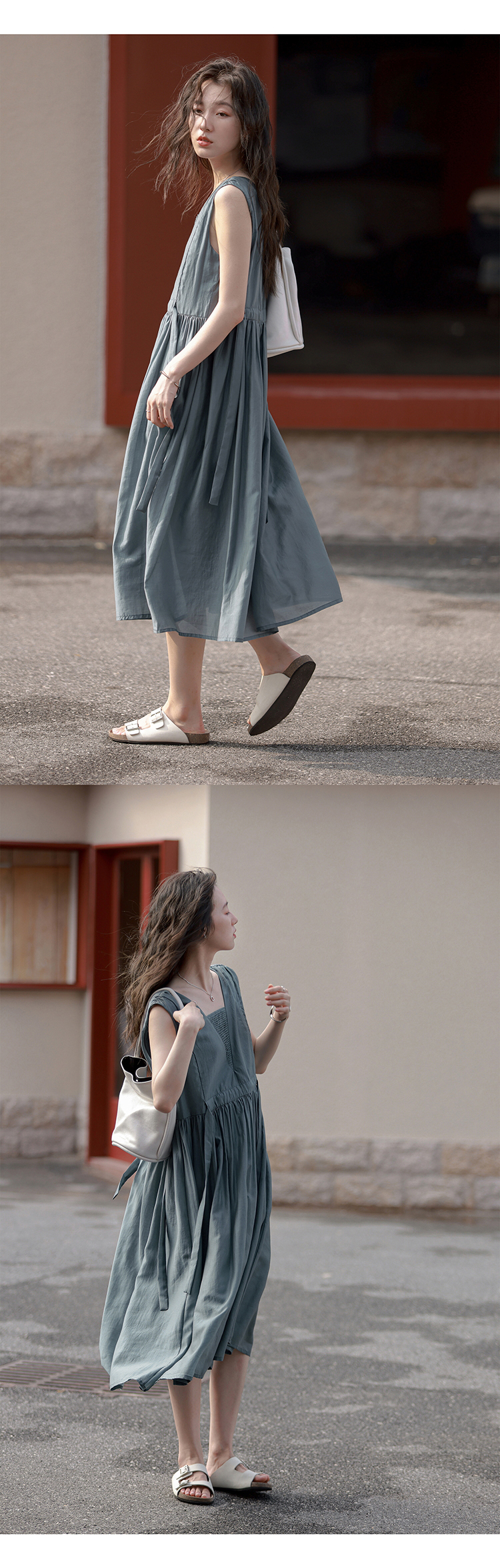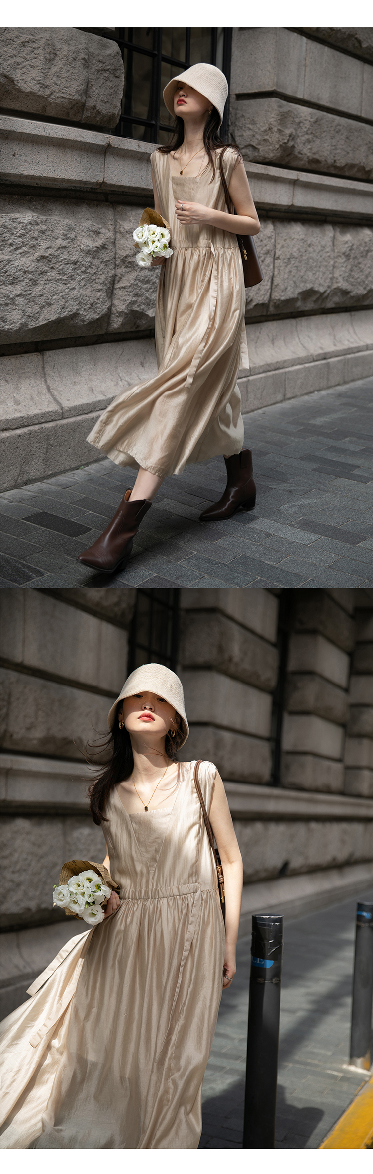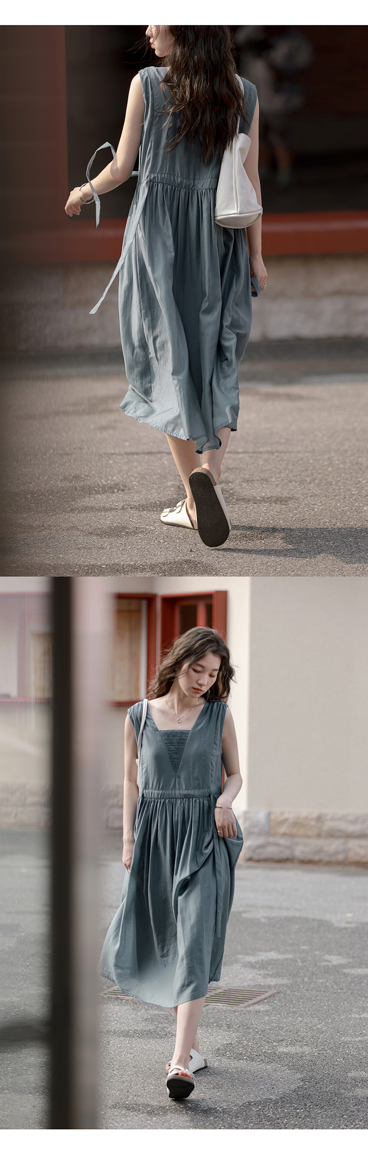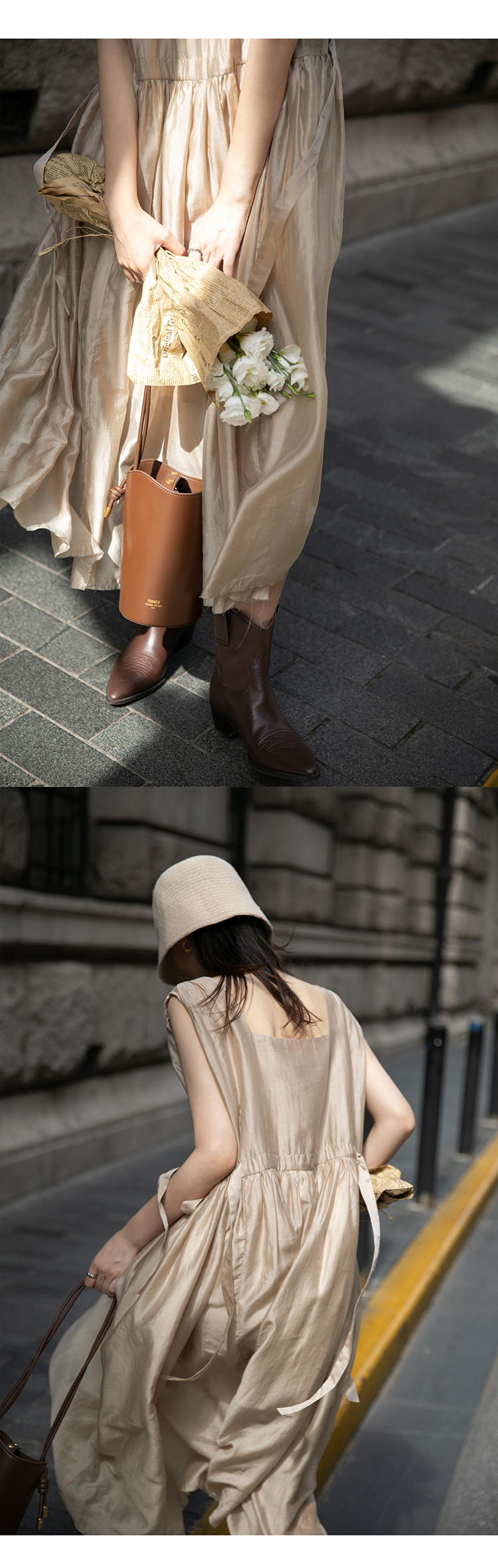 【止不住的溫柔】1313裸粉色可收腰背心裙女夏無袖84%天絲洋裝