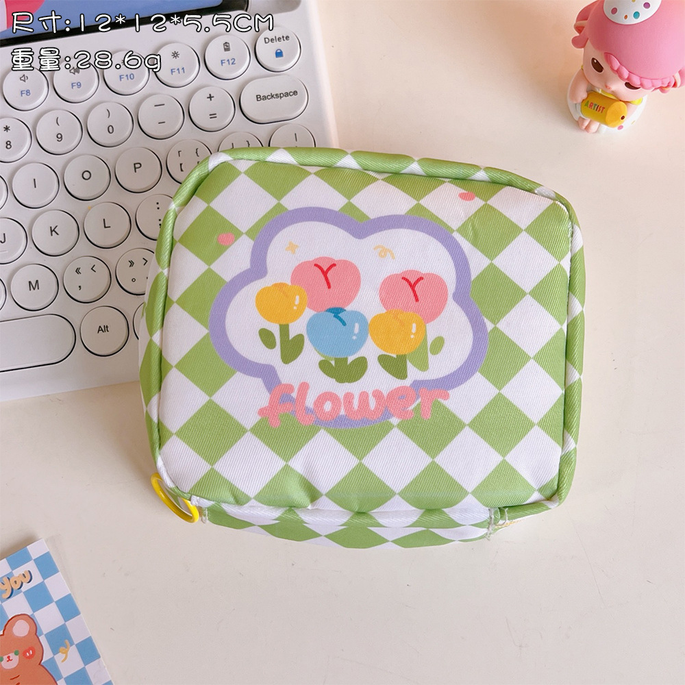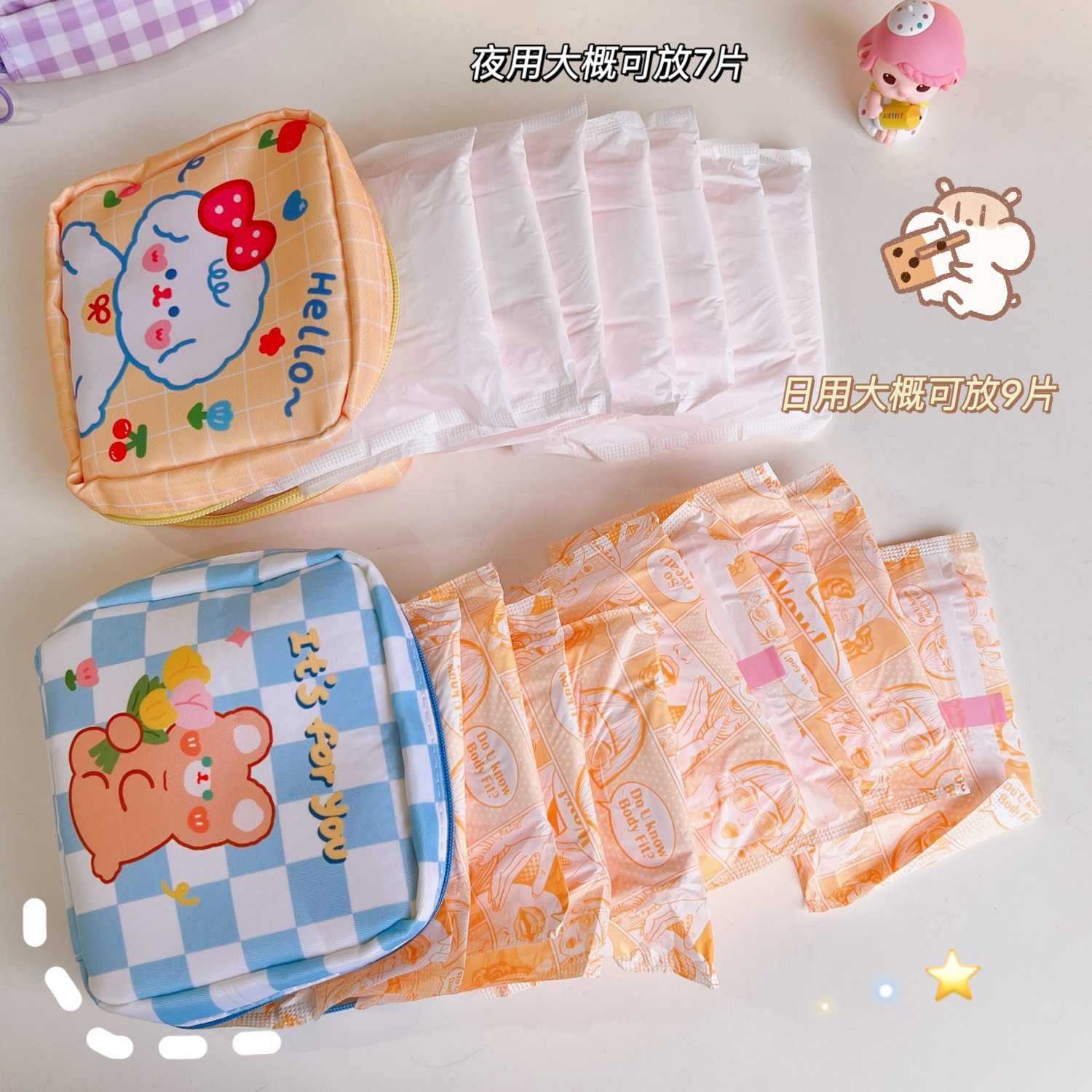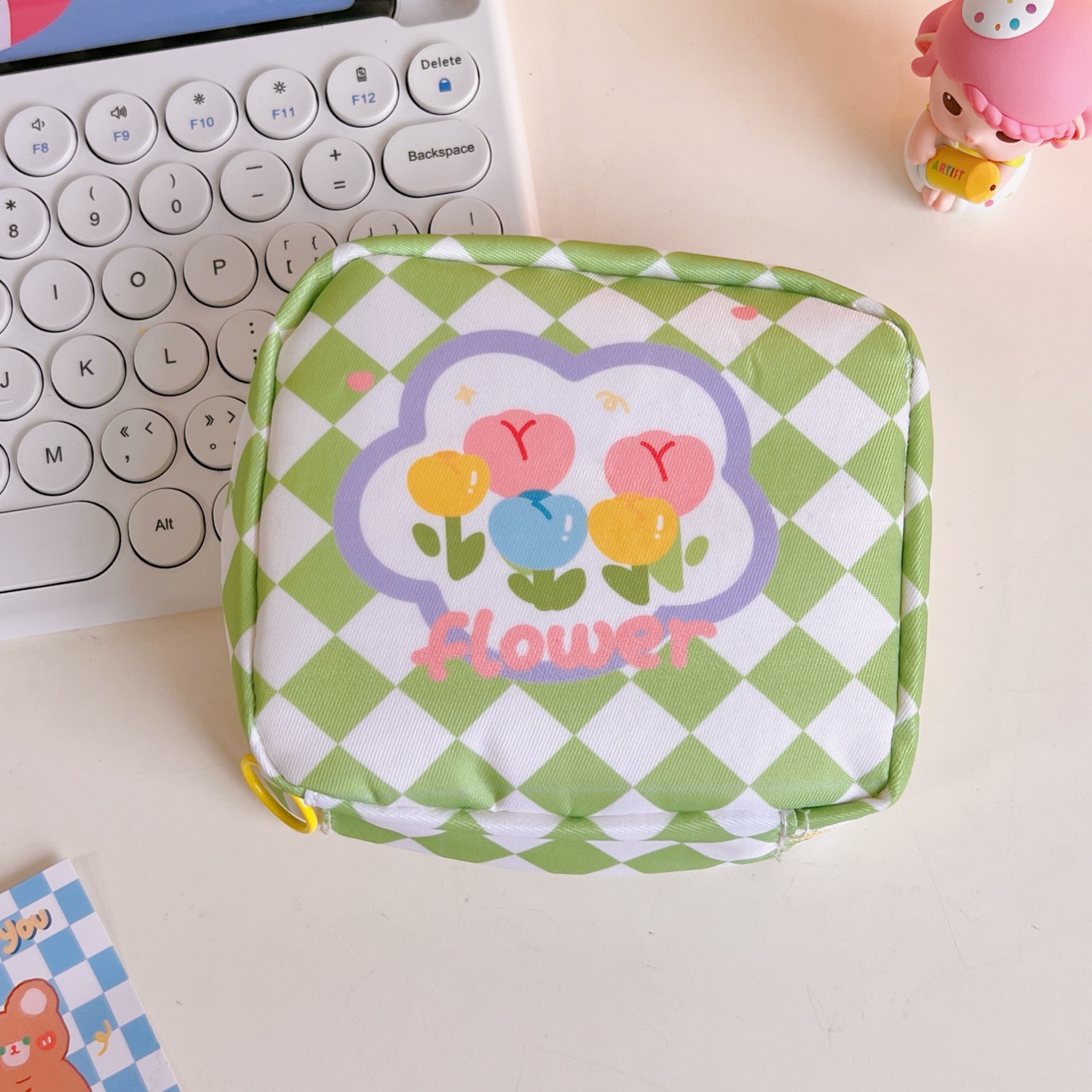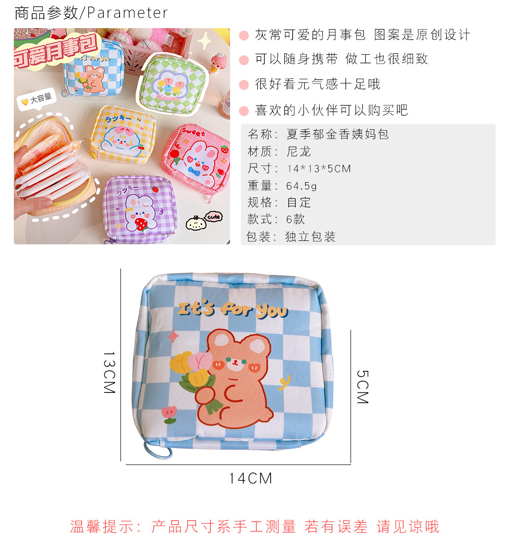 少女心大容量姨妈巾收纳包夏季郁金香棋盘格收纳袋月事包零钱包女