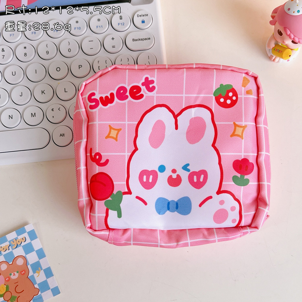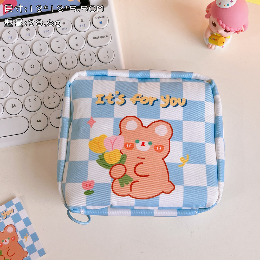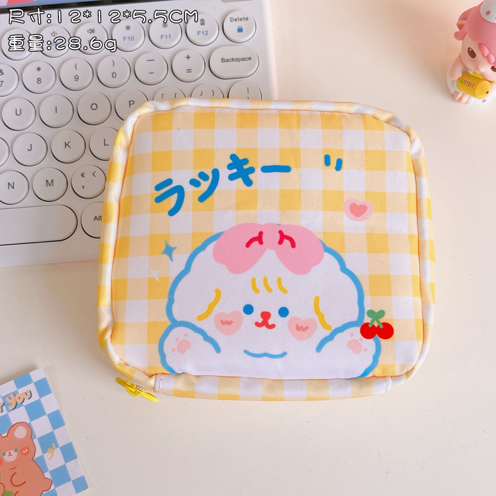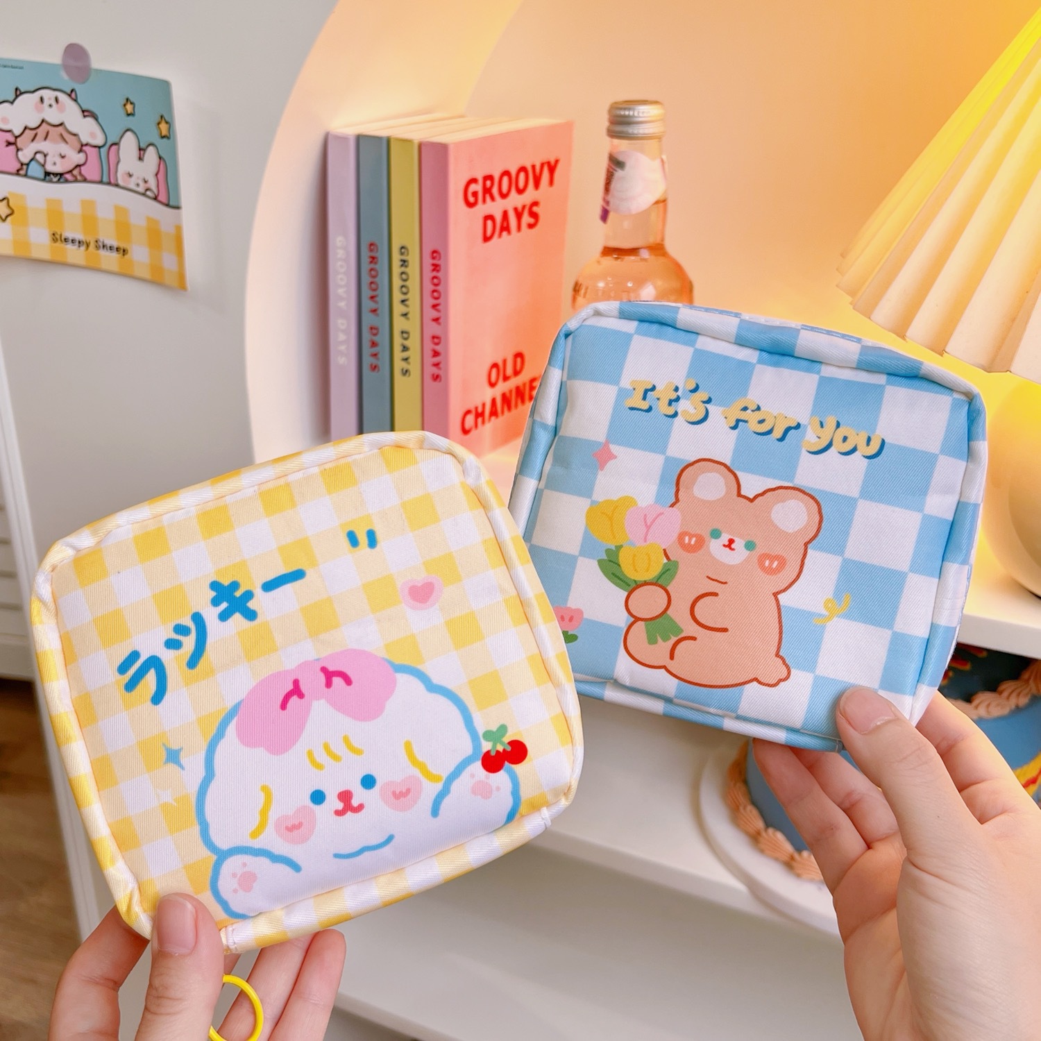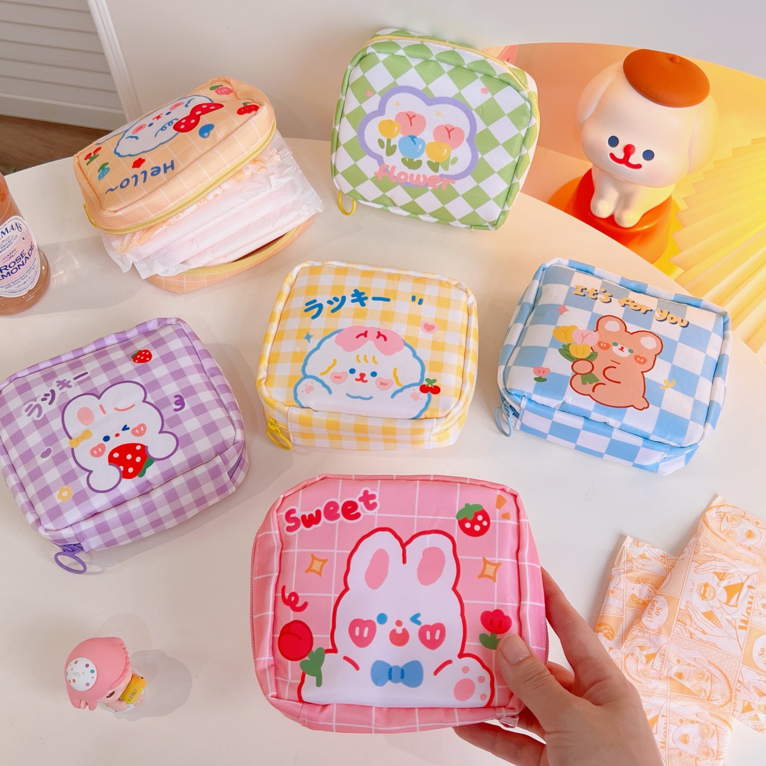 少女心大容量姨妈巾收纳包夏季郁金香棋盘格收纳袋月事包零钱包女