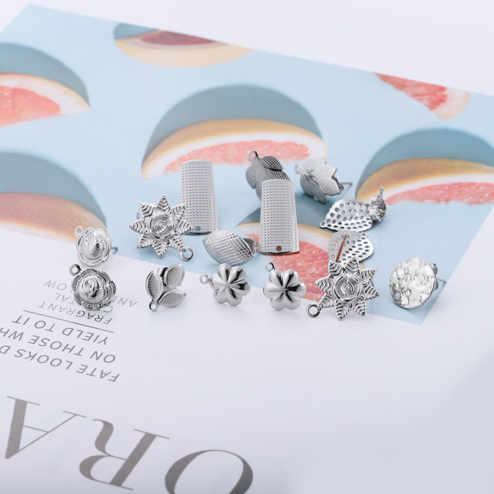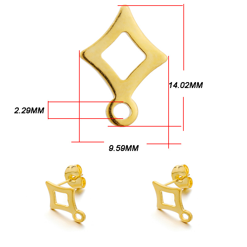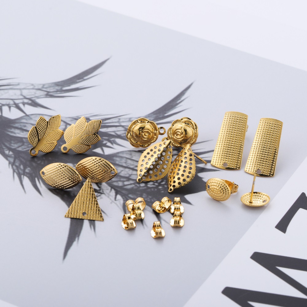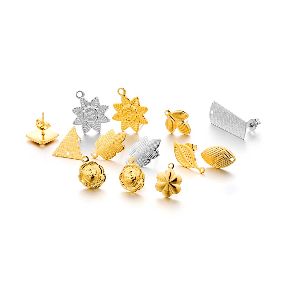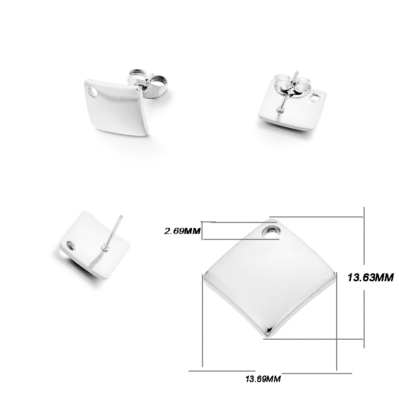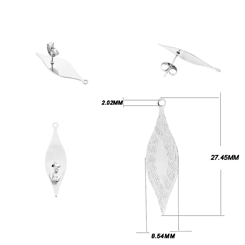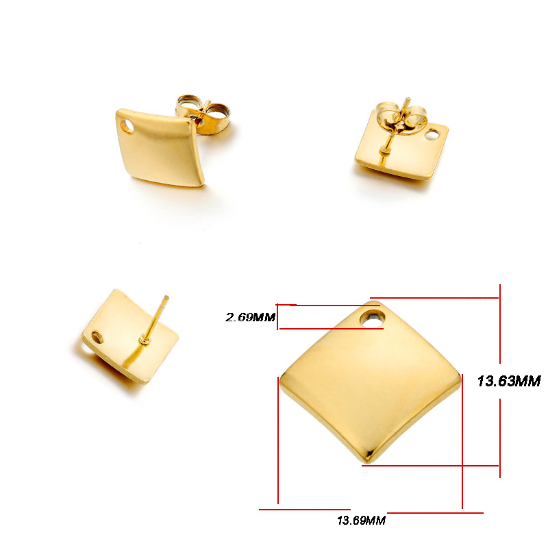 ins淑女风 带吊孔耳钉 304不锈钢 真空挂镀 单吊材料 DIY耳饰配件