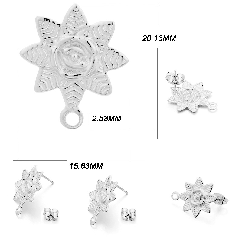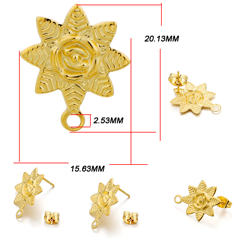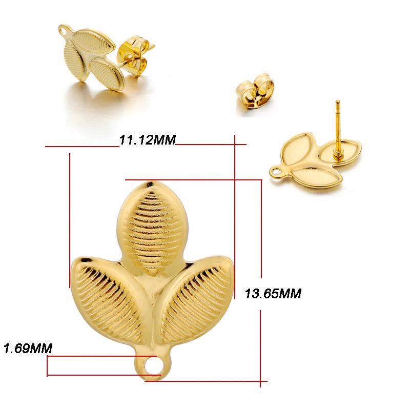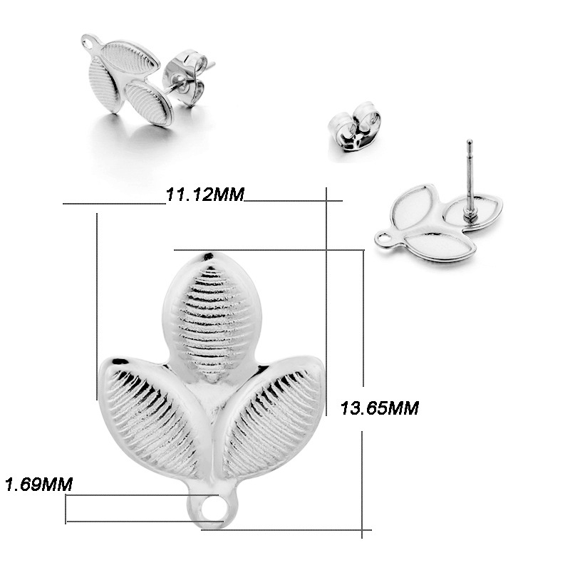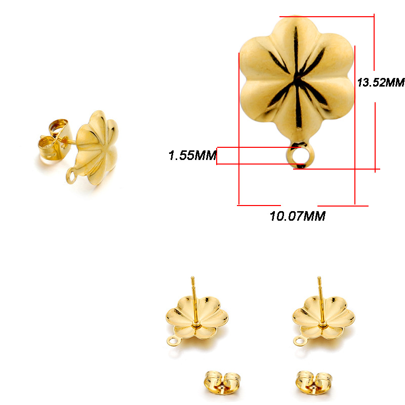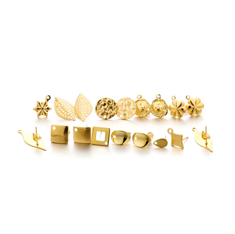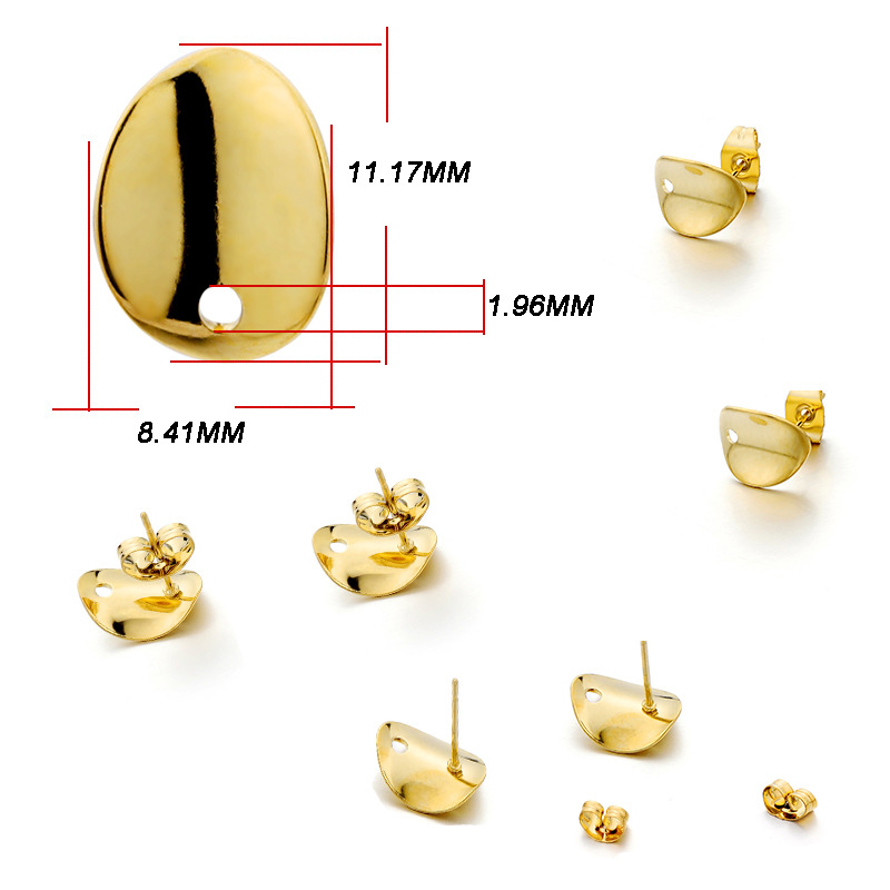 ins淑女风 带吊孔耳钉 304不锈钢 真空挂镀 单吊材料 DIY耳饰配件