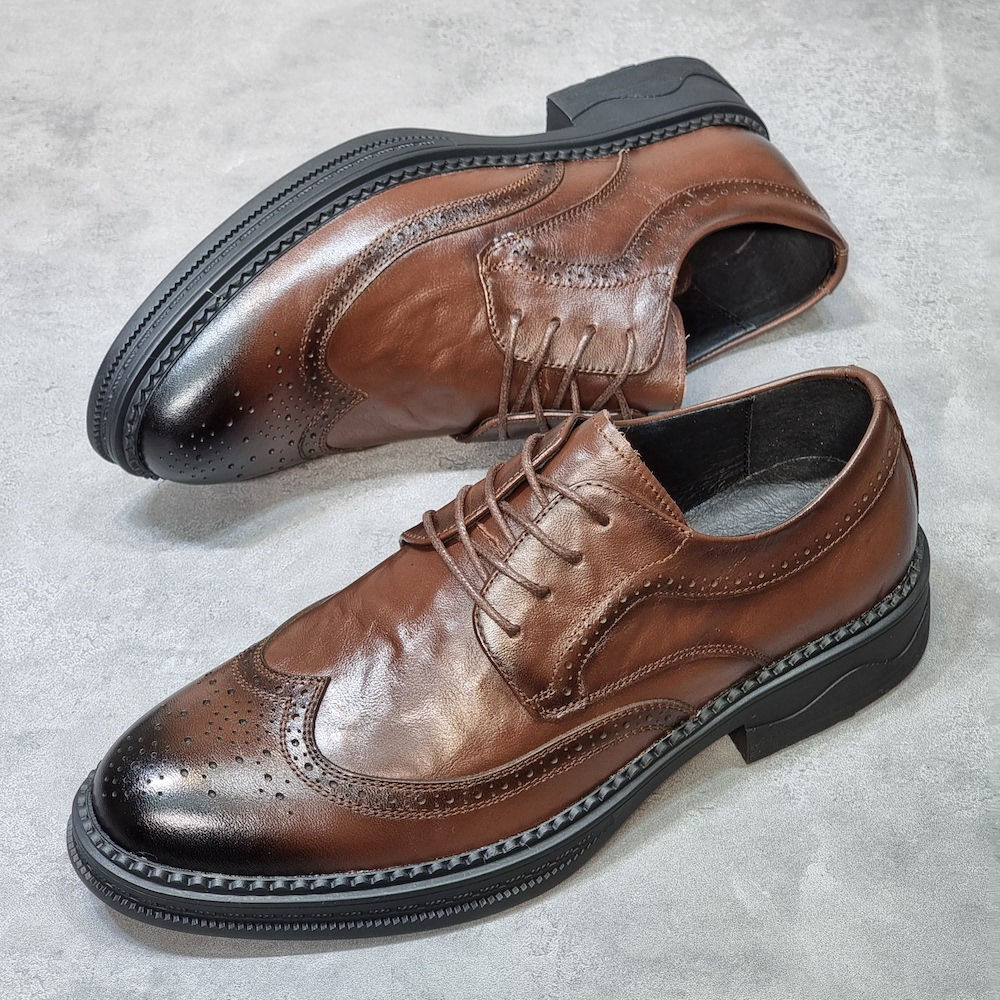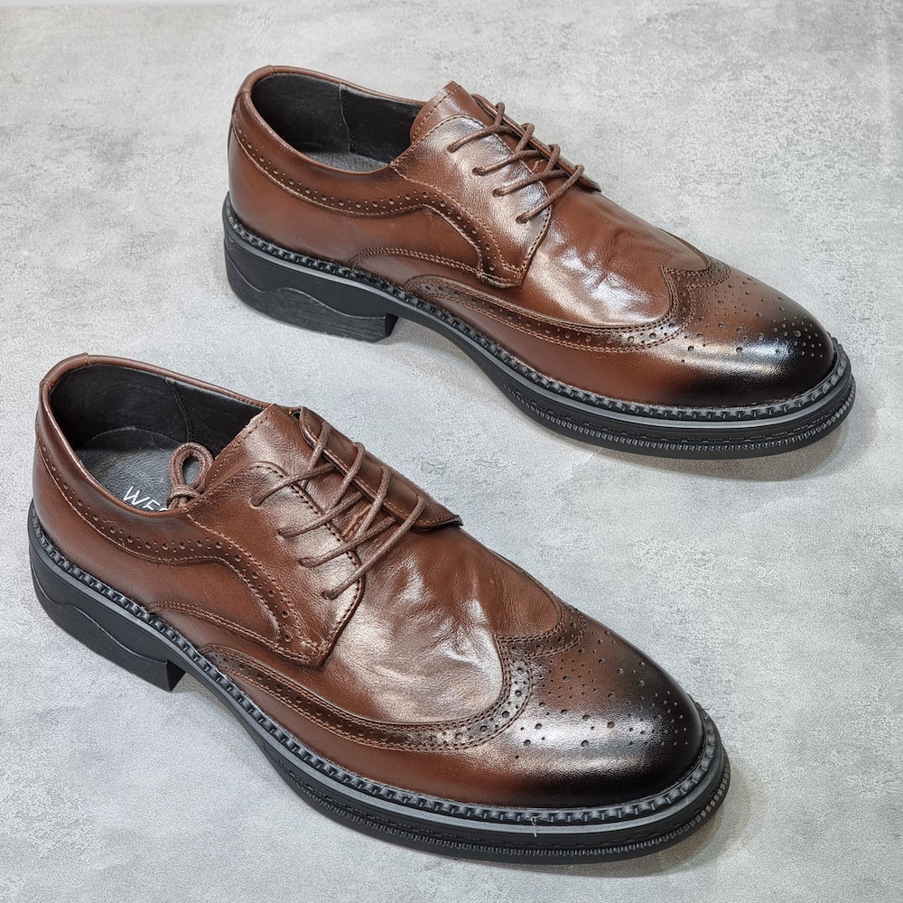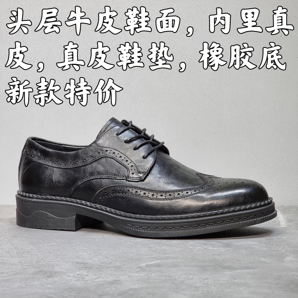 外貿出口尾單真皮男鞋清倉特價頭層牛皮透氣潮流佈洛克正裝皮鞋男
