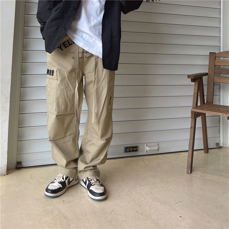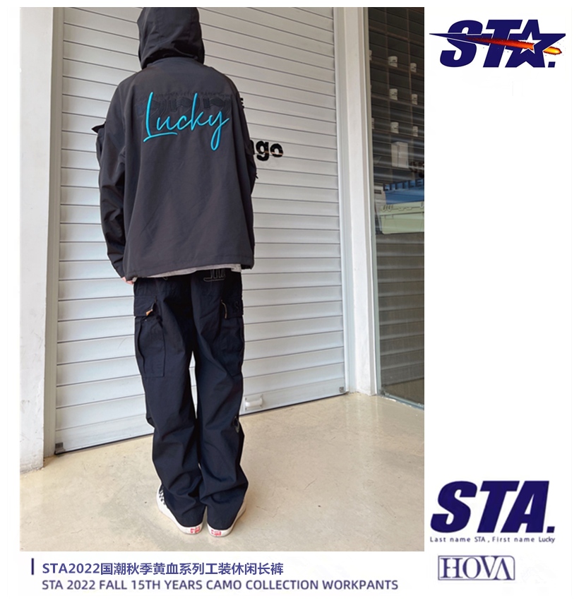 STA2022秋季黃血系列國潮褲子休閒直筒鬆緊腰圍工裝多口袋長褲