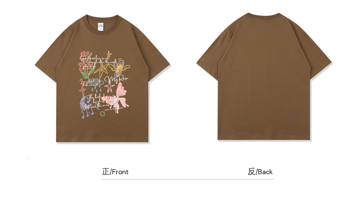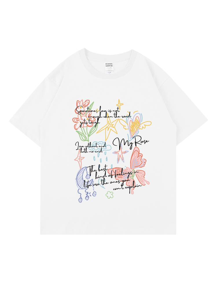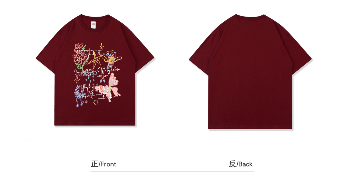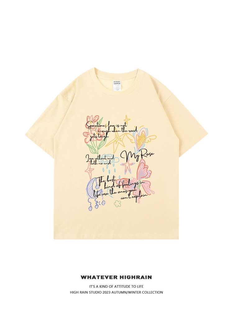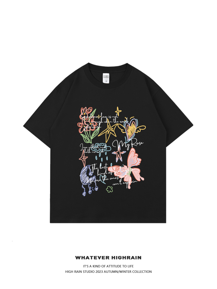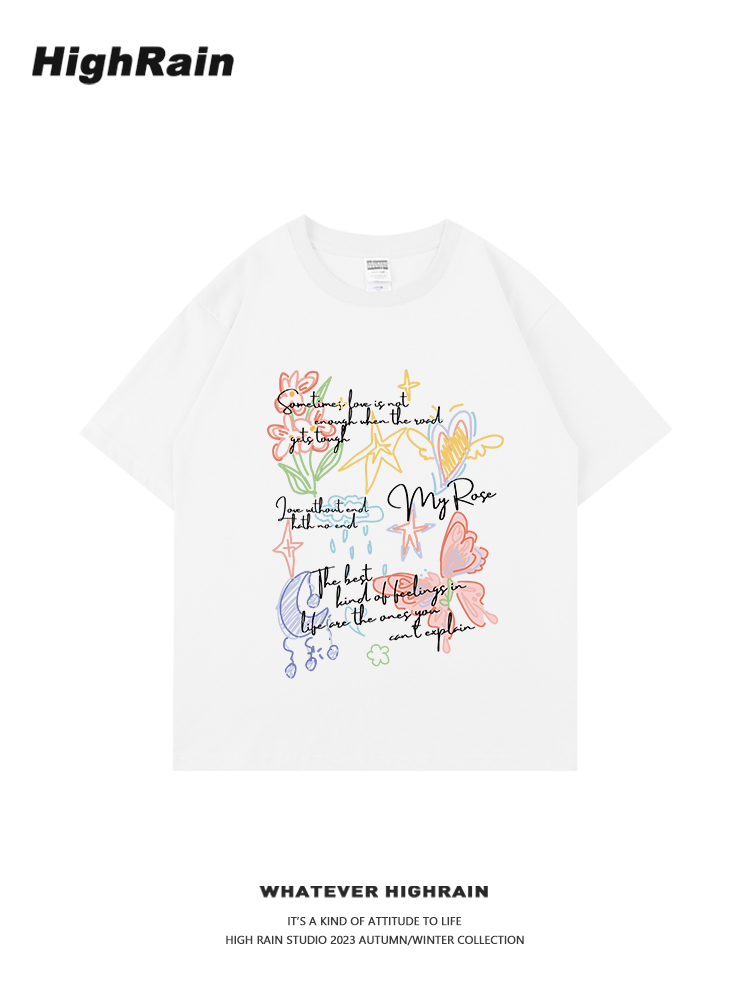 high rain 新款塗鴉蝴蝶純棉短袖男女白色T恤潮牌小眾情侶上衣夏