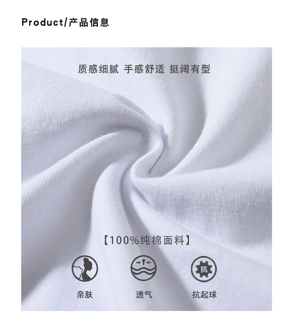 主要顏色 240g純棉-白色,240g純棉-黑色,240g純棉-暗夜灰,240g純棉-藏青,240g純棉-卡其,240g純棉-淺粉,240g純棉-霧霾藍,240g純棉-克萊因藍,240g純棉-淺棕,240g純棉-淺綠,240g純棉-玫紅,240g純棉-淺黃,240g純棉-酒紅,240g純棉-奶粉