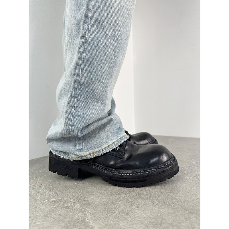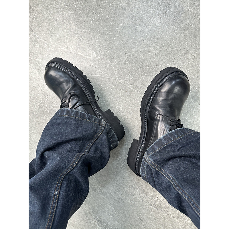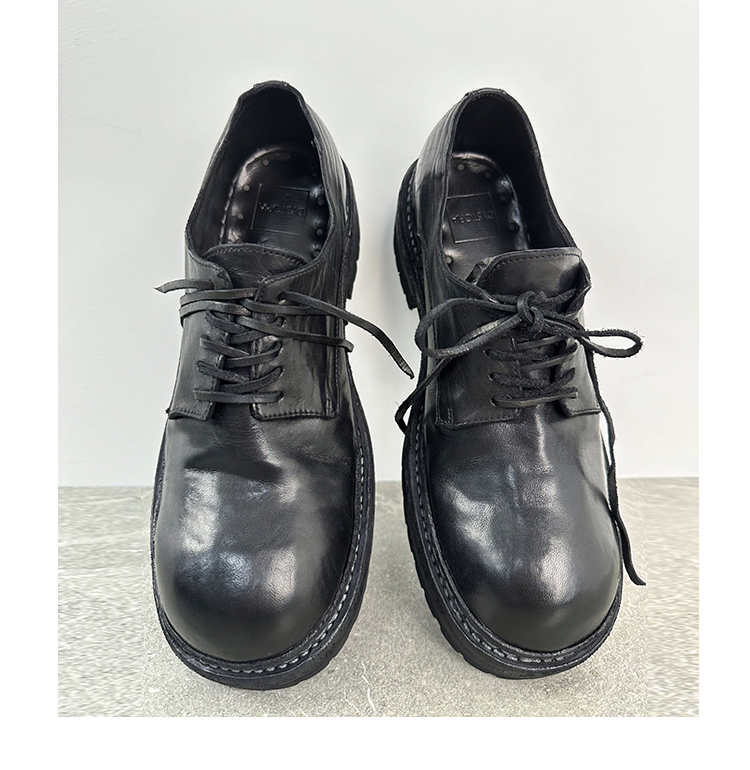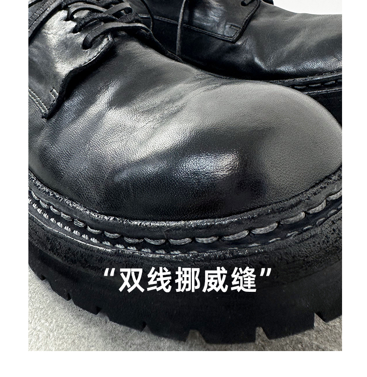 DYSTOPIA意大利進口馬皮 GR02V真固特異雙挪威縫大頭德比圓頭皮鞋