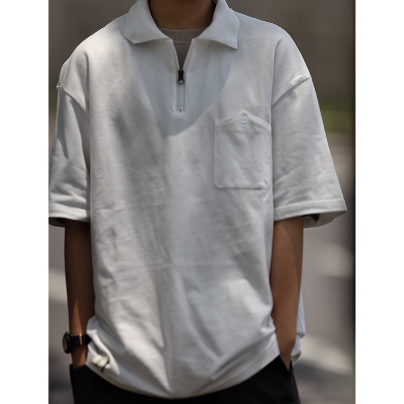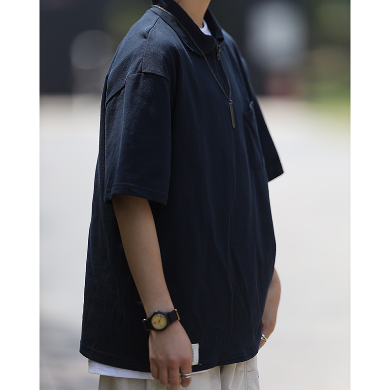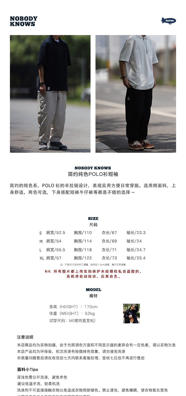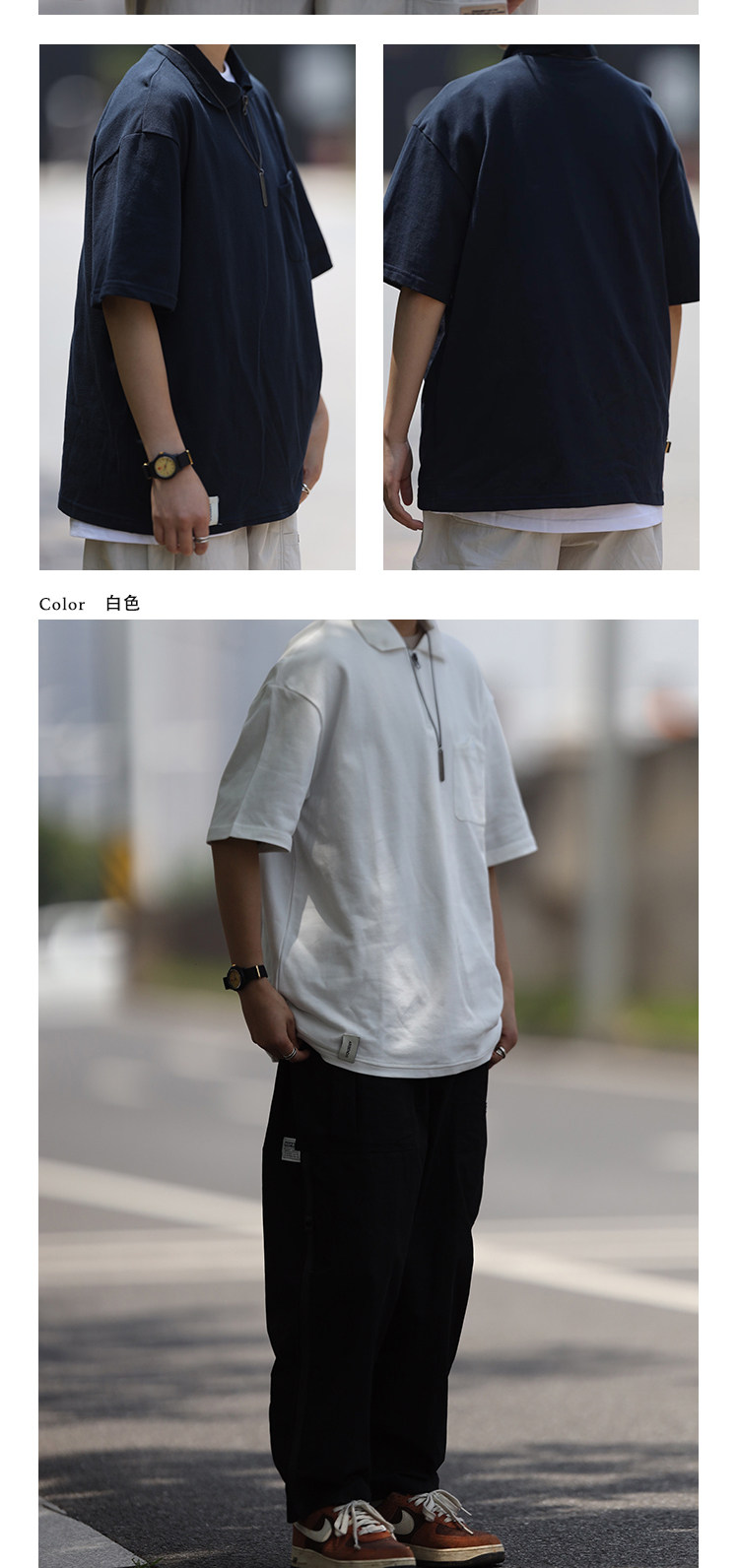 Nobodyknows 日系夏季純色POLO衫半拉鍊cityboy復古寬鬆T恤廓形潮