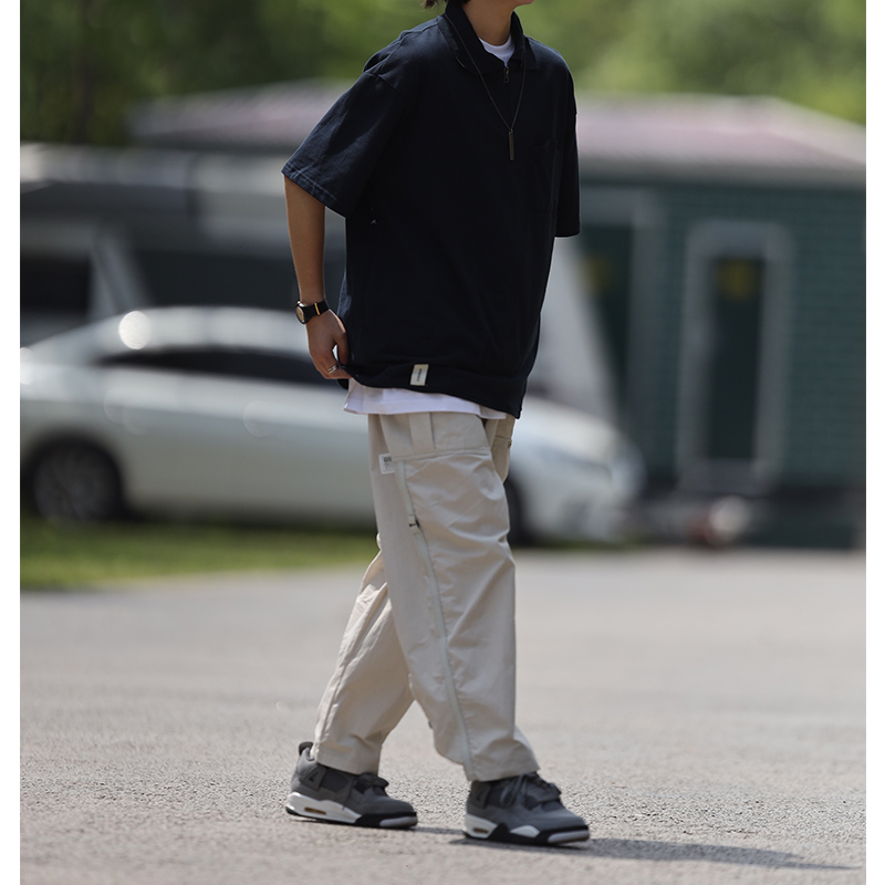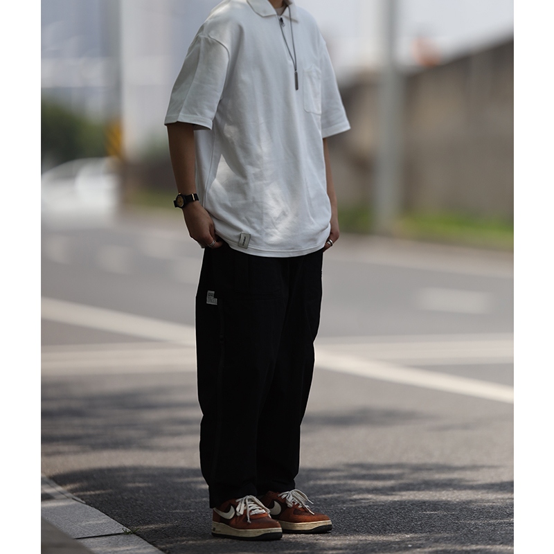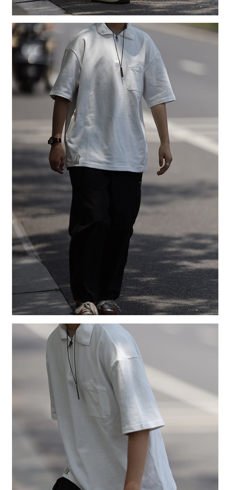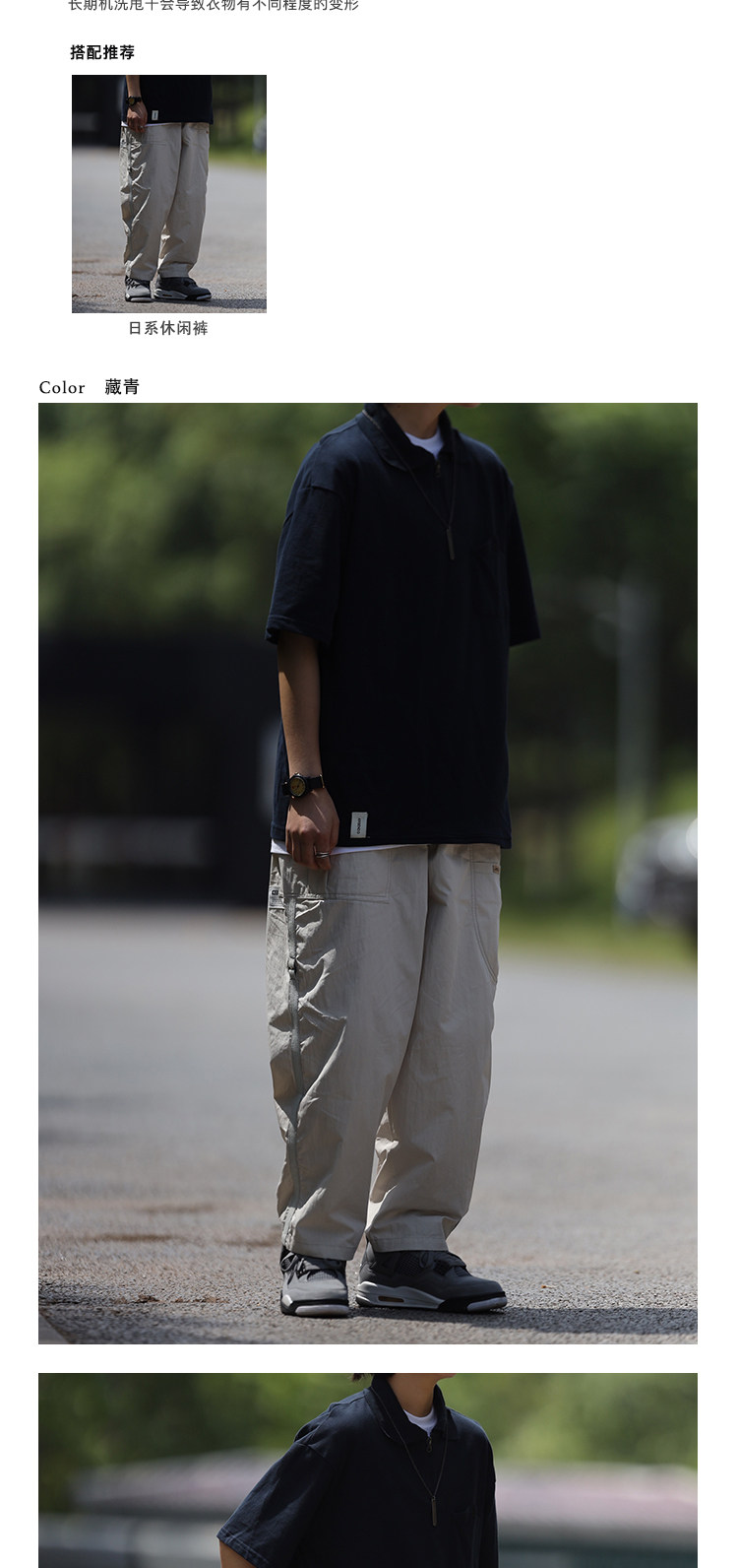 Nobodyknows 日系夏季純色POLO衫半拉鍊cityboy復古寬鬆T恤廓形潮