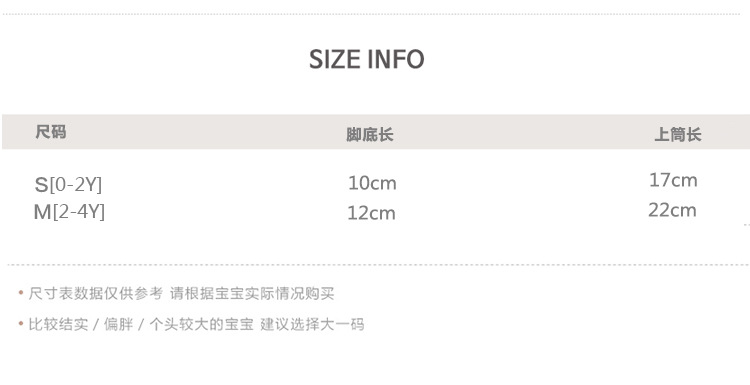 童袜尺码 S 0-2岁,M 2-4岁
