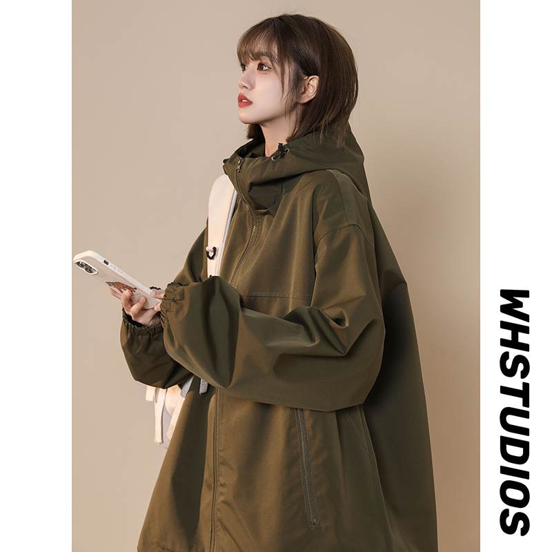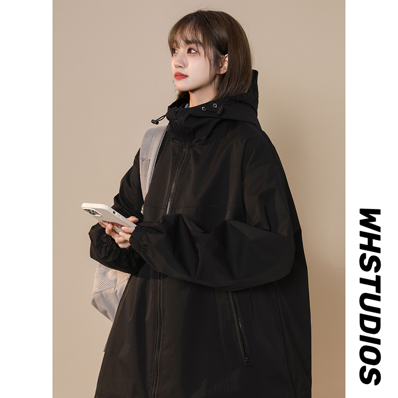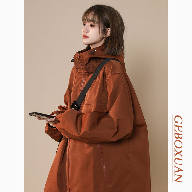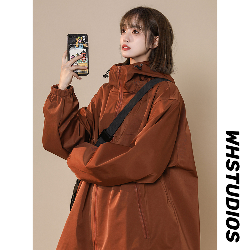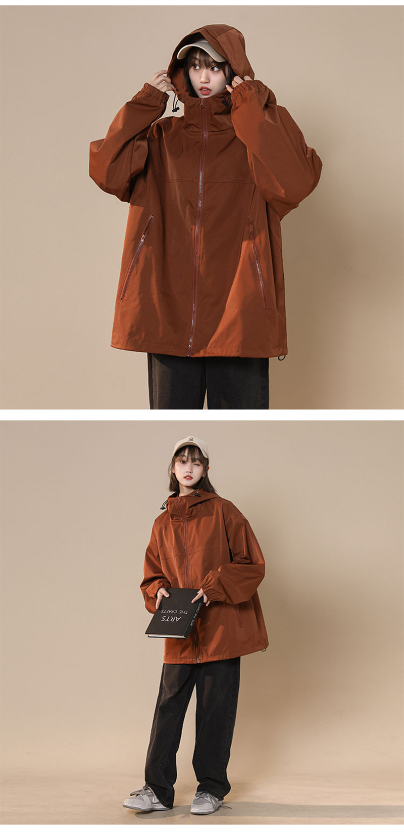 咖色衝鋒衣外套女解構風高級感炸街上衣春秋戶外防風防水工裝夾克