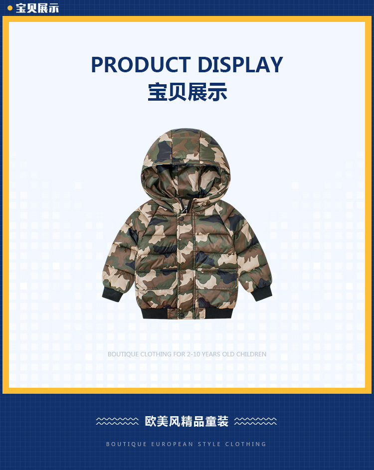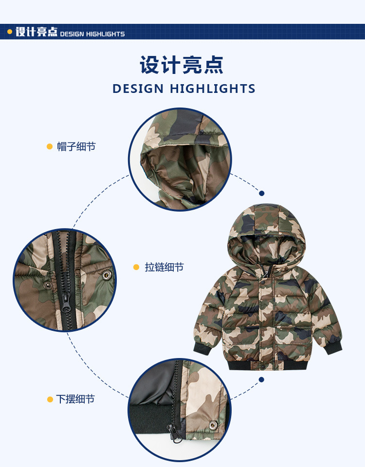 27kids品牌童装秋冬季儿童棉衣中小童迷彩外套男孩子衣服一件代发