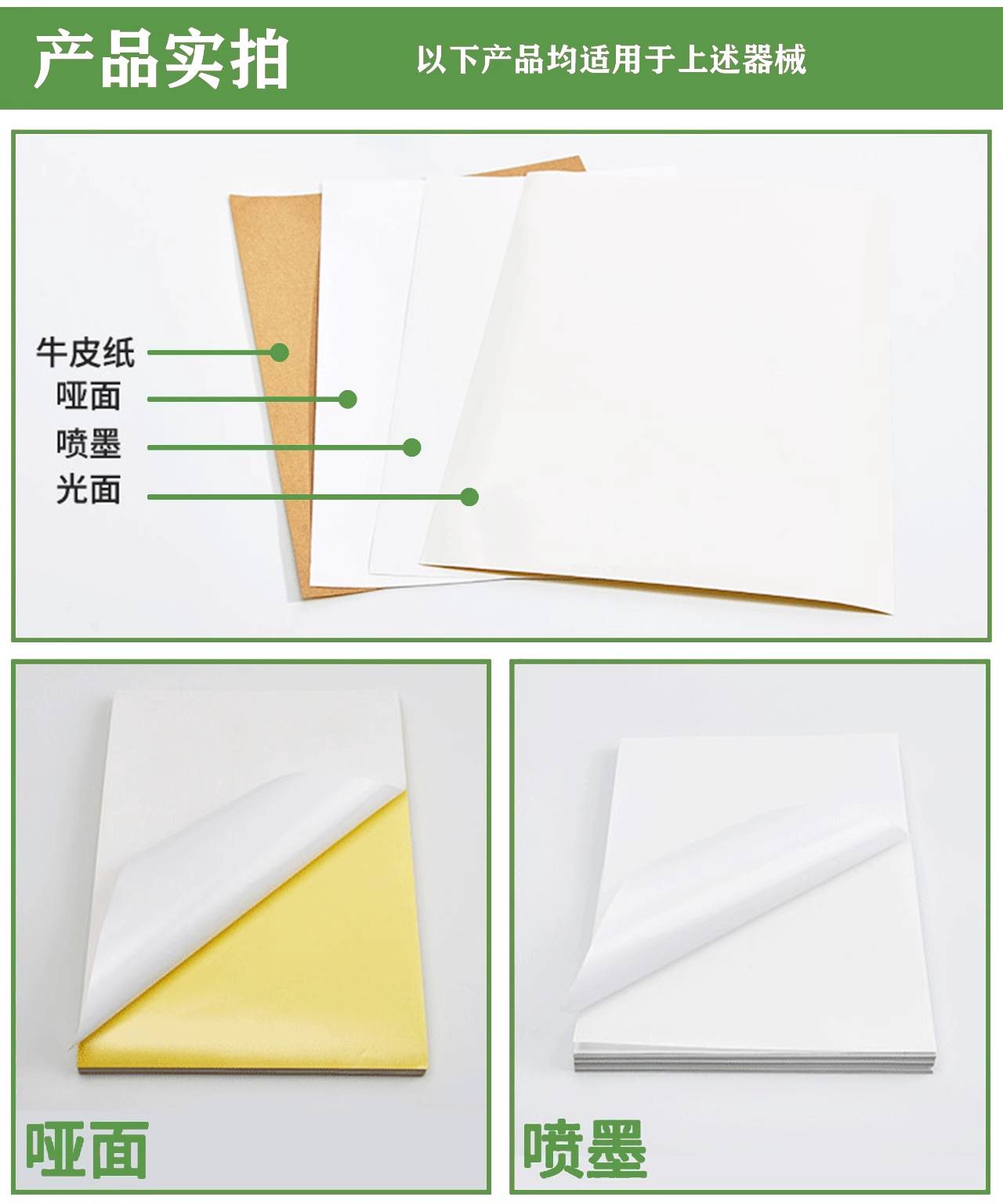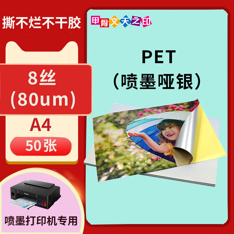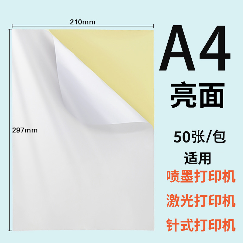 颜色 A4-80g亮面不干胶(适用所有打印机)-50张,A4-哑面书写纸不干胶(适用所有打印机)-50张,加厚-A4亮面PP喷墨不干胶-50张,加厚-A4哑面PP喷墨不干胶-50张,常规款-A4哑面PP喷墨不干胶-50张,常规款-A4透明PET喷墨不干胶-50张,常规款-A4哑银PET喷墨不干胶-50张,薄款-A4亮面PET激光不干胶-50张,薄款-A4哑面PET激光不干胶-50张,薄款-A4透明PET激光不干胶-50张,A5-80g亮面玻璃卡(适用所有打印机)-50张,A3-80g亮面玻璃卡(适用所有打印机)-50张,A4-80g浅色牛皮纸不干胶-50张,A4-80g深色牛皮纸不干胶-50张