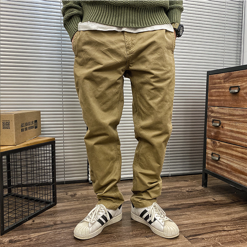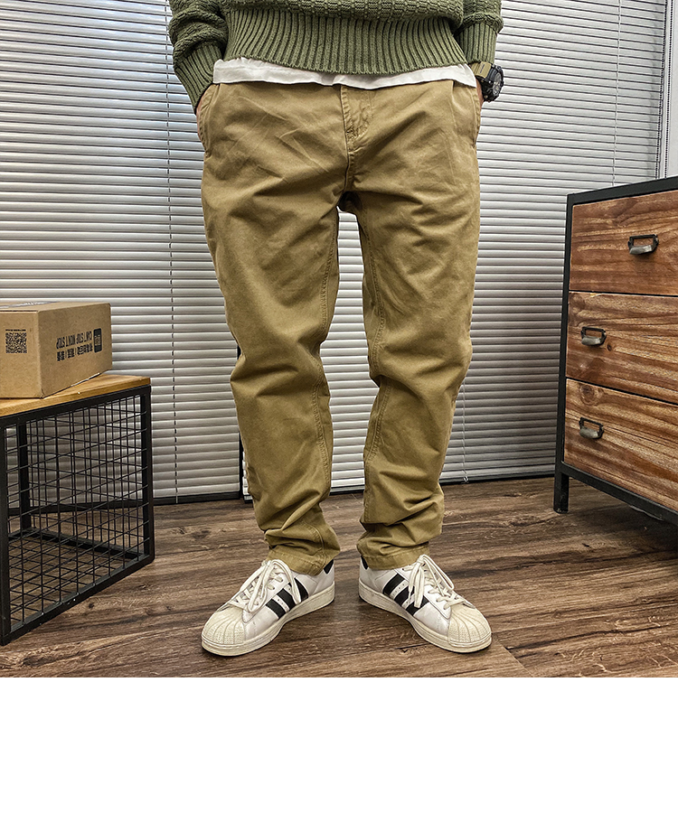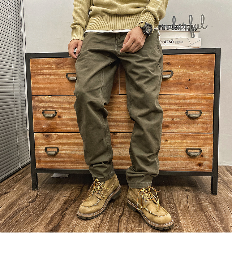 石頭家春秋款褲子阿美咔嘰耐磨美式復古機車直筒工裝寬鬆休閒長褲