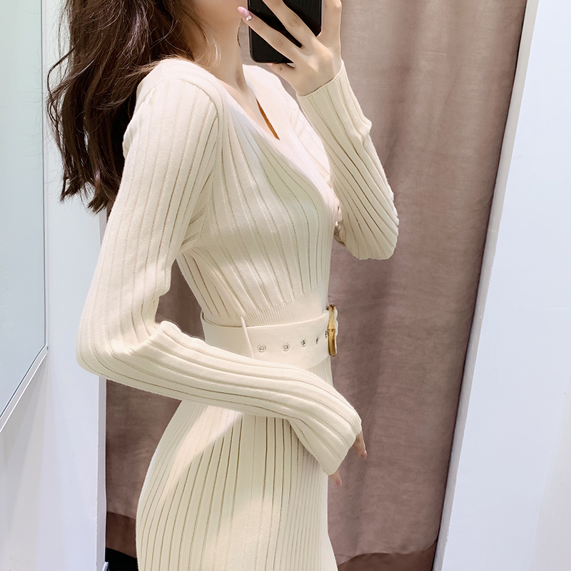 秋冬針織洋裝配大衣內搭打底裙修身顯瘦中長版毛衣裙高級感女裝