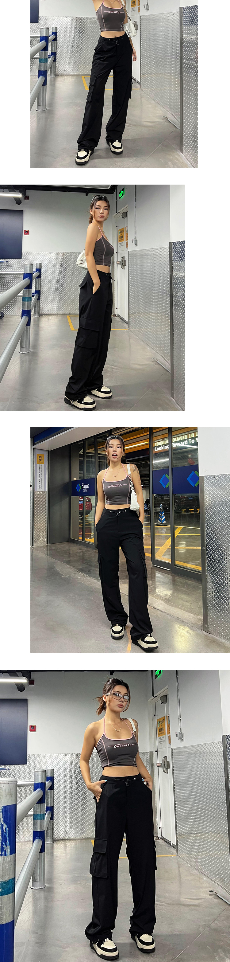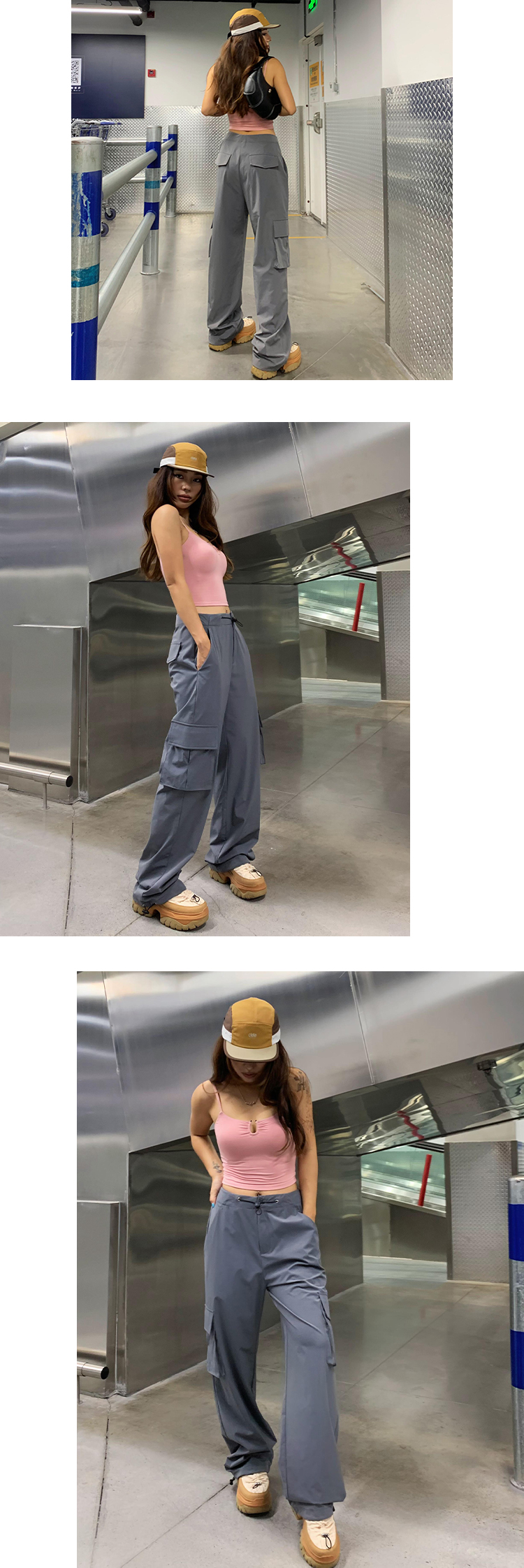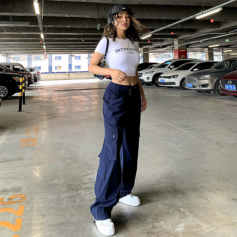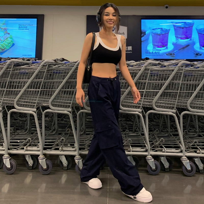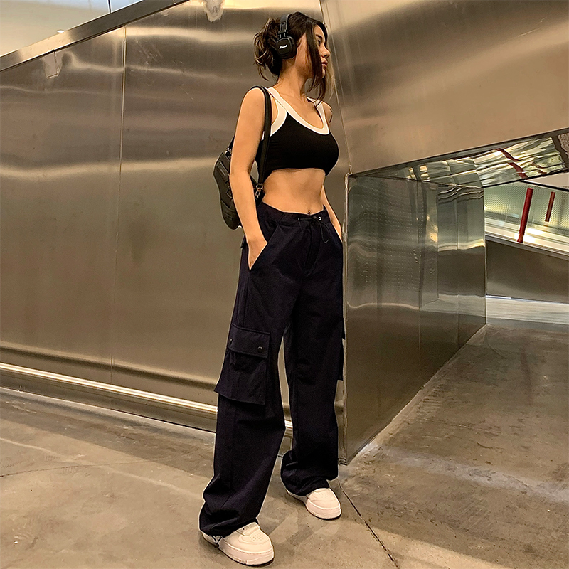 yuuue直筒速乾工裝褲女夏季寬鬆薄款闊腿褲美式復古辣妹ins休閒褲