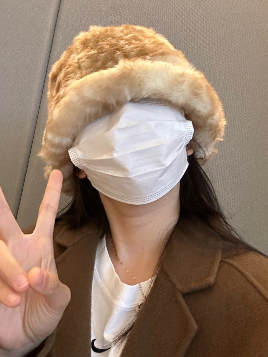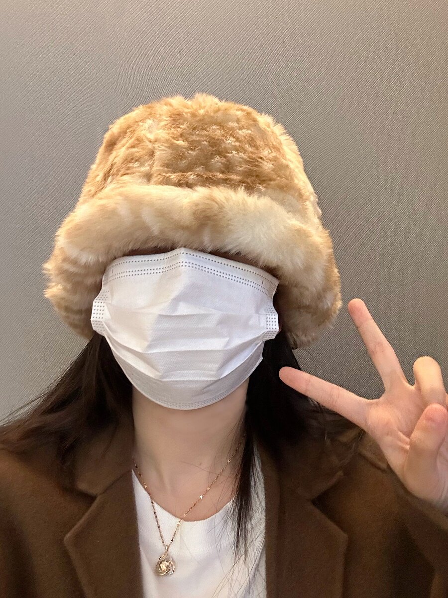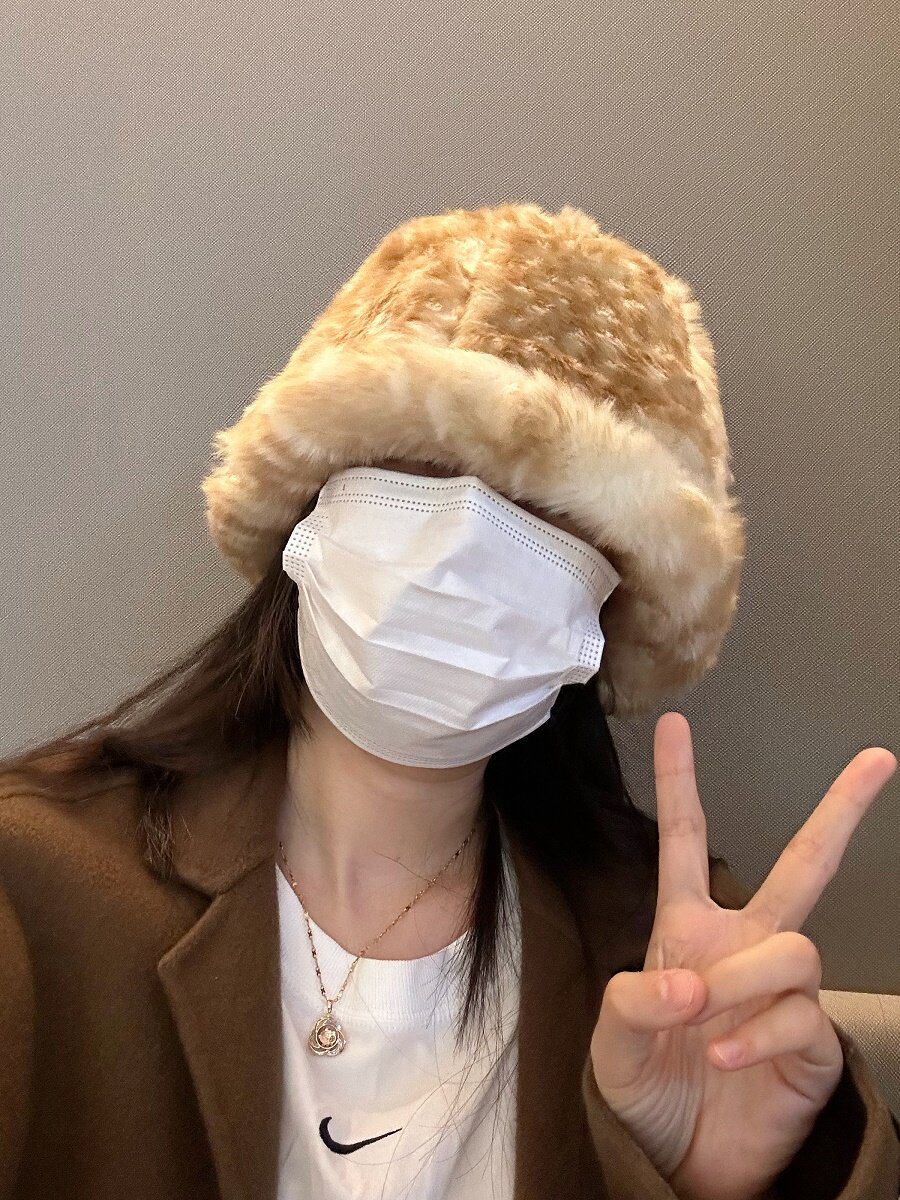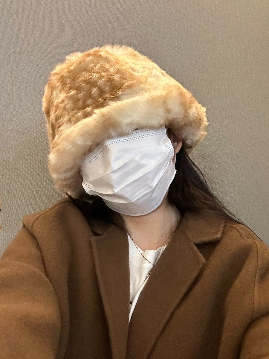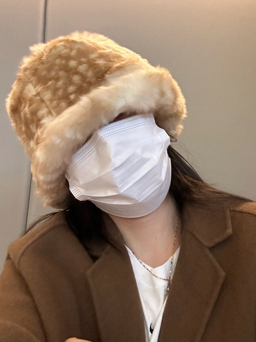 日系復古斑點毛絨漁夫帽女仿皮草加厚冬季顯臉小保暖護耳水桶盆帽